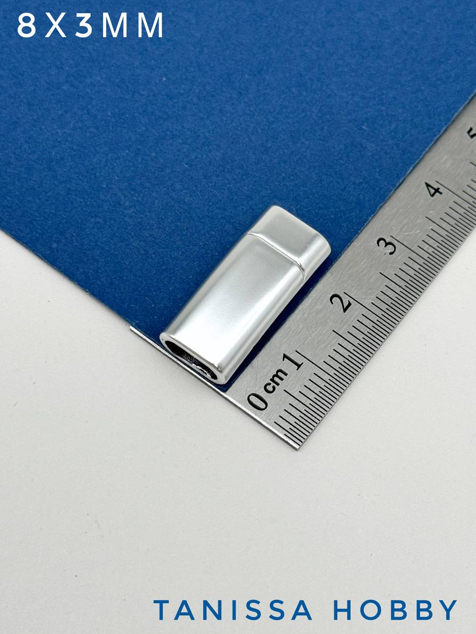 Замок магнитный под шнур 8х3мм, матовый родий, Ш103