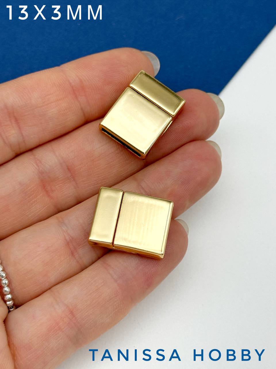Замок магнитный под шнур 13х3мм, глянцевая позолота, Ш120