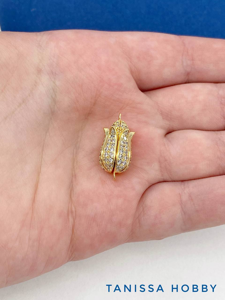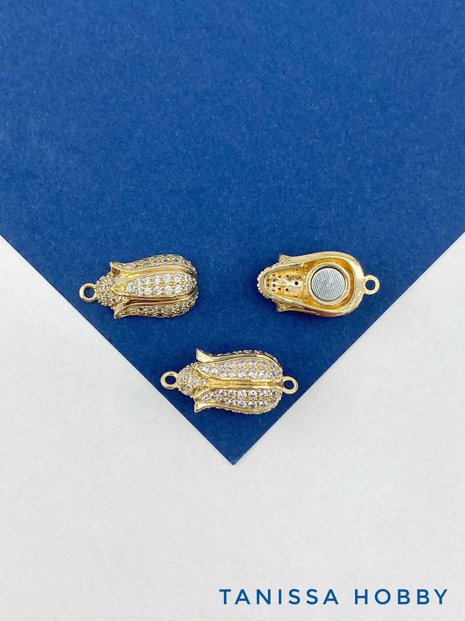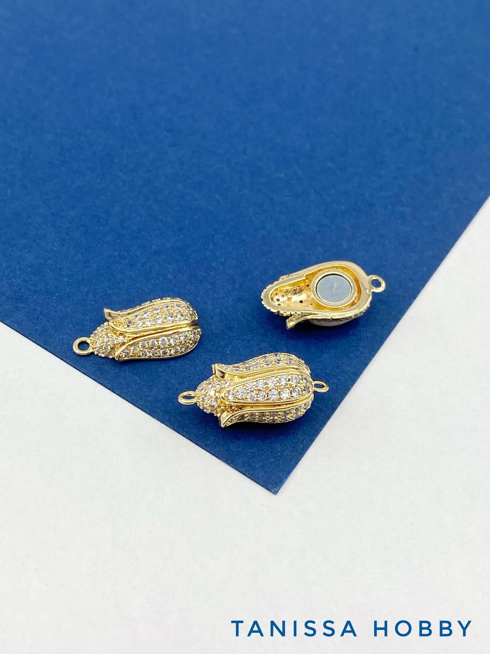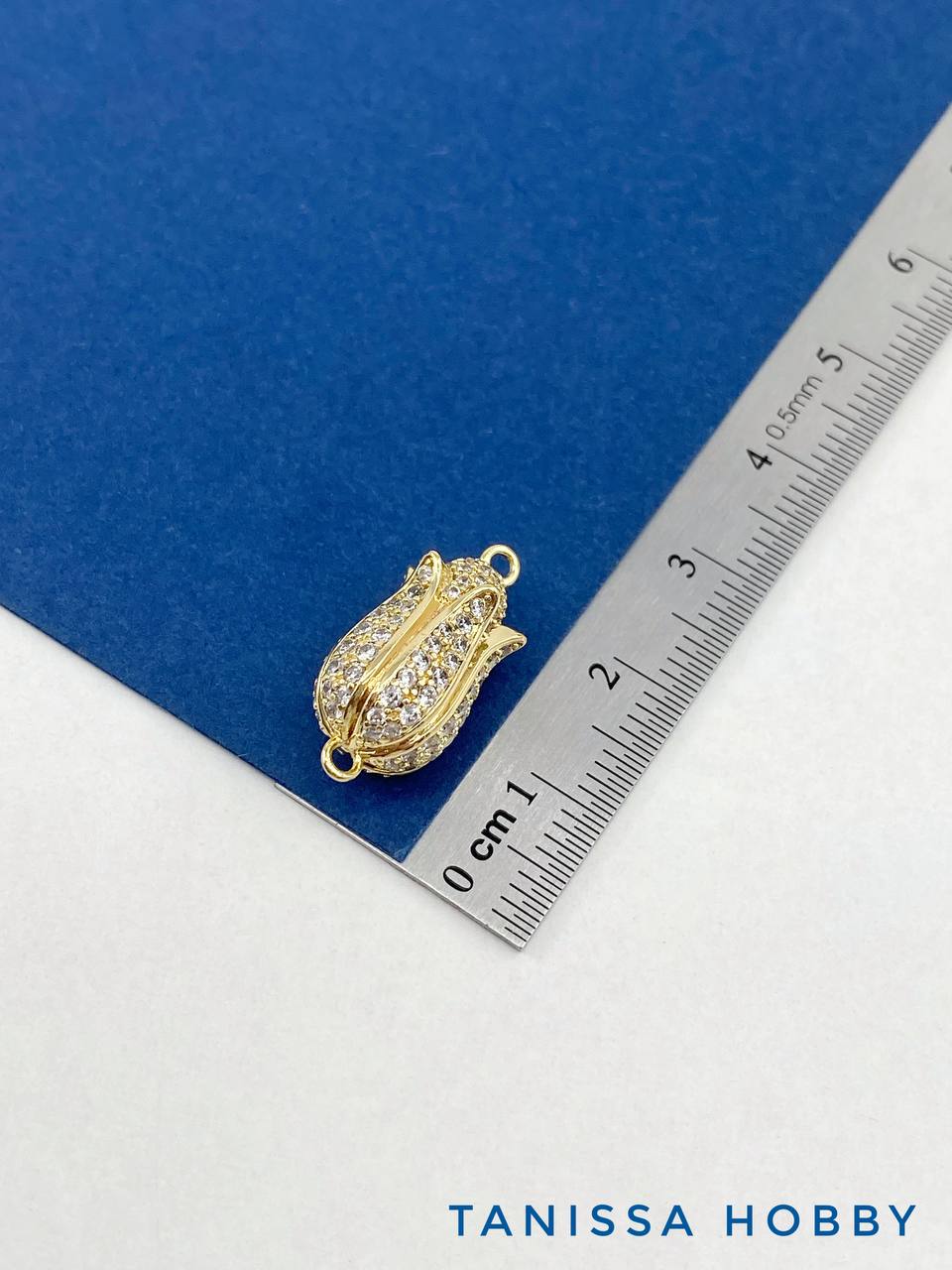 Замок магнитный цветок бутон с фианитами, 16х9мм, позолота, КР009