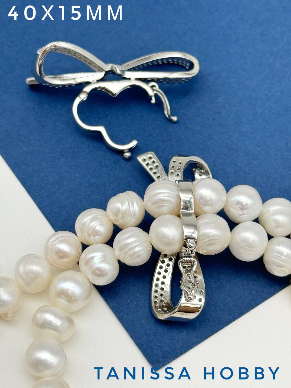 Замок коннектор Бантик на 2 нити многорядный, родий, К114