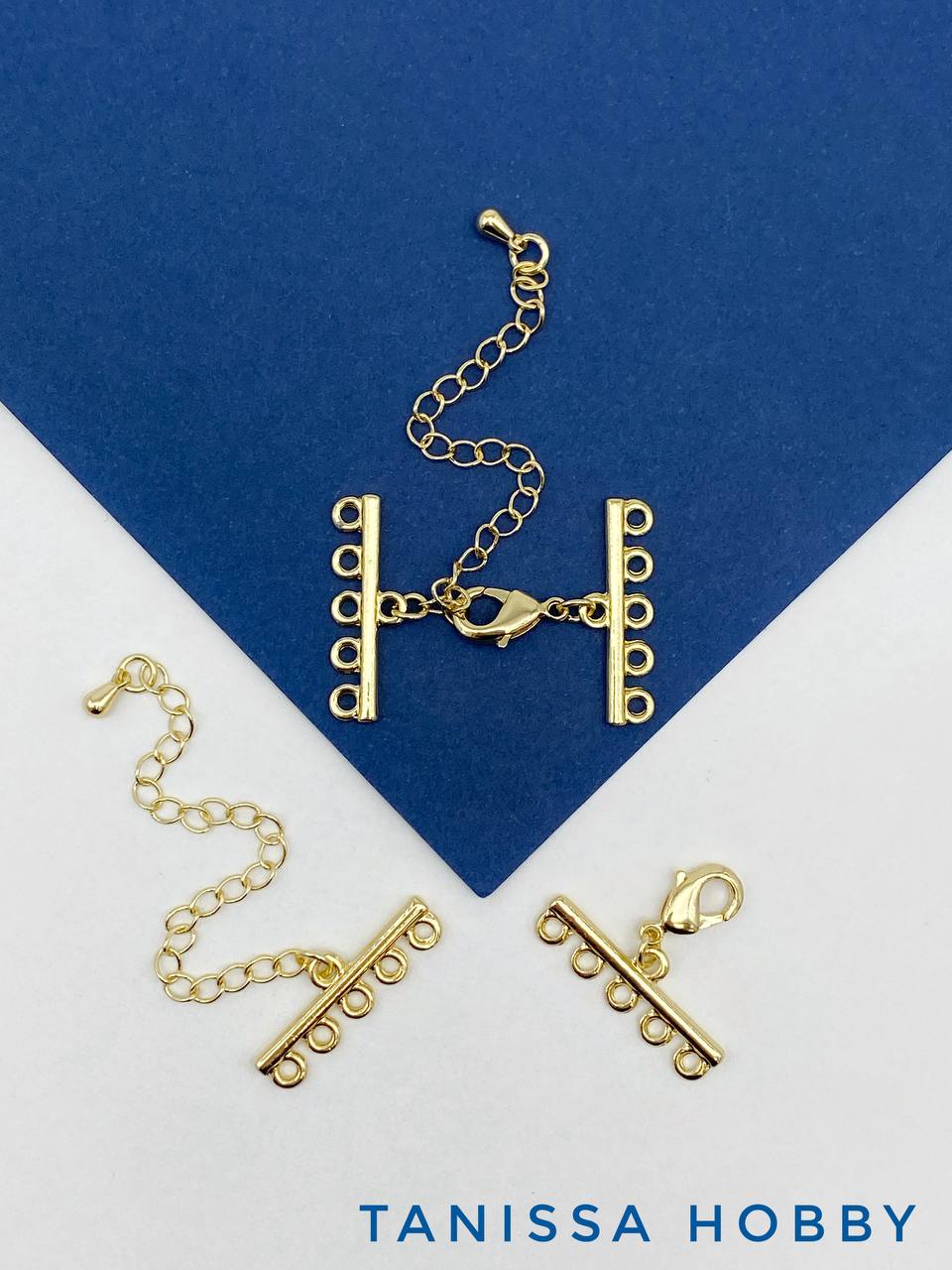 • Замок карабин для многорядного колье на 3 нити, позолота, Д084