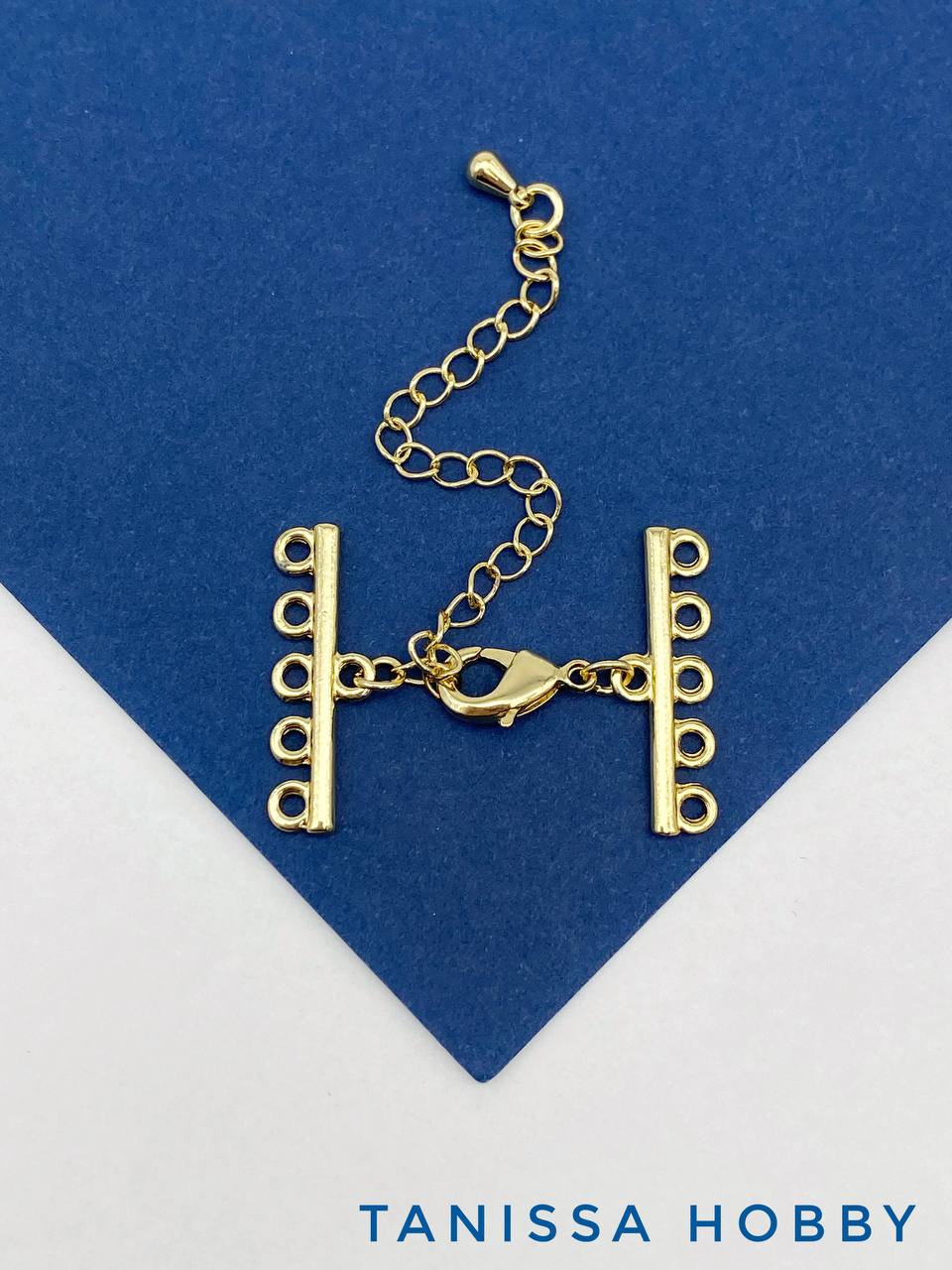 -Карабин замок лобстер многорядный с коннекторами на 5 нитей, позолота, К708