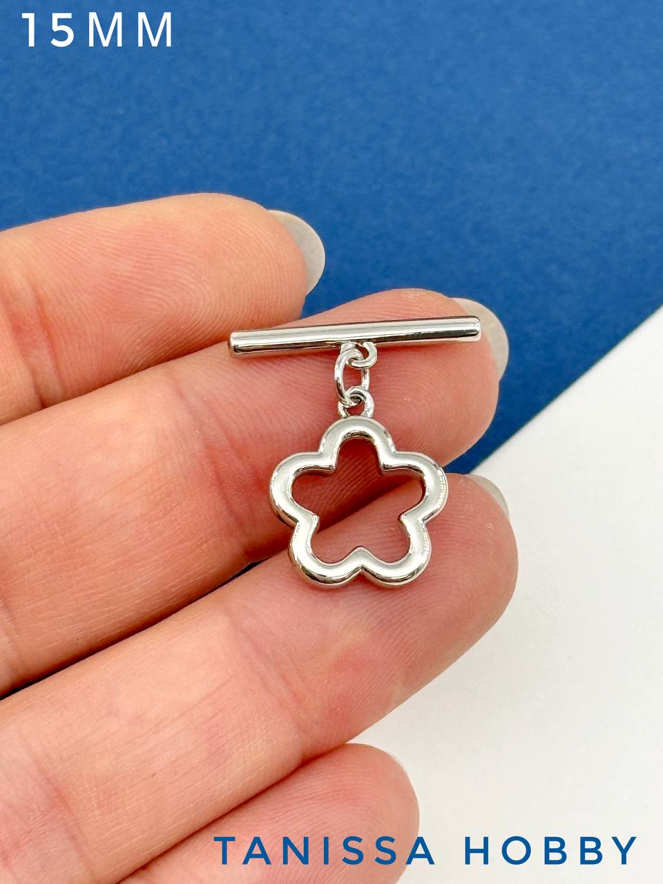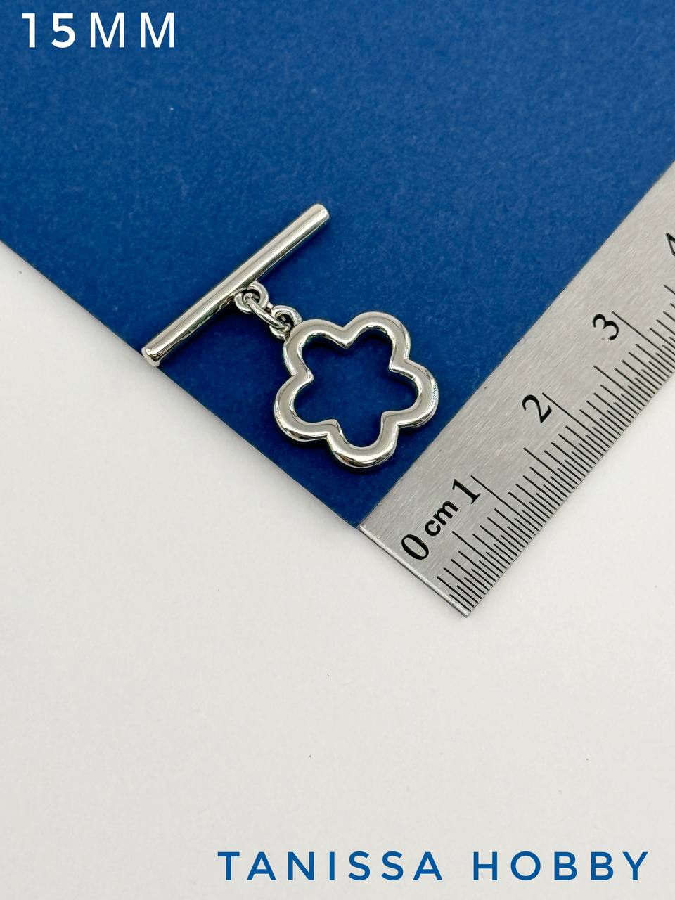 Замочек Тогл цветок 15мм, родий, Т203