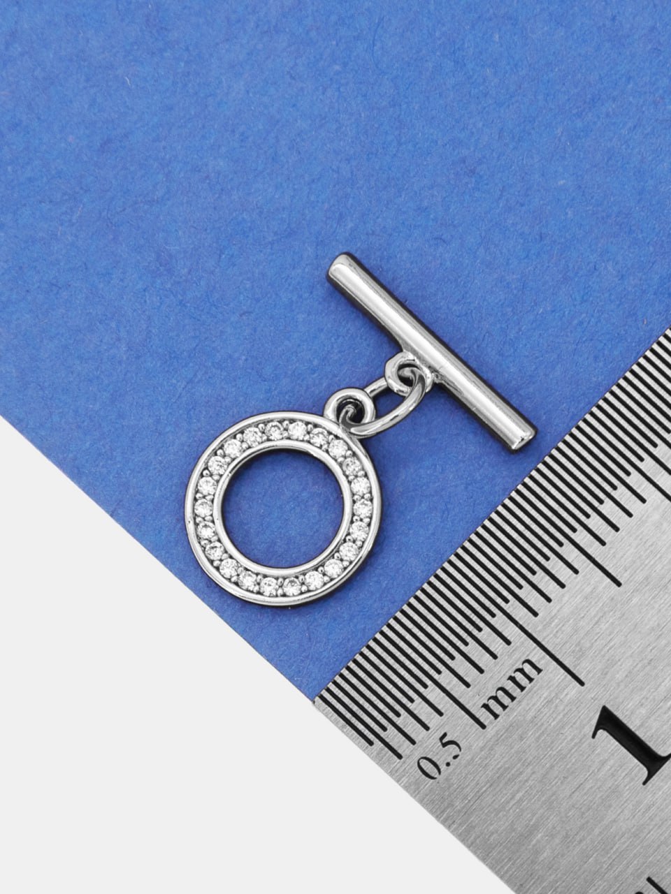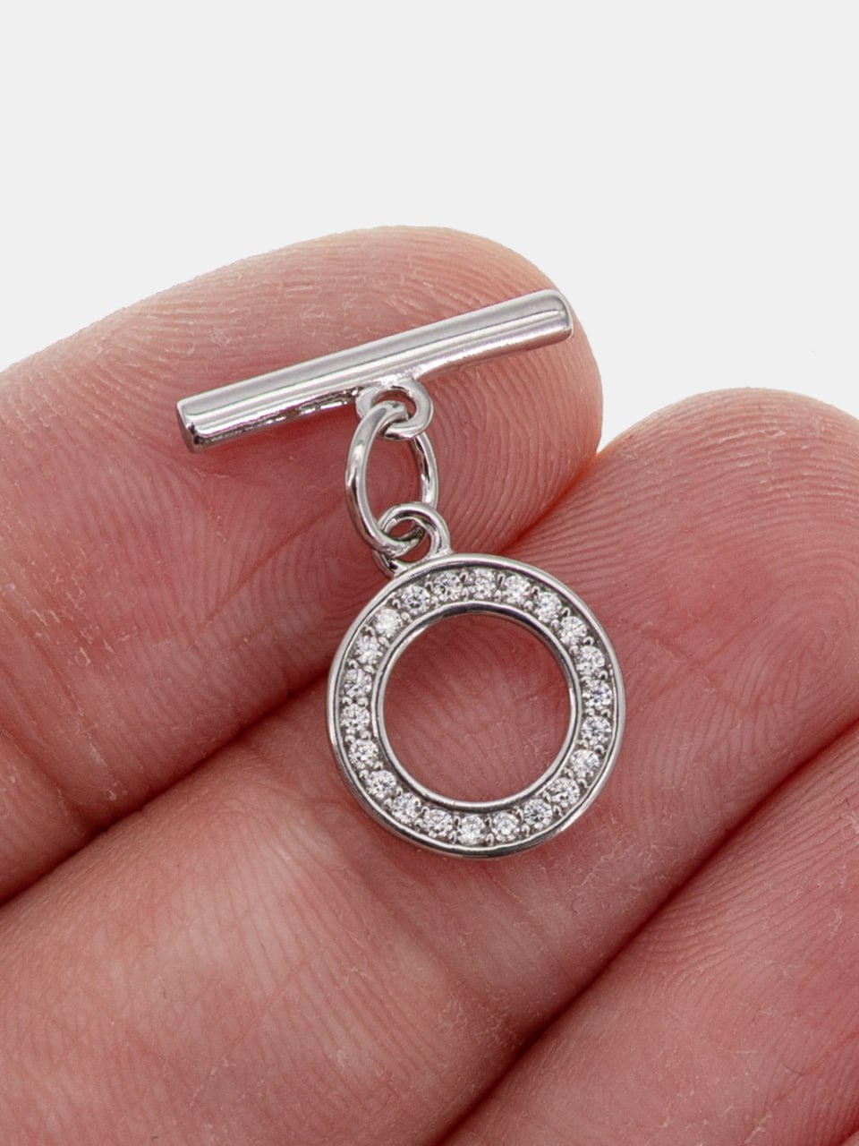 • Замочек тогл 10мм с фианитами, родий, Т101