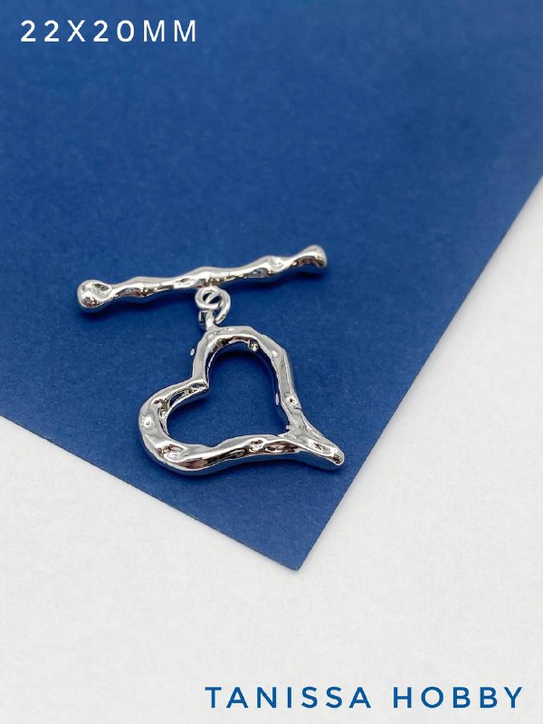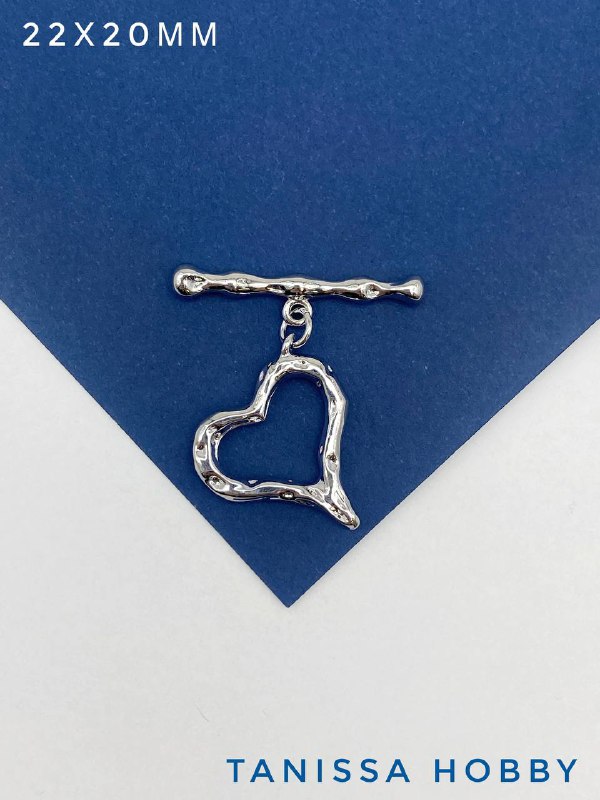 Замочек тогл сердце, мятый металл, родий, Т225