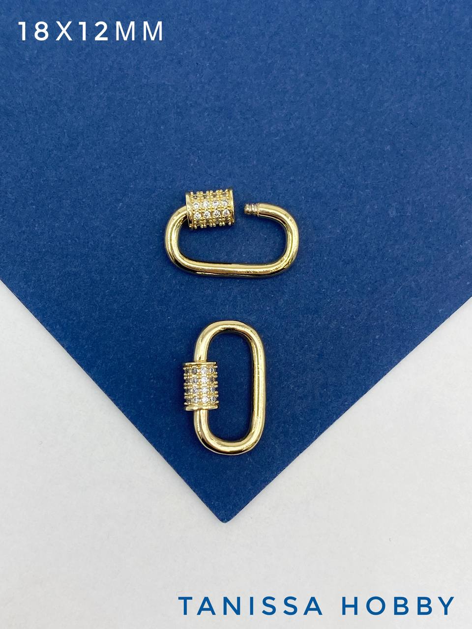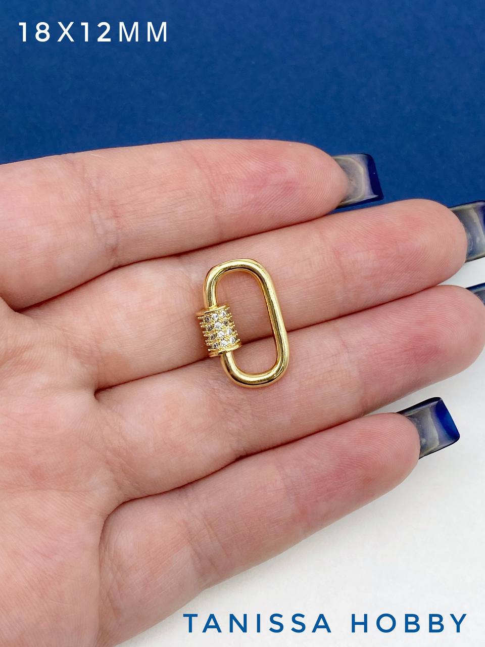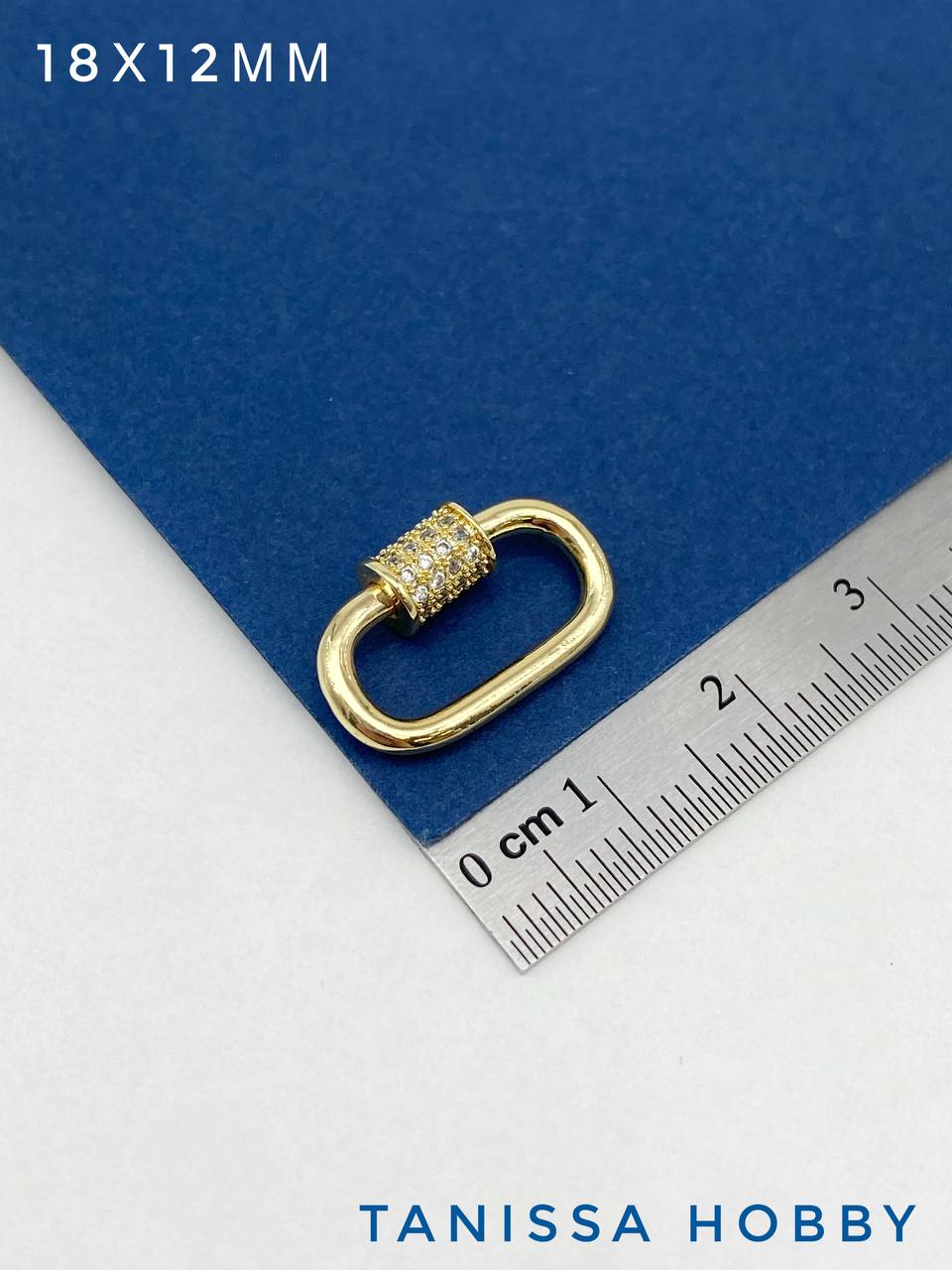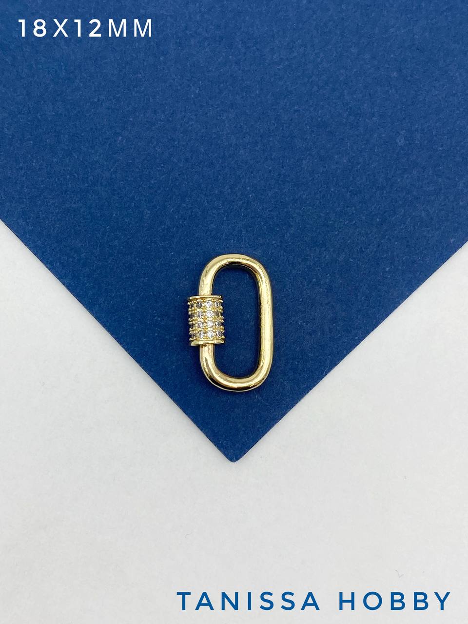 Карабин замок винтовой овал с фианитами, 18х12мм, позолота, Р031