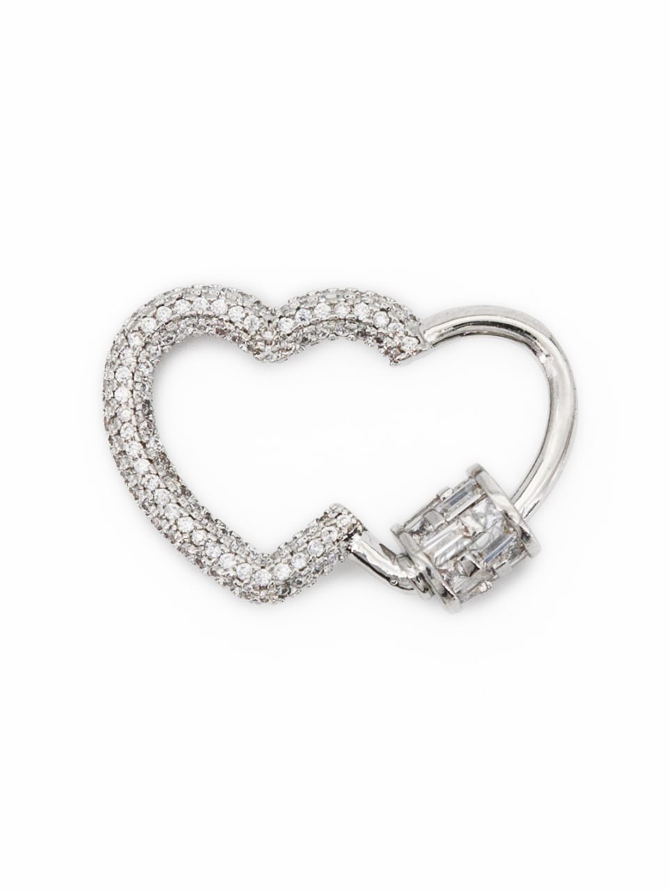 Карабин замок винтовой сердце с фианитами, 29х19мм, родий, КР001