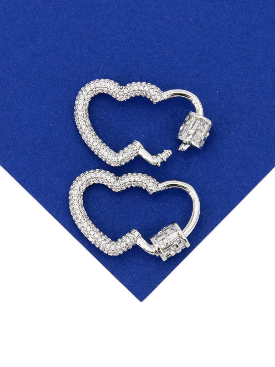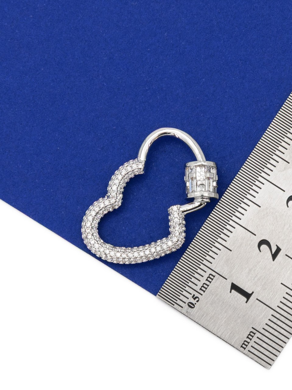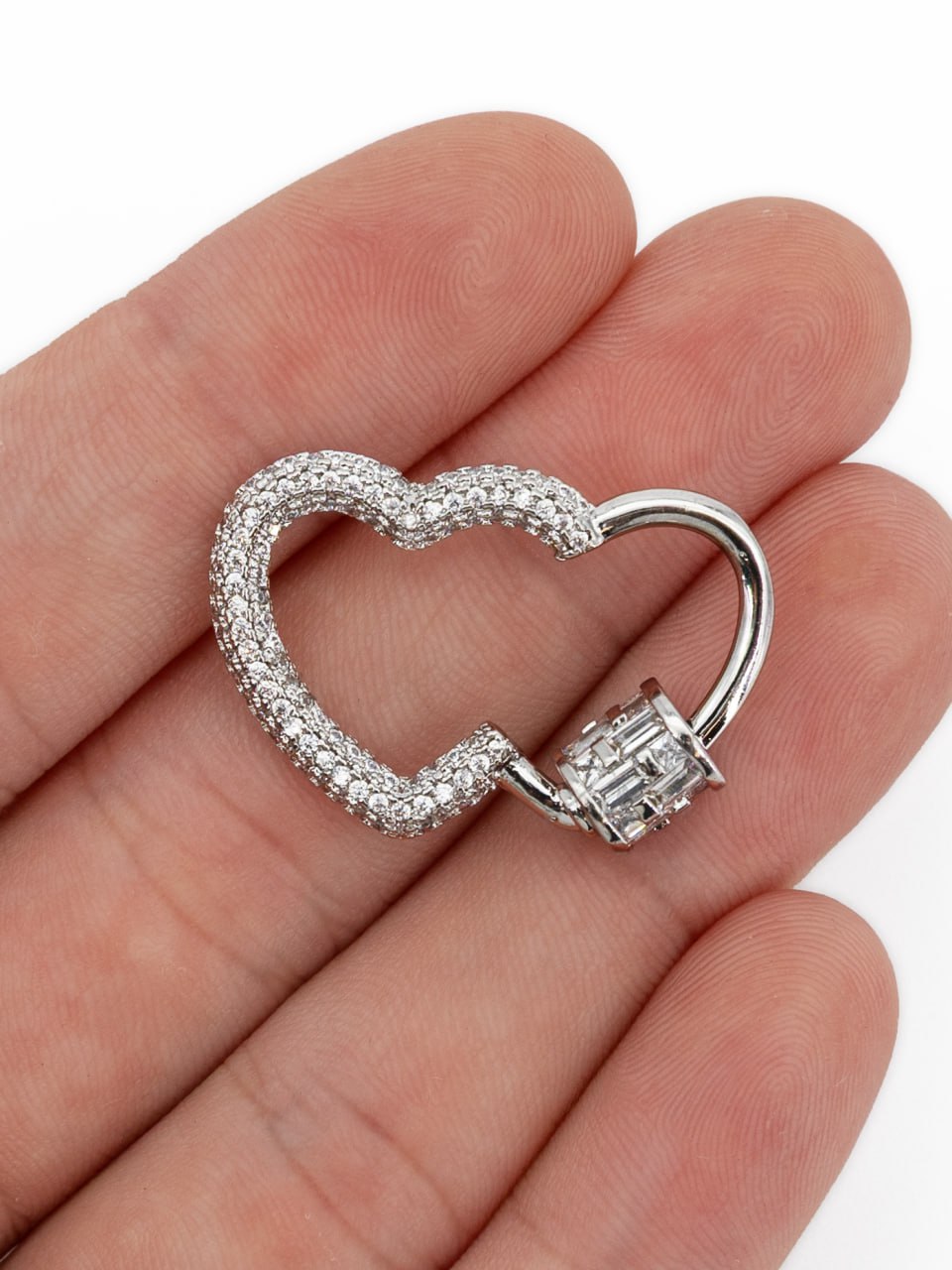 Винтовой замочек карабин в форме сердца с фианитами для создания украшений