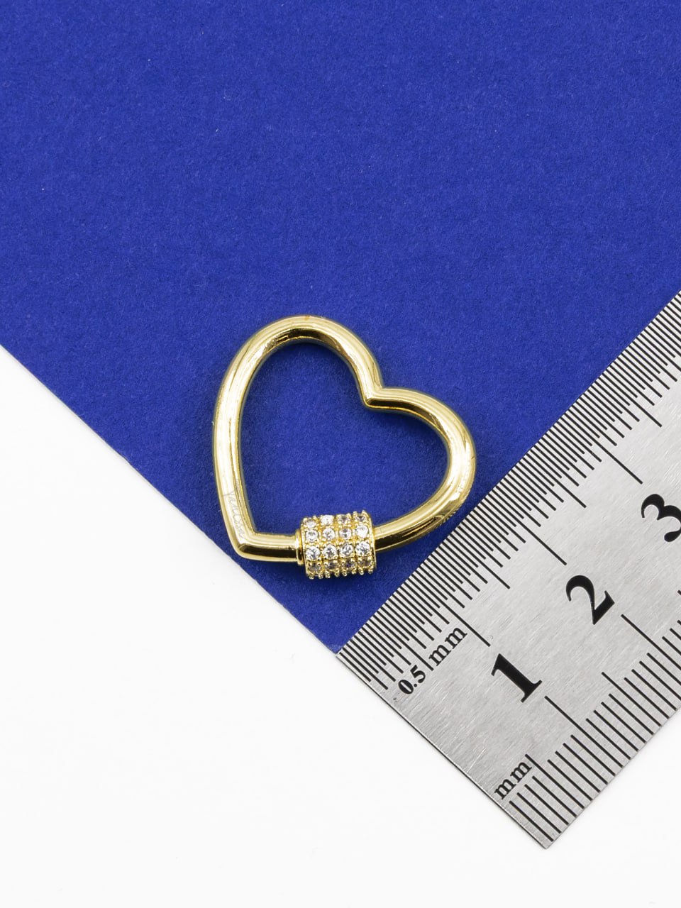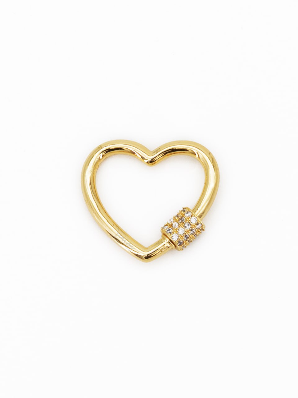 • Карабин замок винтовой сердце с фианитами, 23х25мм, позолота, КР011