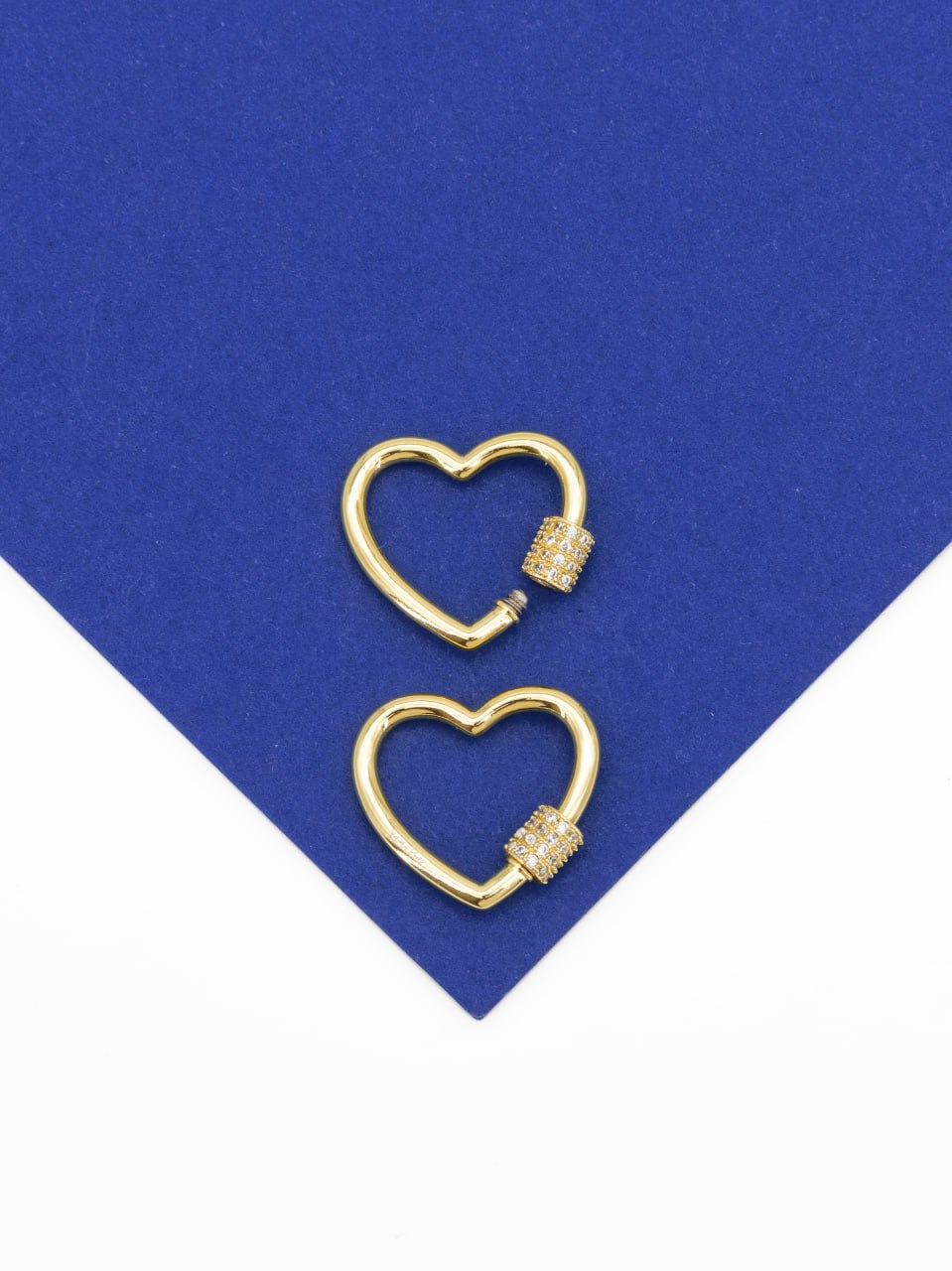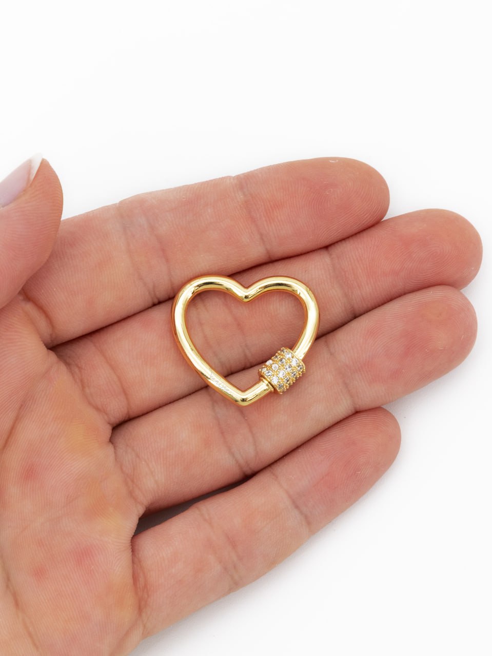 Винтовой замочек карабин в форме сердца с фианитами для создания украшений