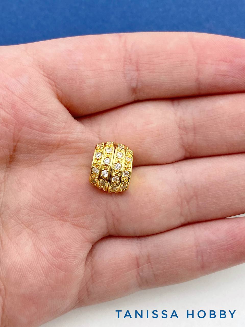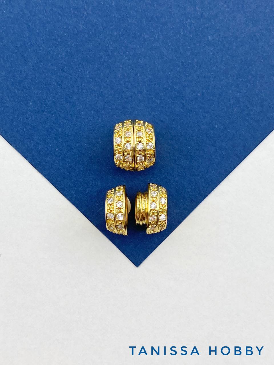 Замок карабин винтовой и фианитами 10х12мм, позолота, К736