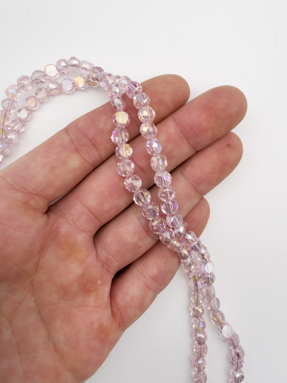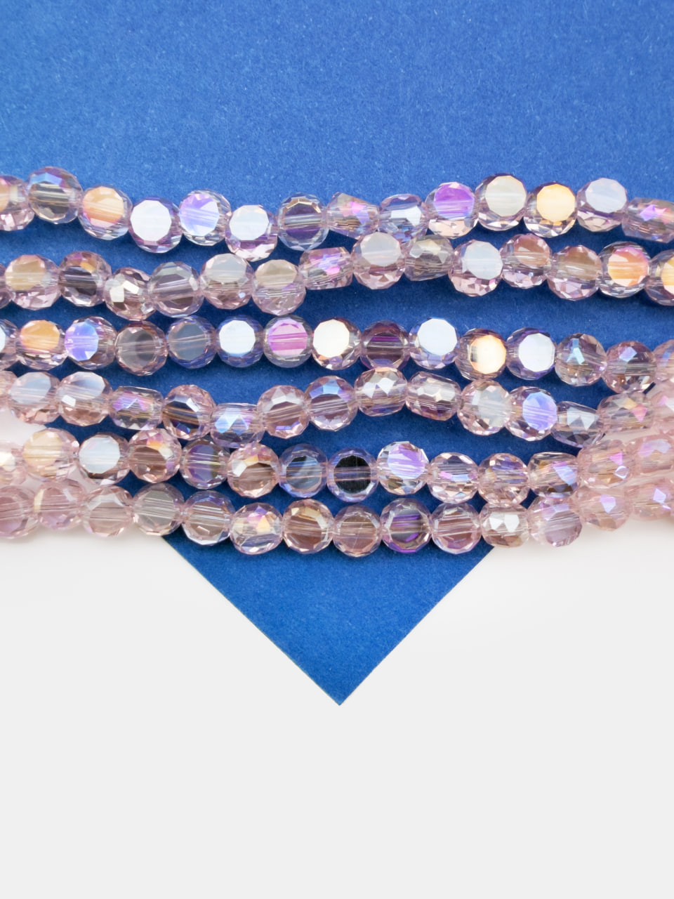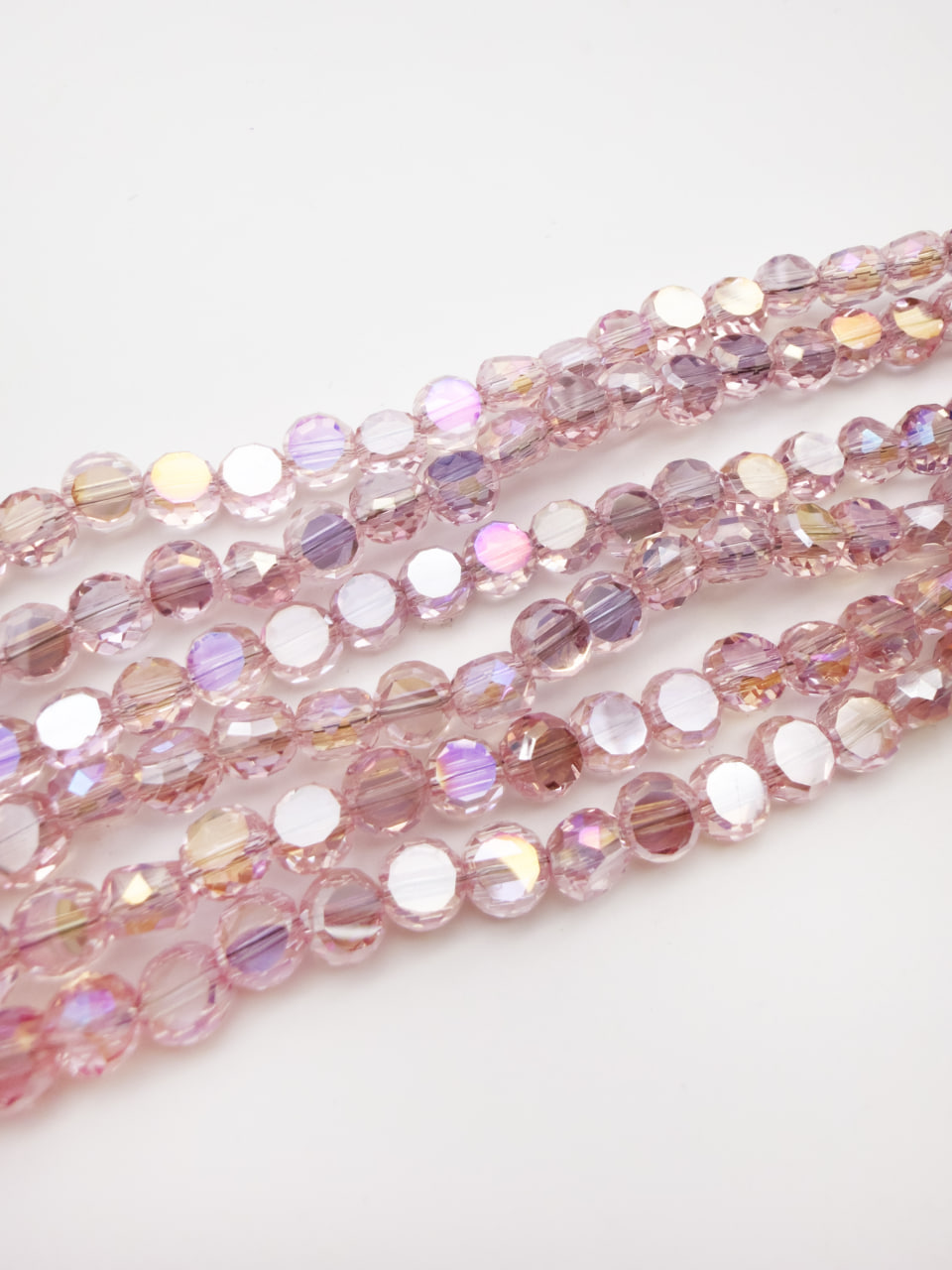 Хрусталь диск, круглый плоский, розовый АВ, 6мм, нить, Х309