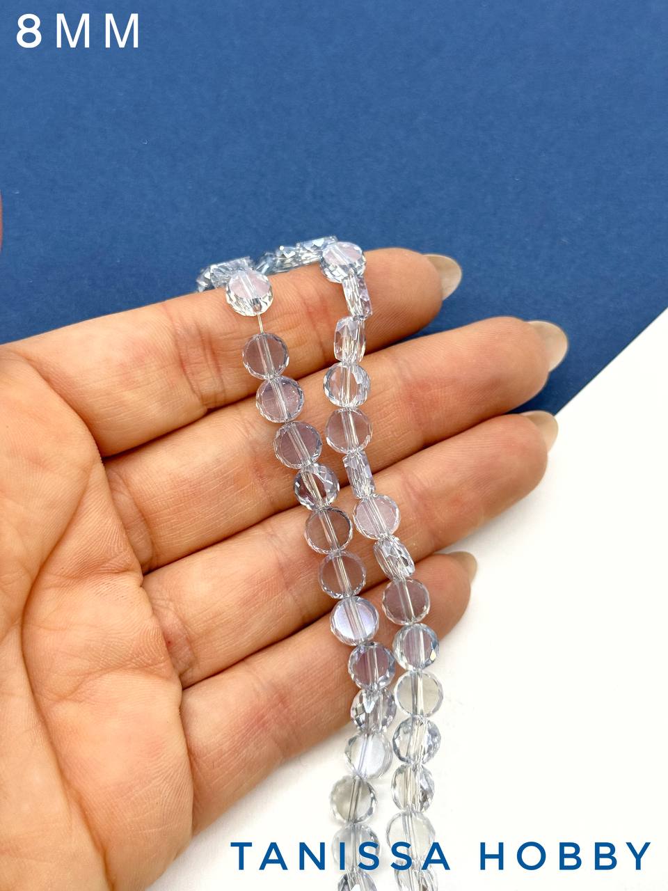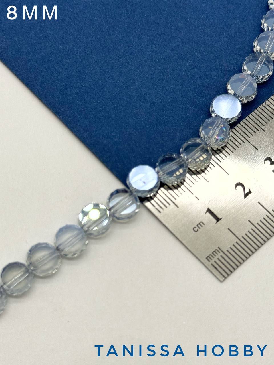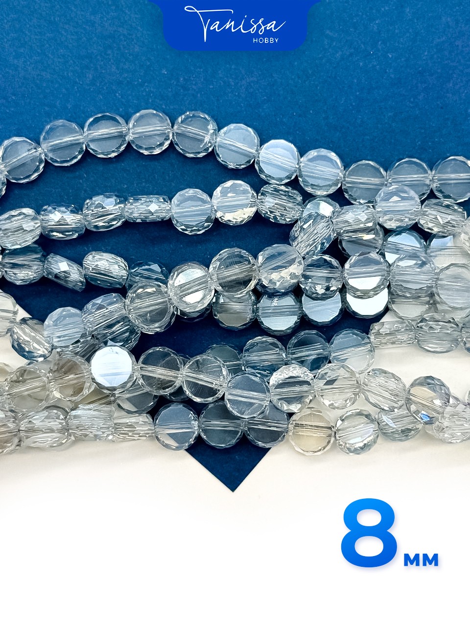Хрусталь диск, круглый плоский, серо-голубой, 8мм, нить, Х320