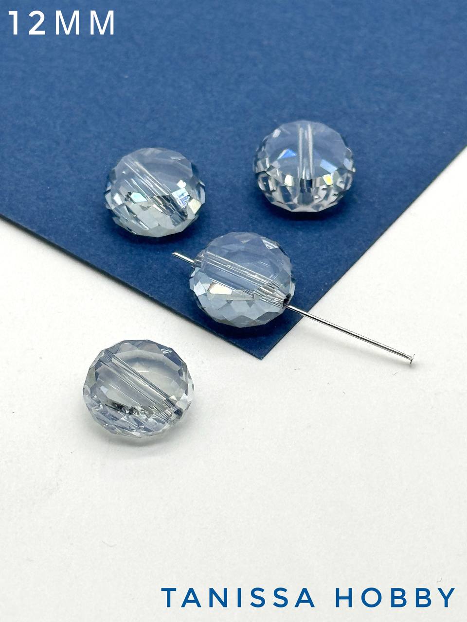 Хрусталь диск, круглый плоский, серо-голубой, 12мм, штука, Х321