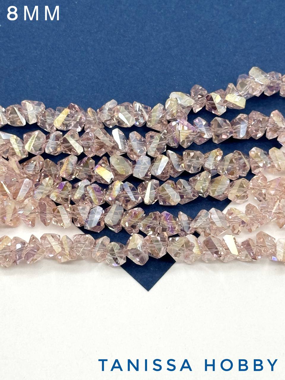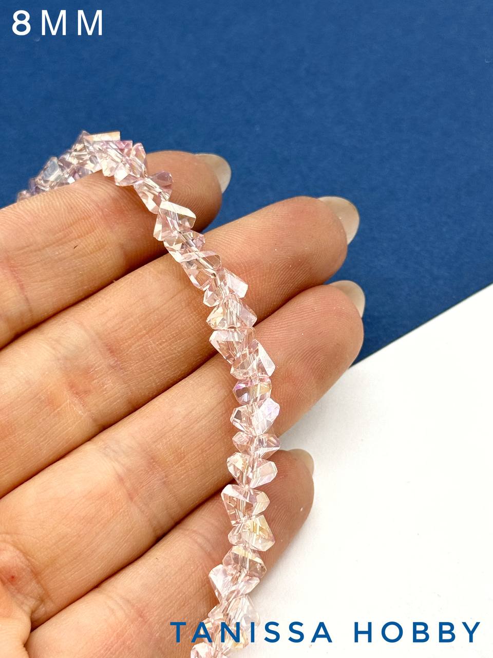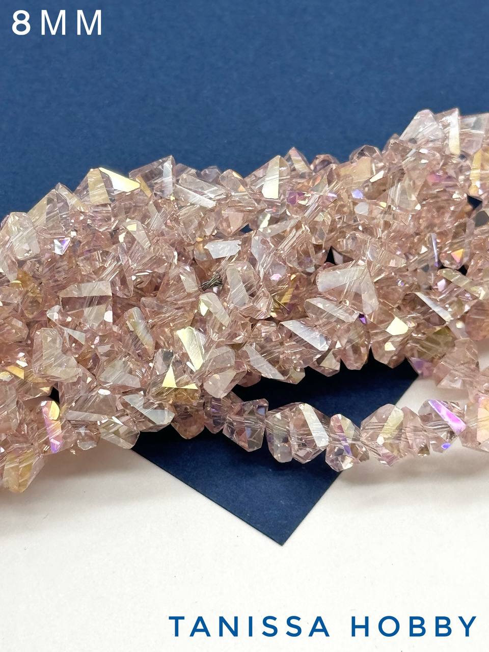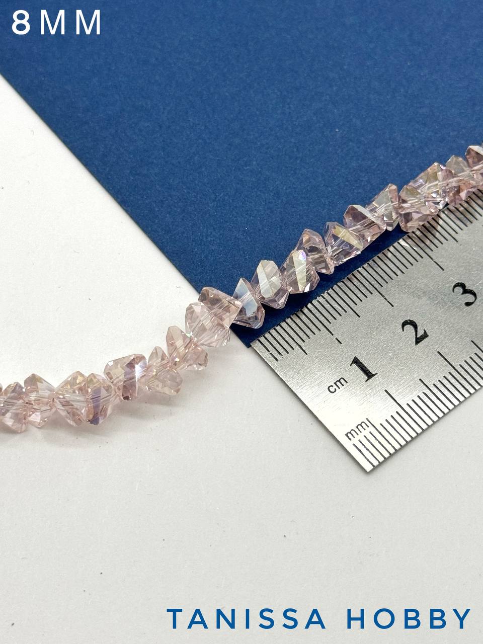 Хрусталь крошка треугольник, розовый АВ, 8мм, нить, Х328