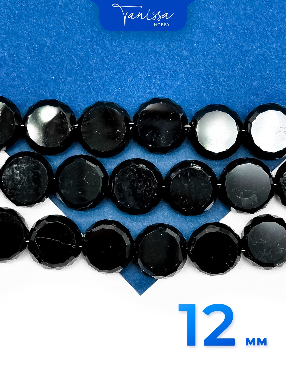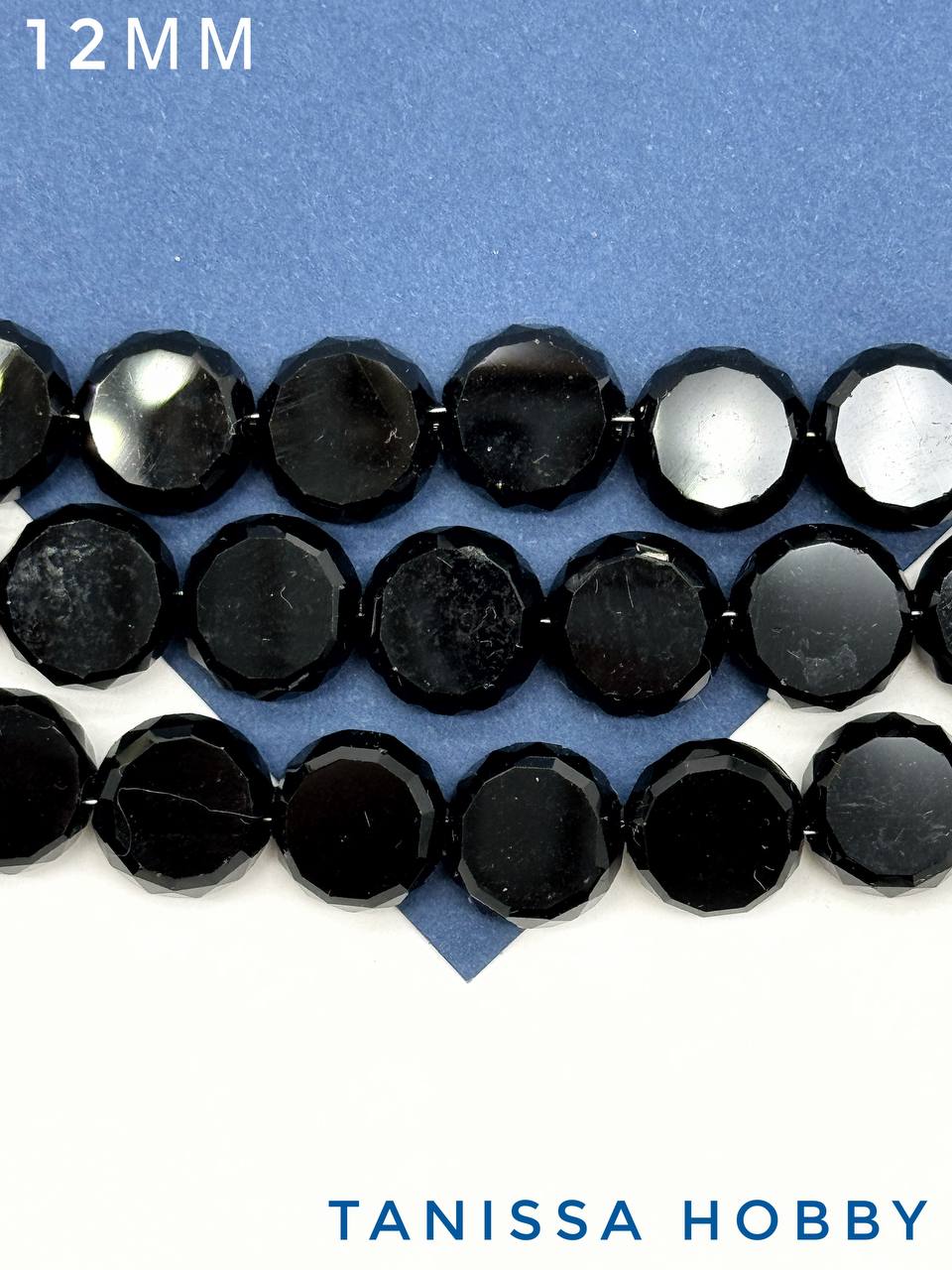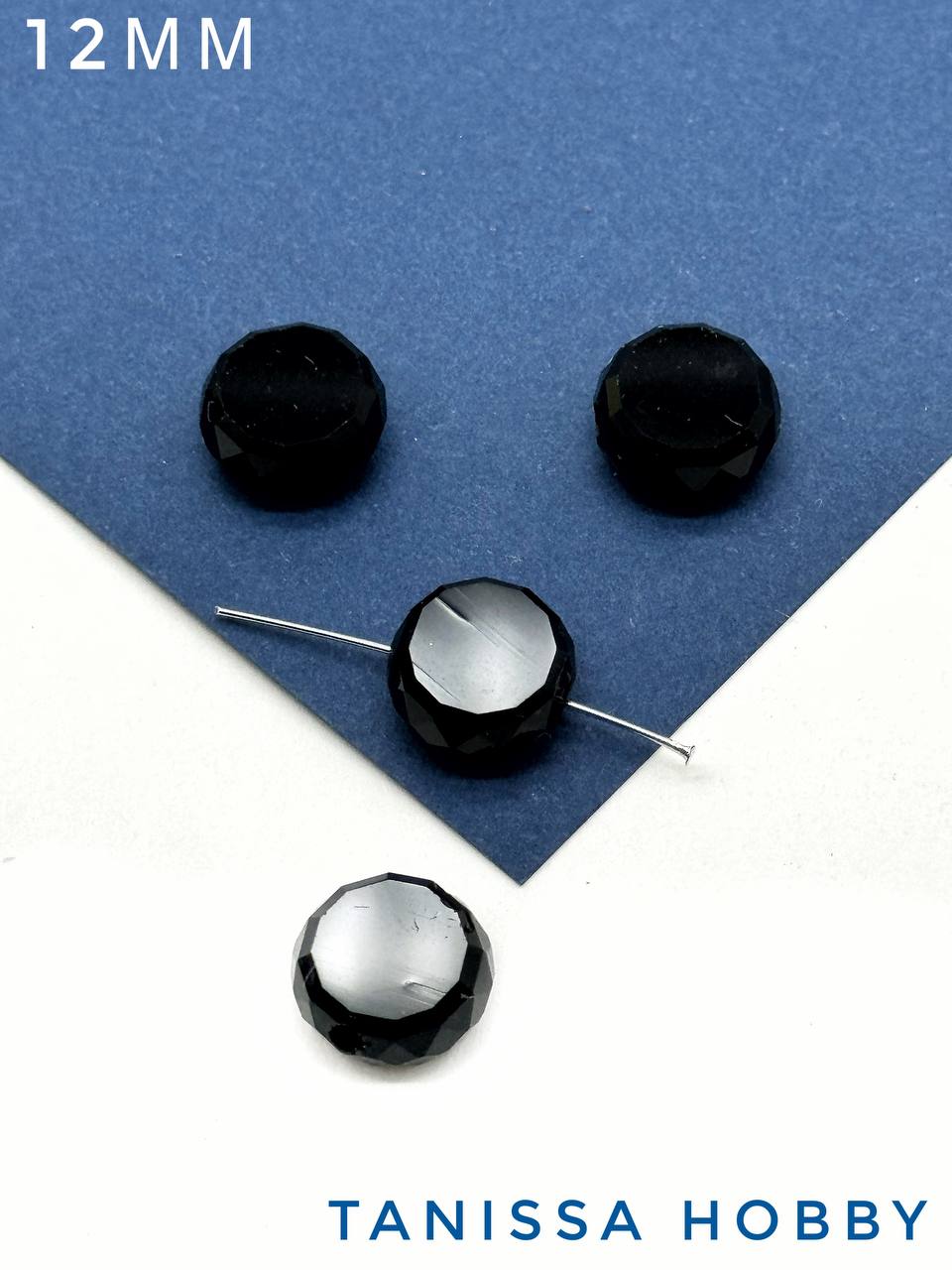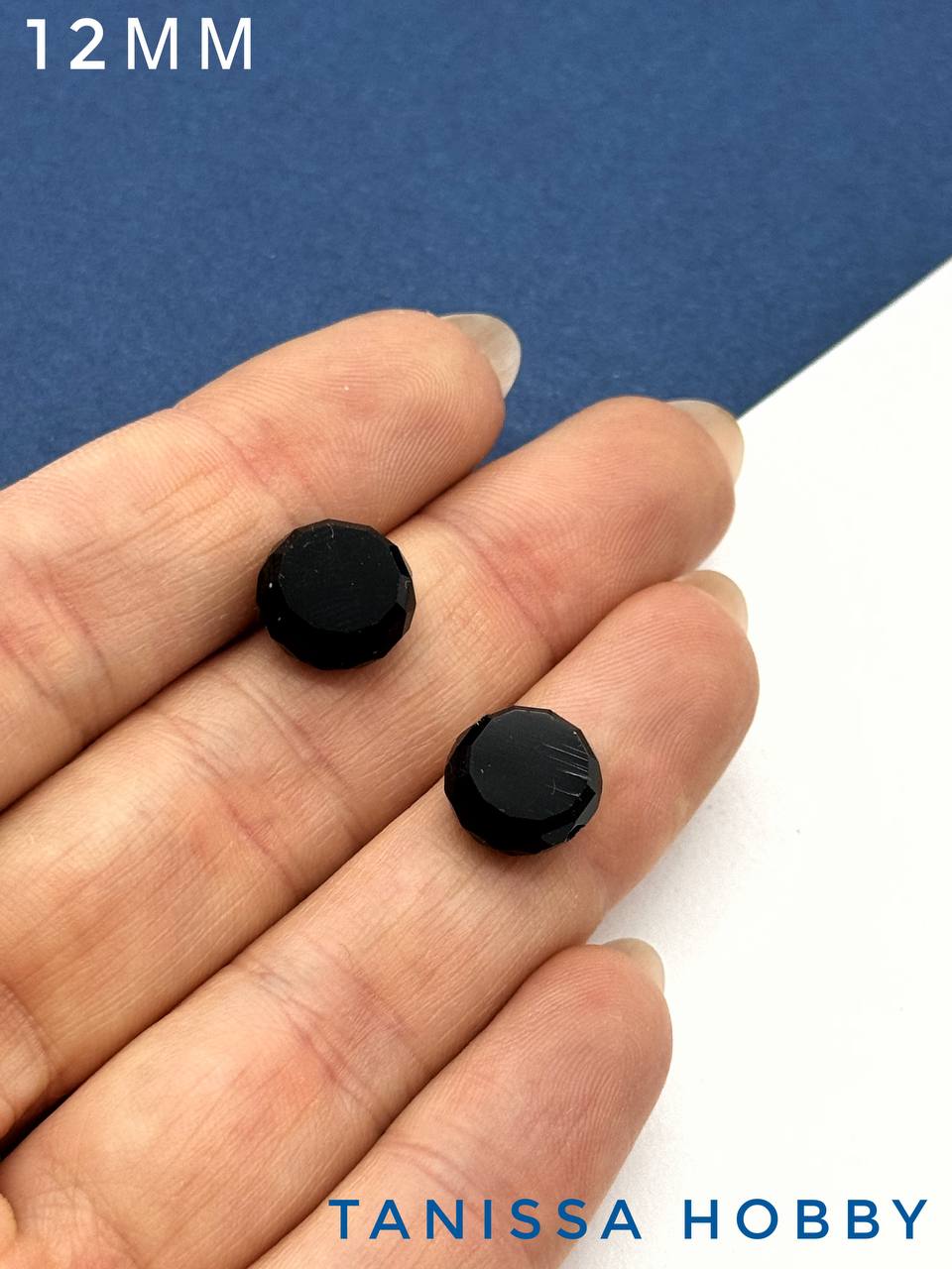 -Хрусталь диск, круглый плоский, черный, 12мм, штука, Х324