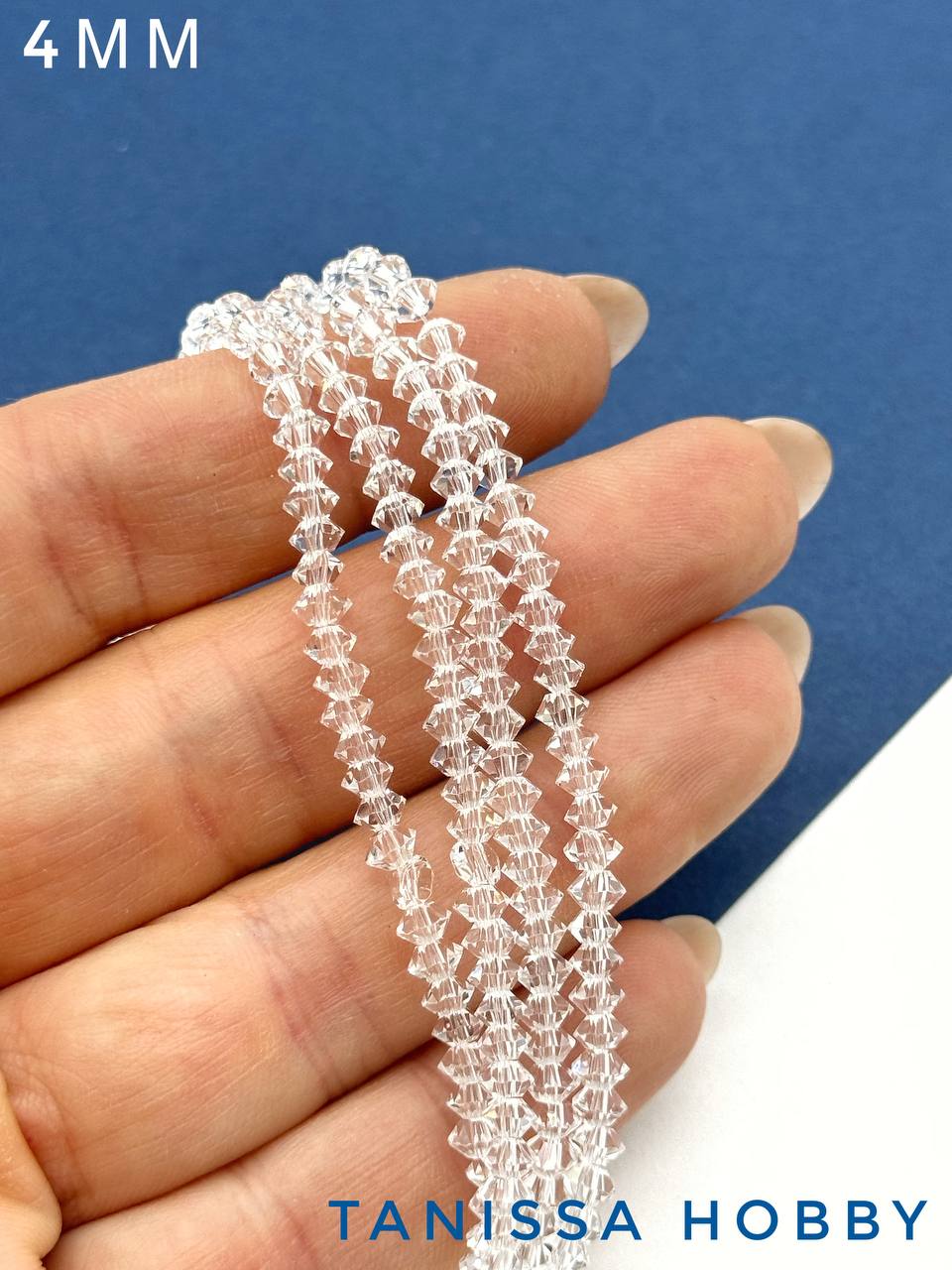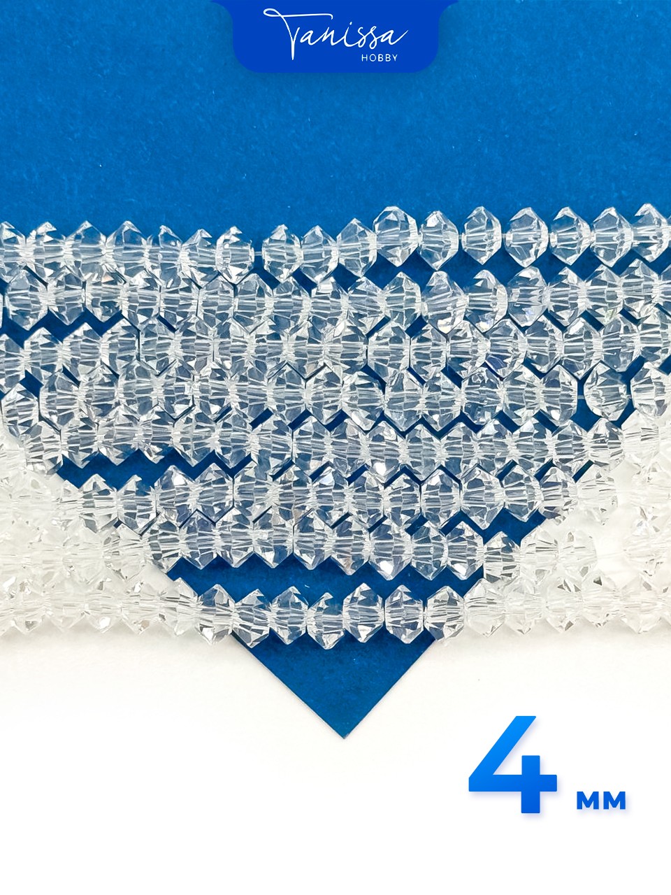 Хрусталь Биконус, плоский, прозрачный, 4мм, нить, Х334