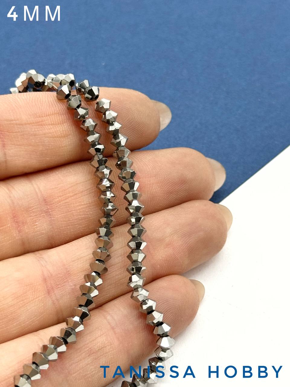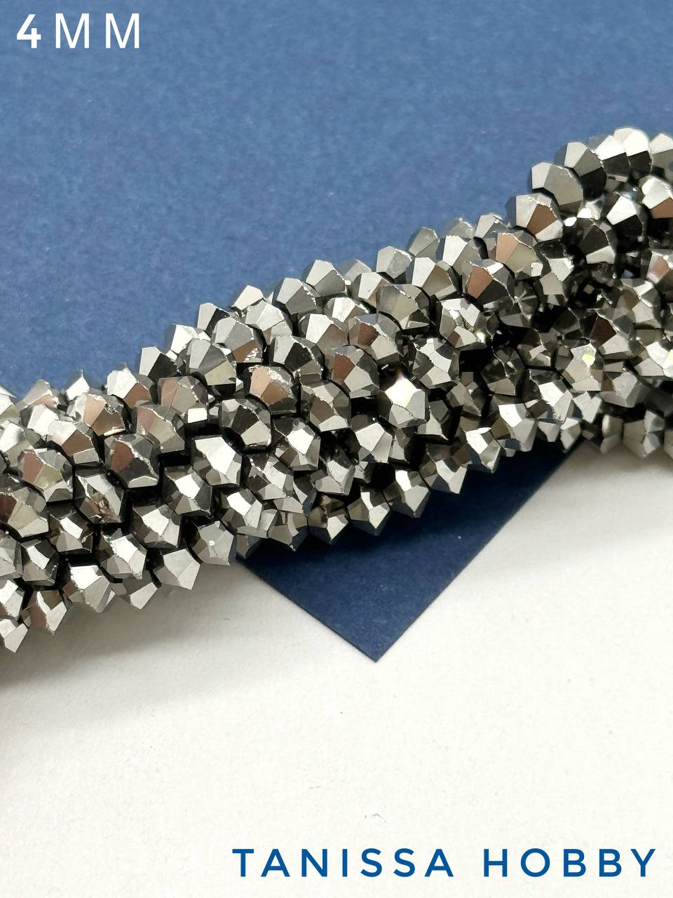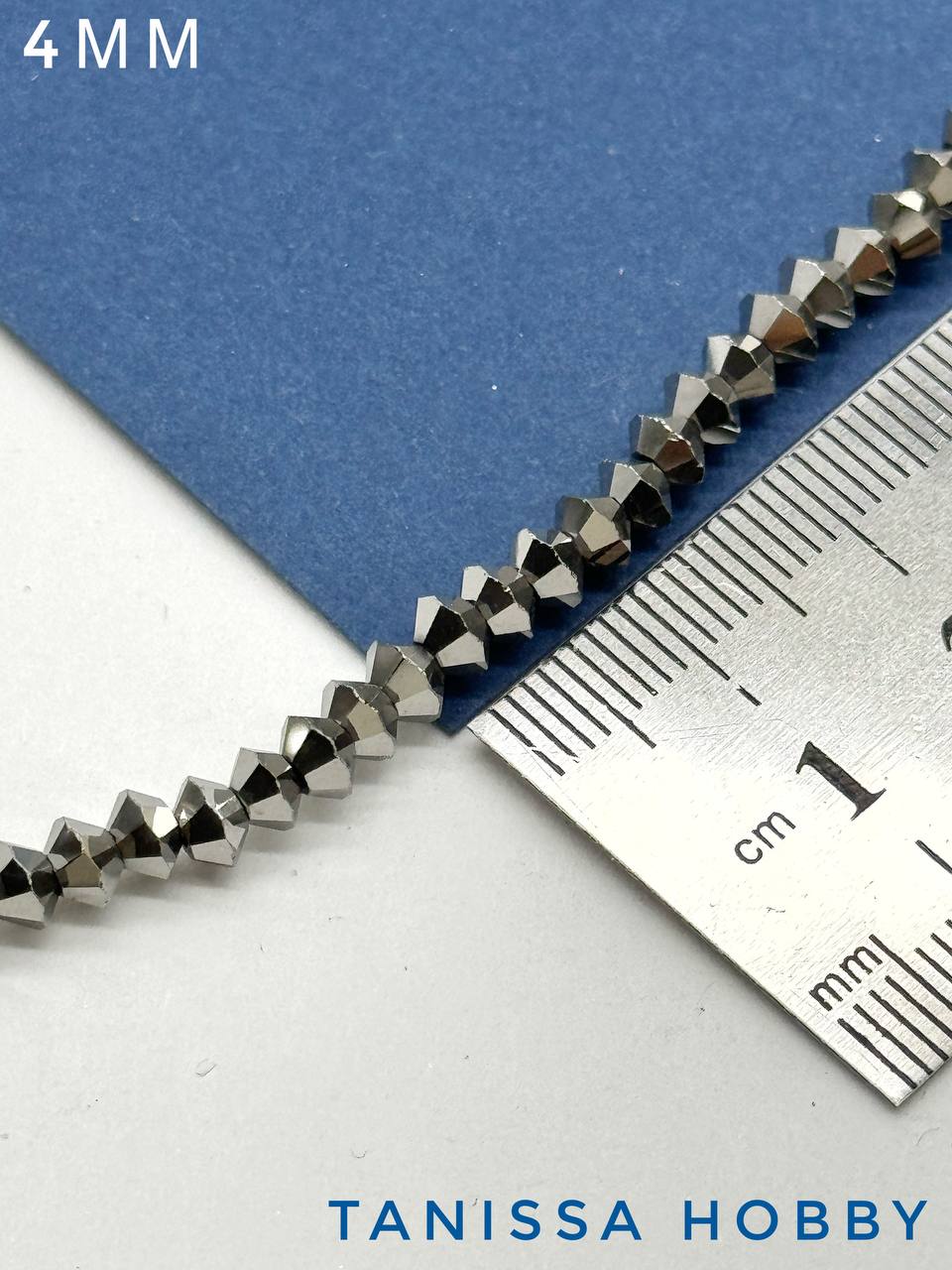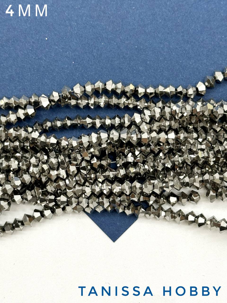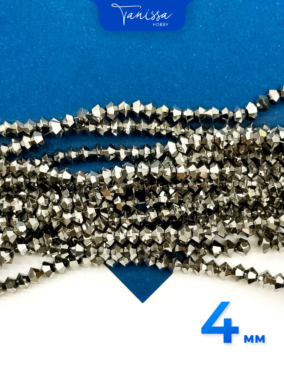 Хрусталь Биконус, плоский, гематит, 4мм, нить, Х336