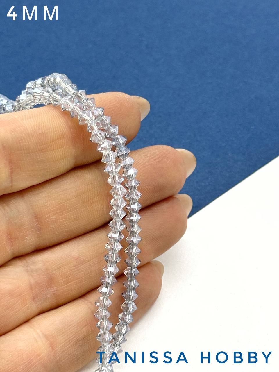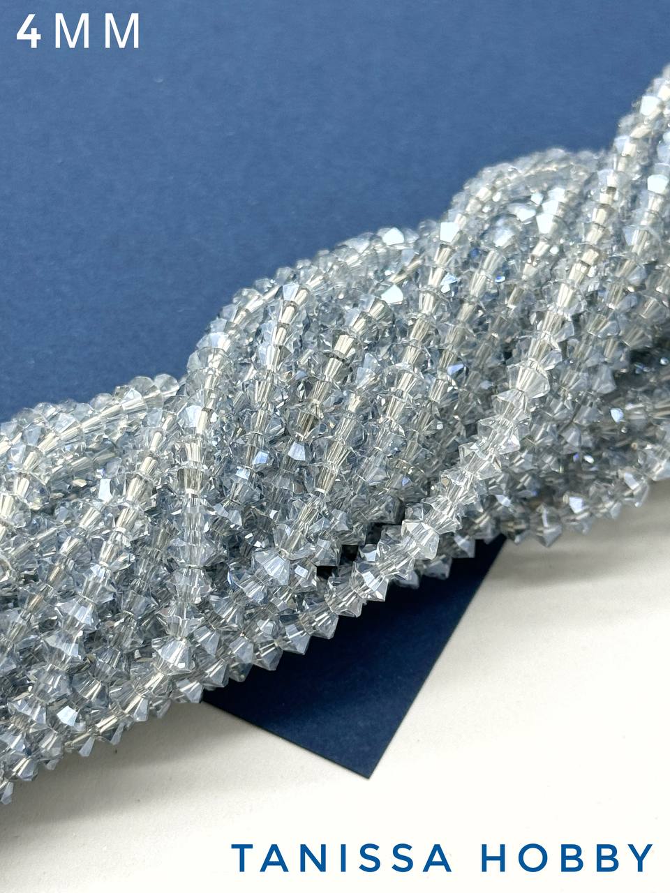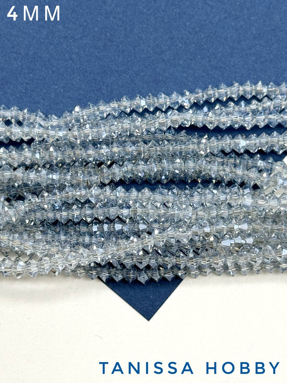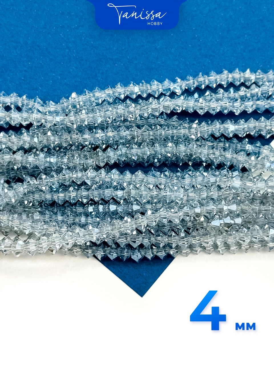 Хрусталь Биконус, плоский, серо-голубой, 4мм, нить, Х341