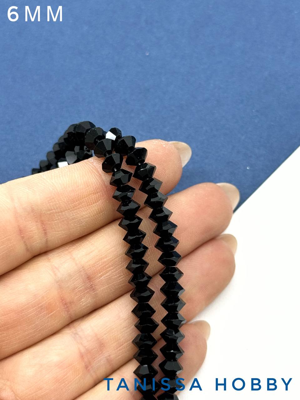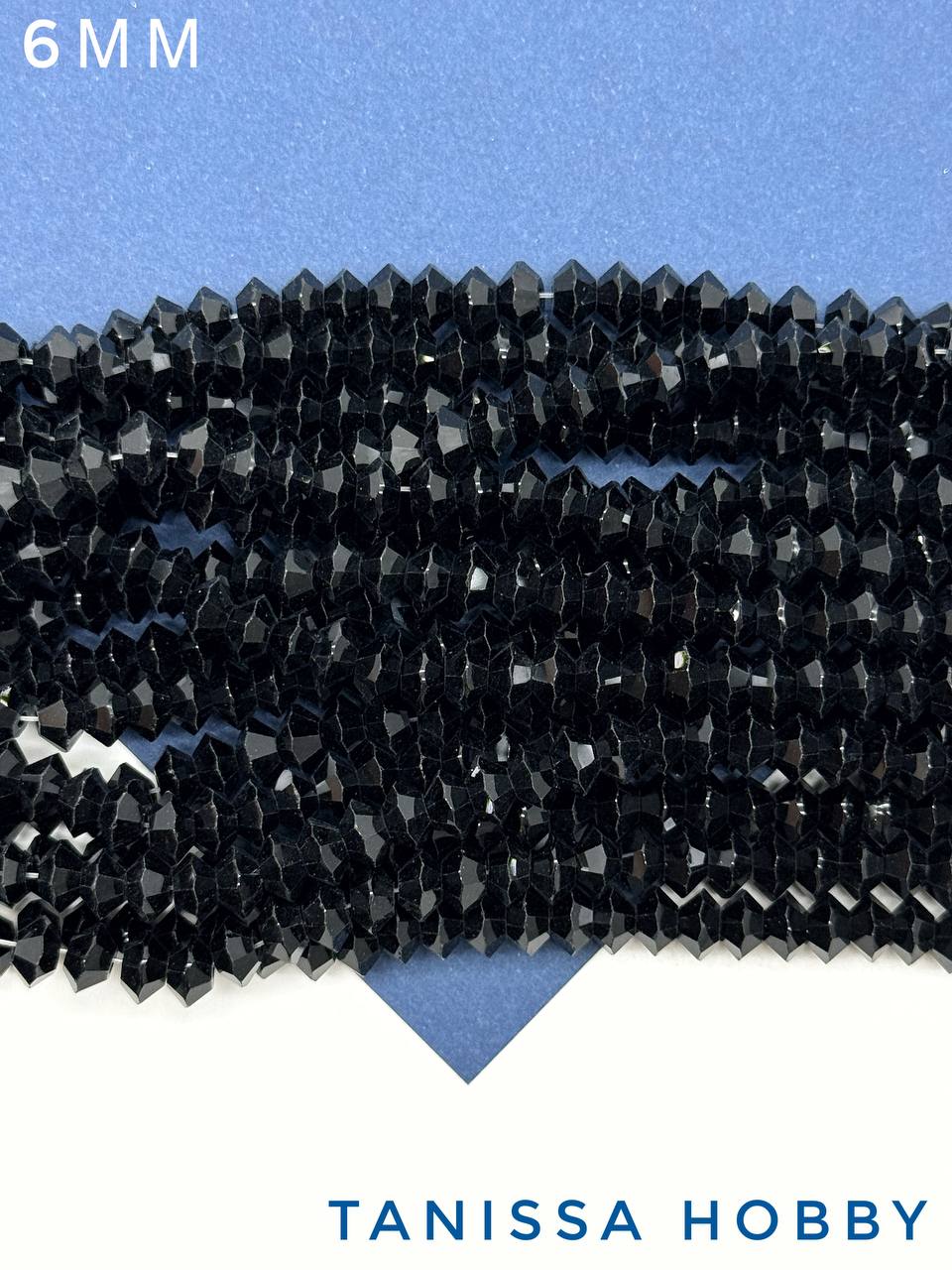 Хрусталь Биконус, плоский, черный, 6мм, нить, Х351