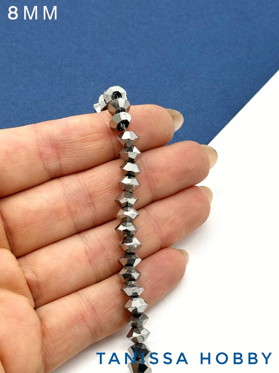 Хрусталь Биконус, плоский, гематит, 8мм, нить, Х354