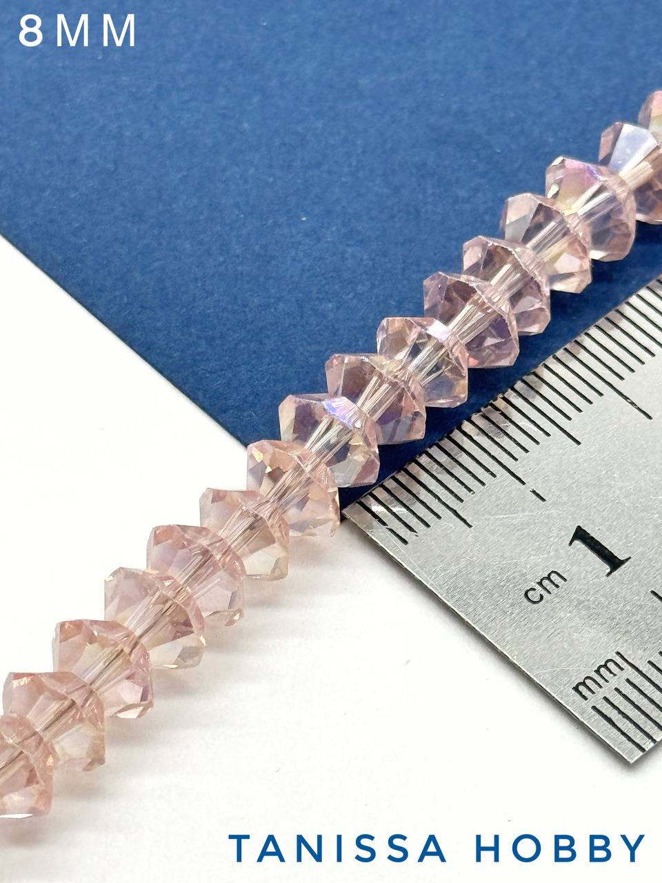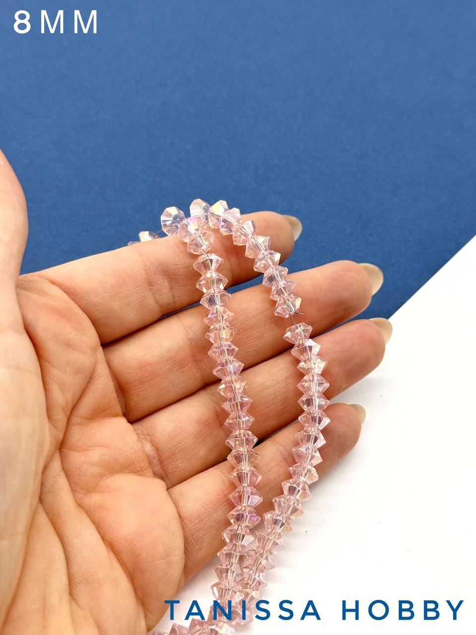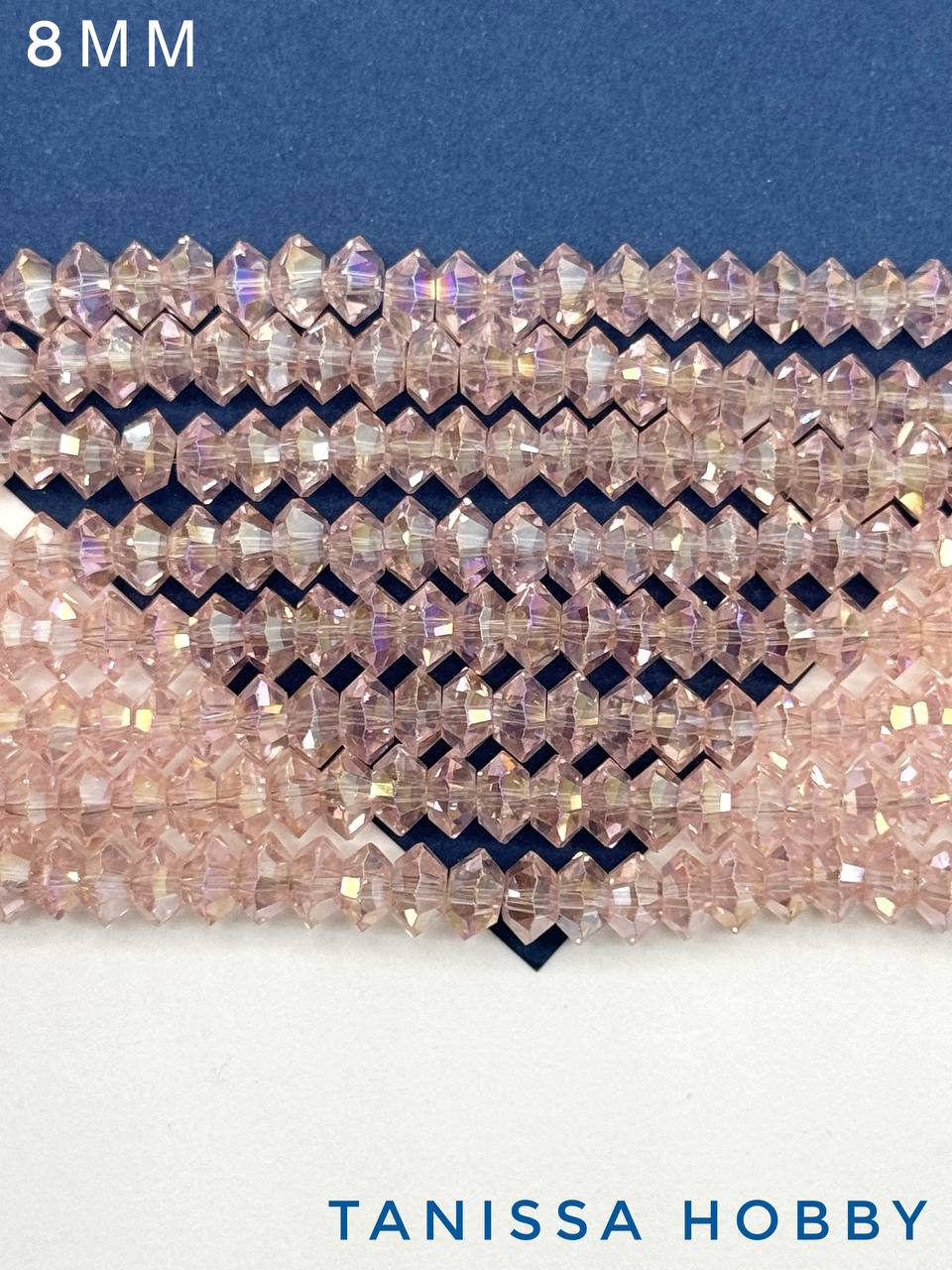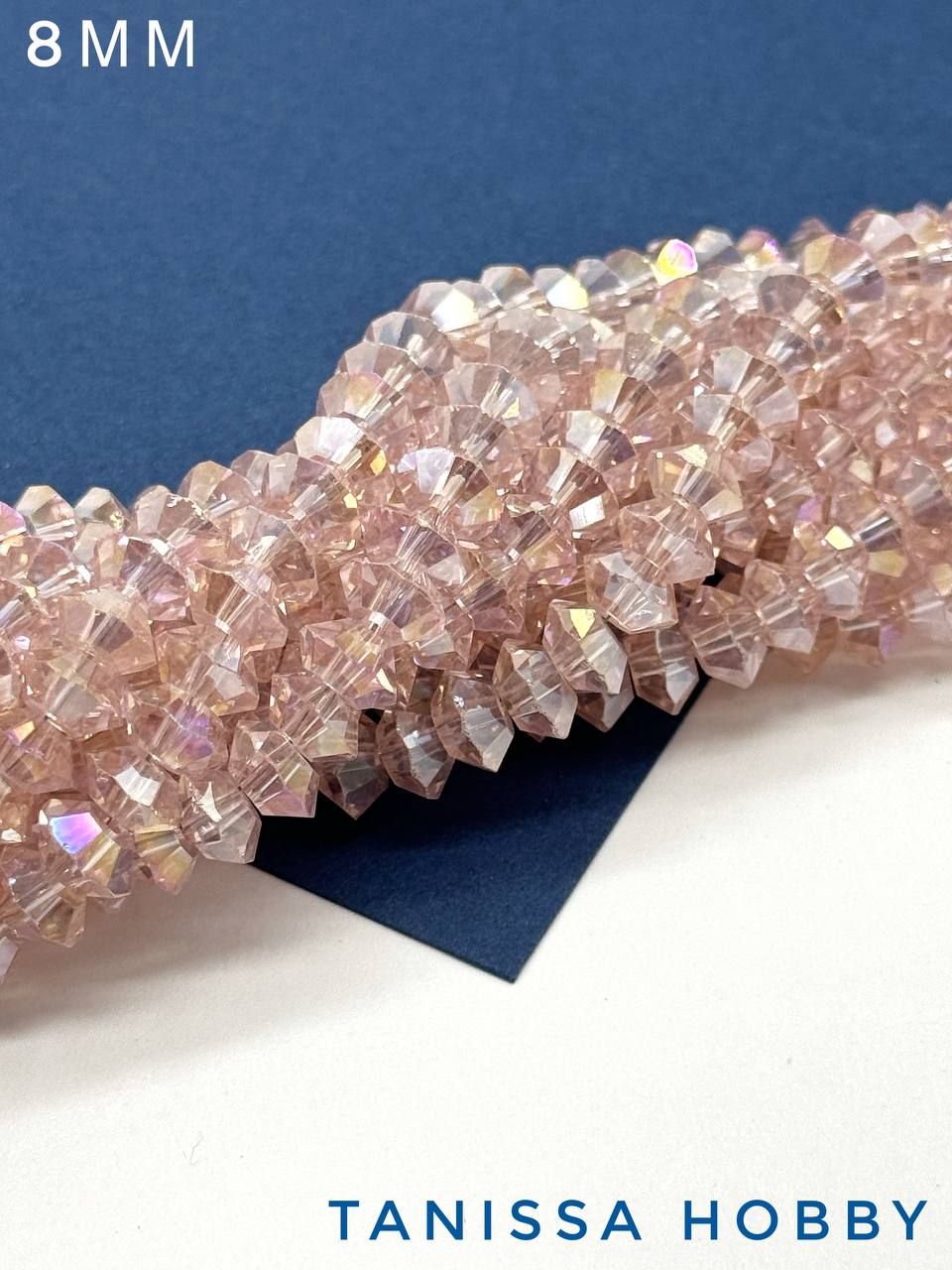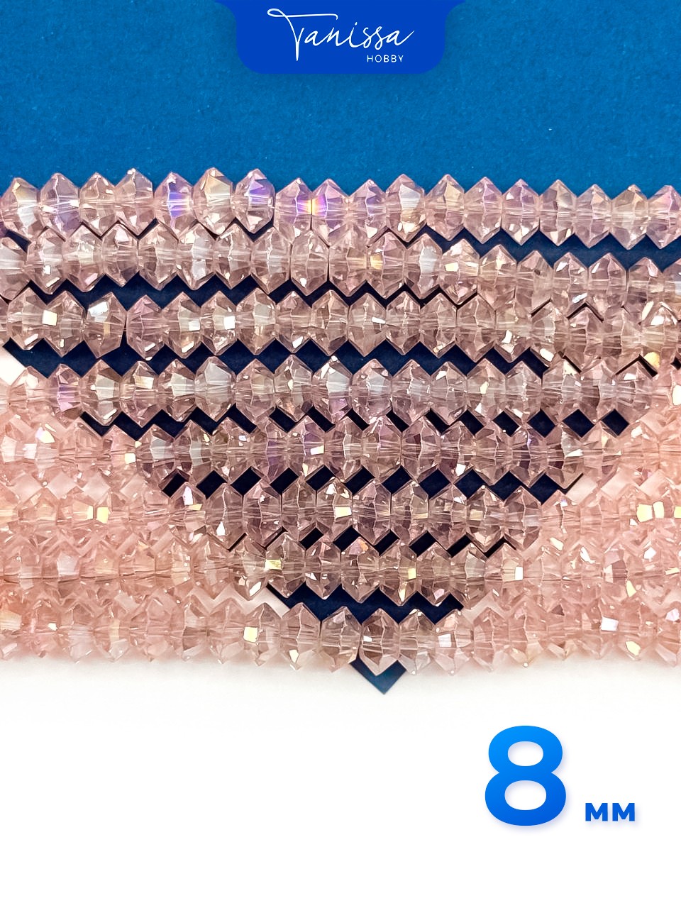 Хрусталь Биконус, плоский, розовый АВ, 8мм, нить, Х355