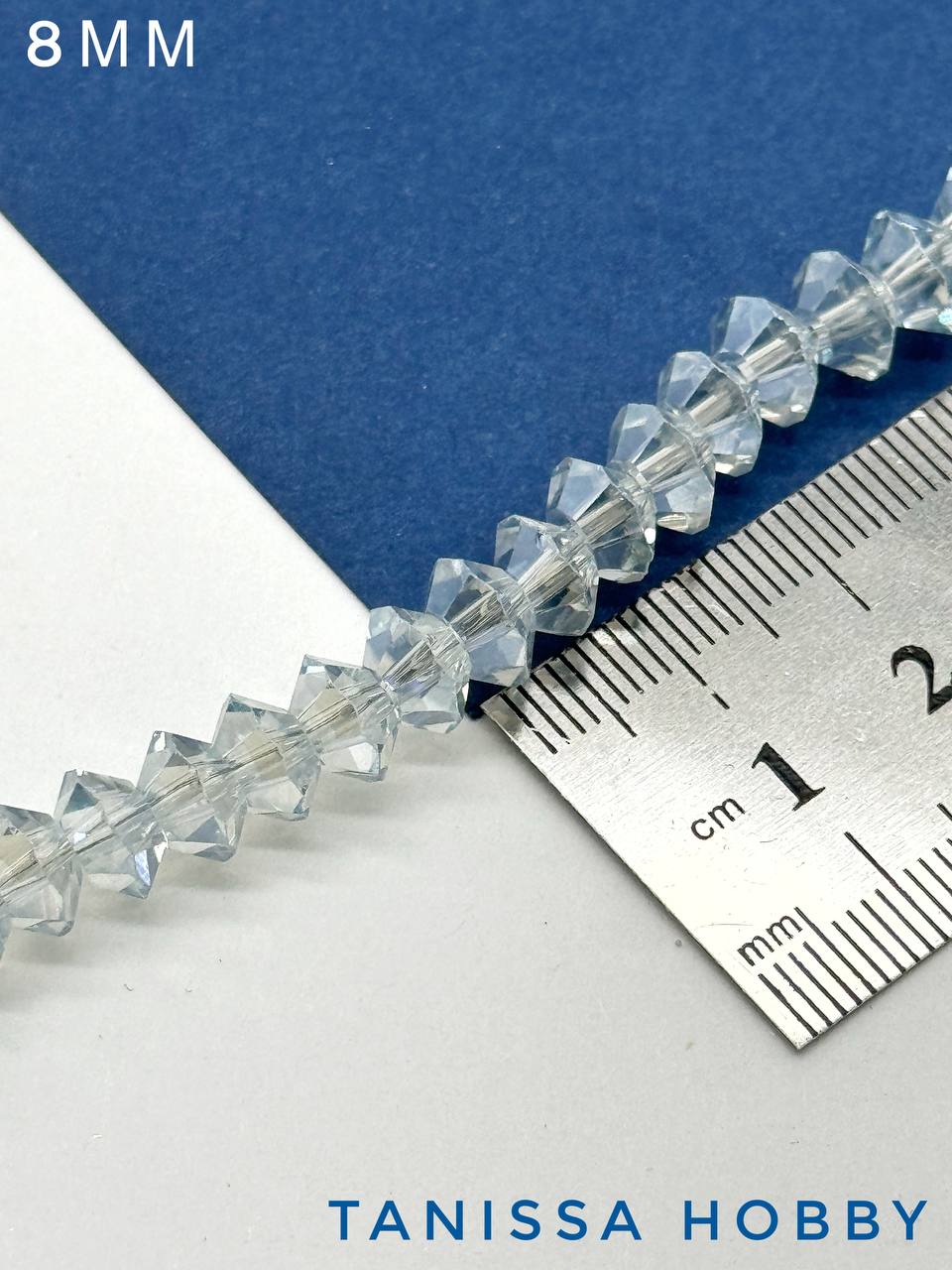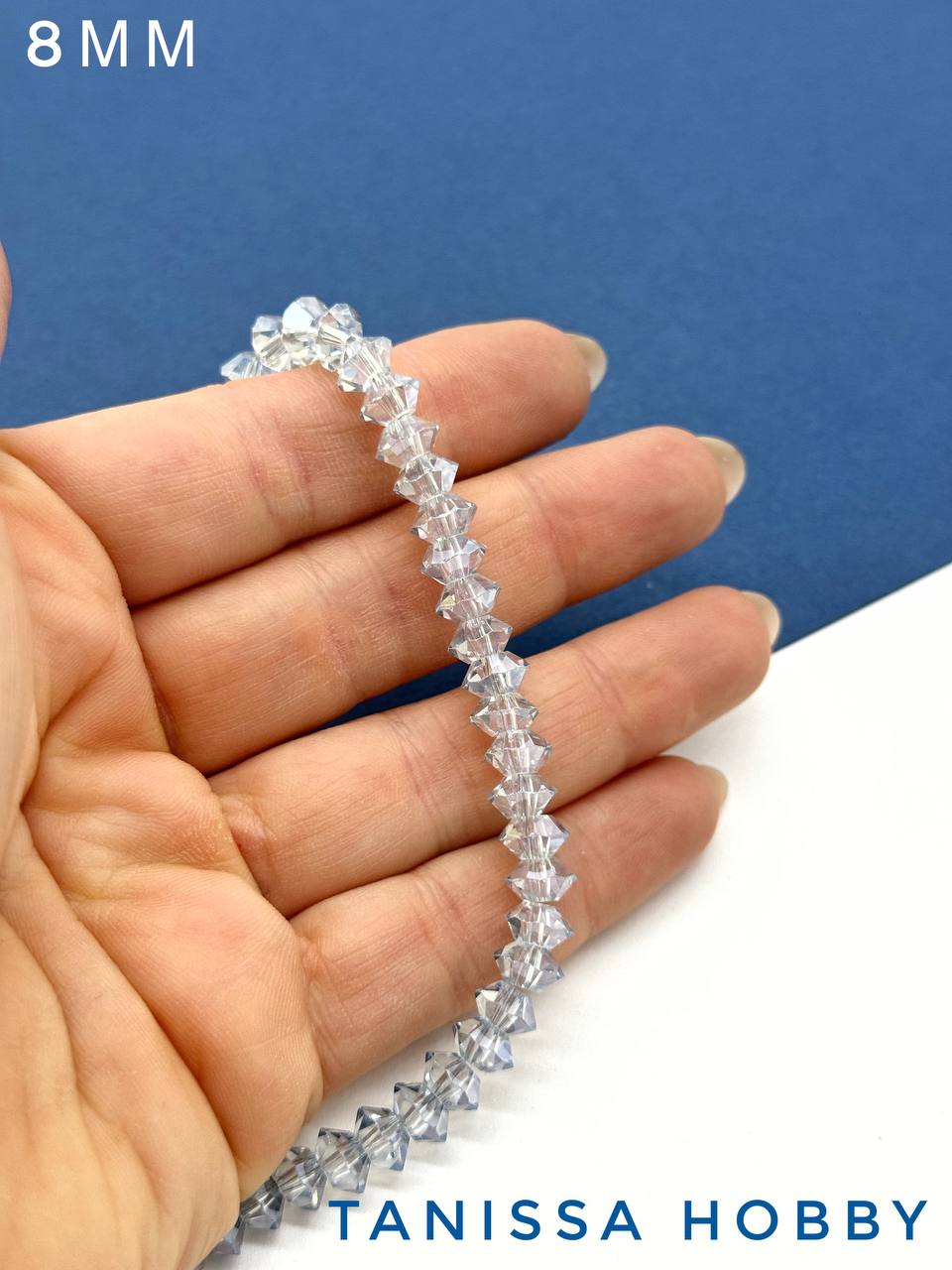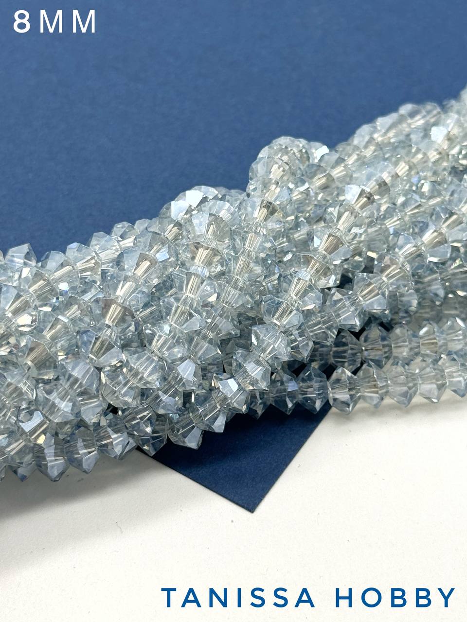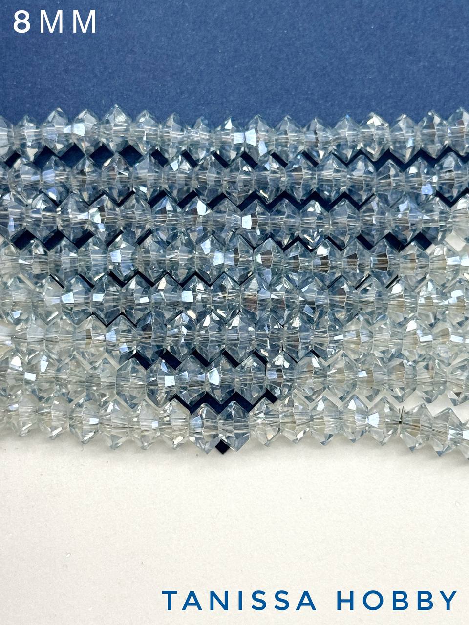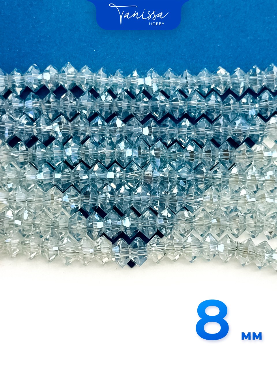 Хрусталь Биконус, плоский, серо-голубой, 8мм, нить, Х359