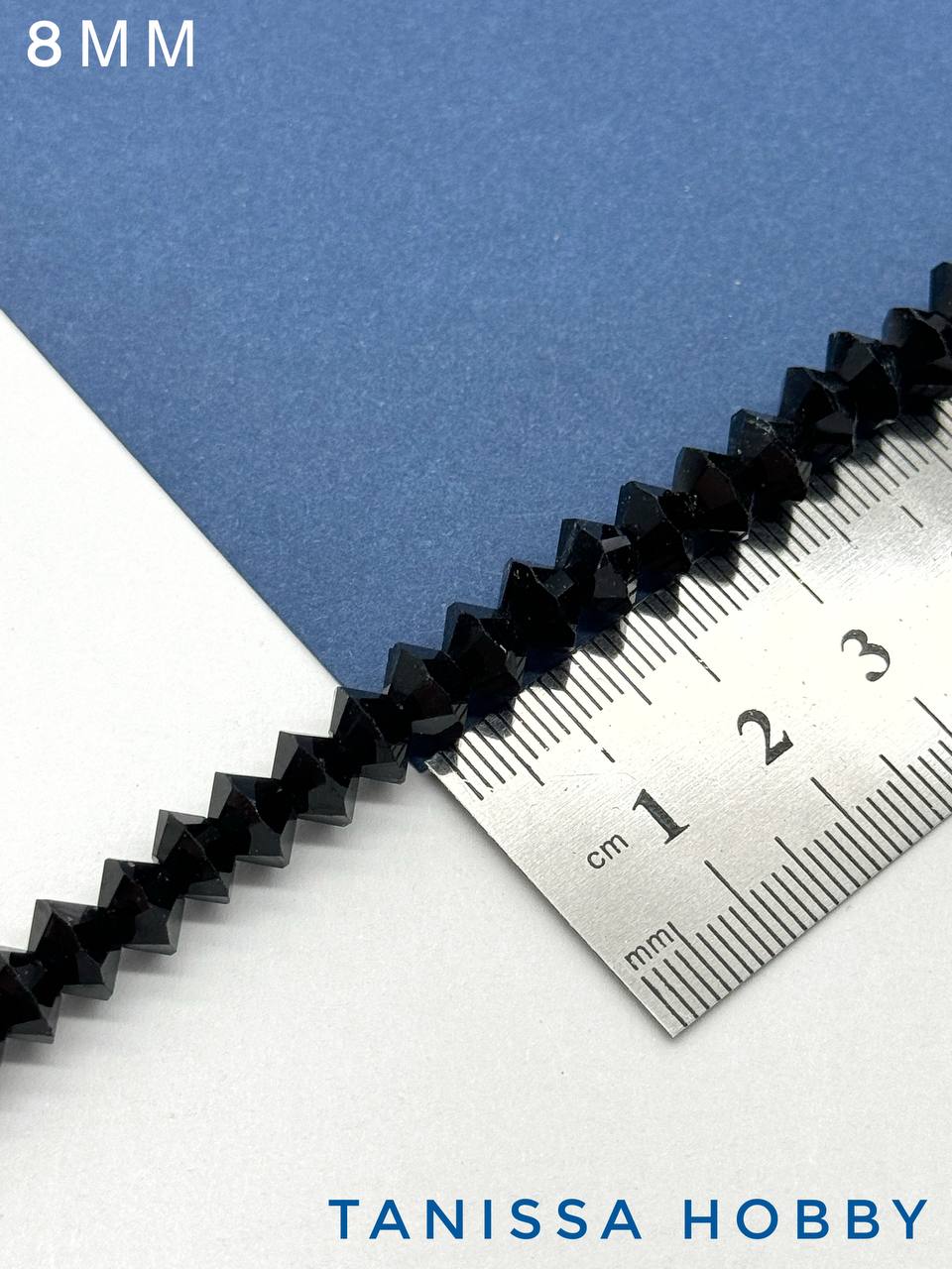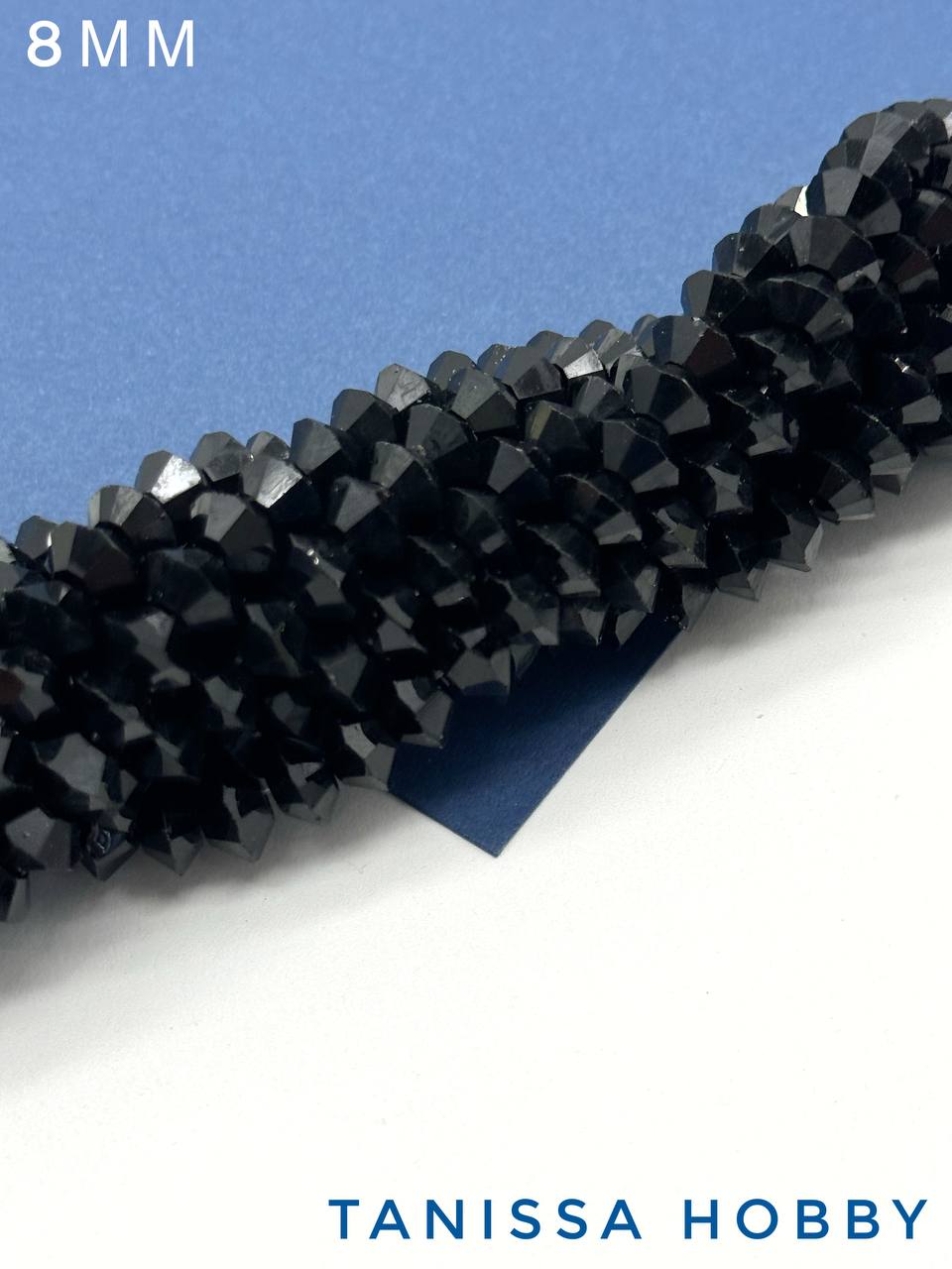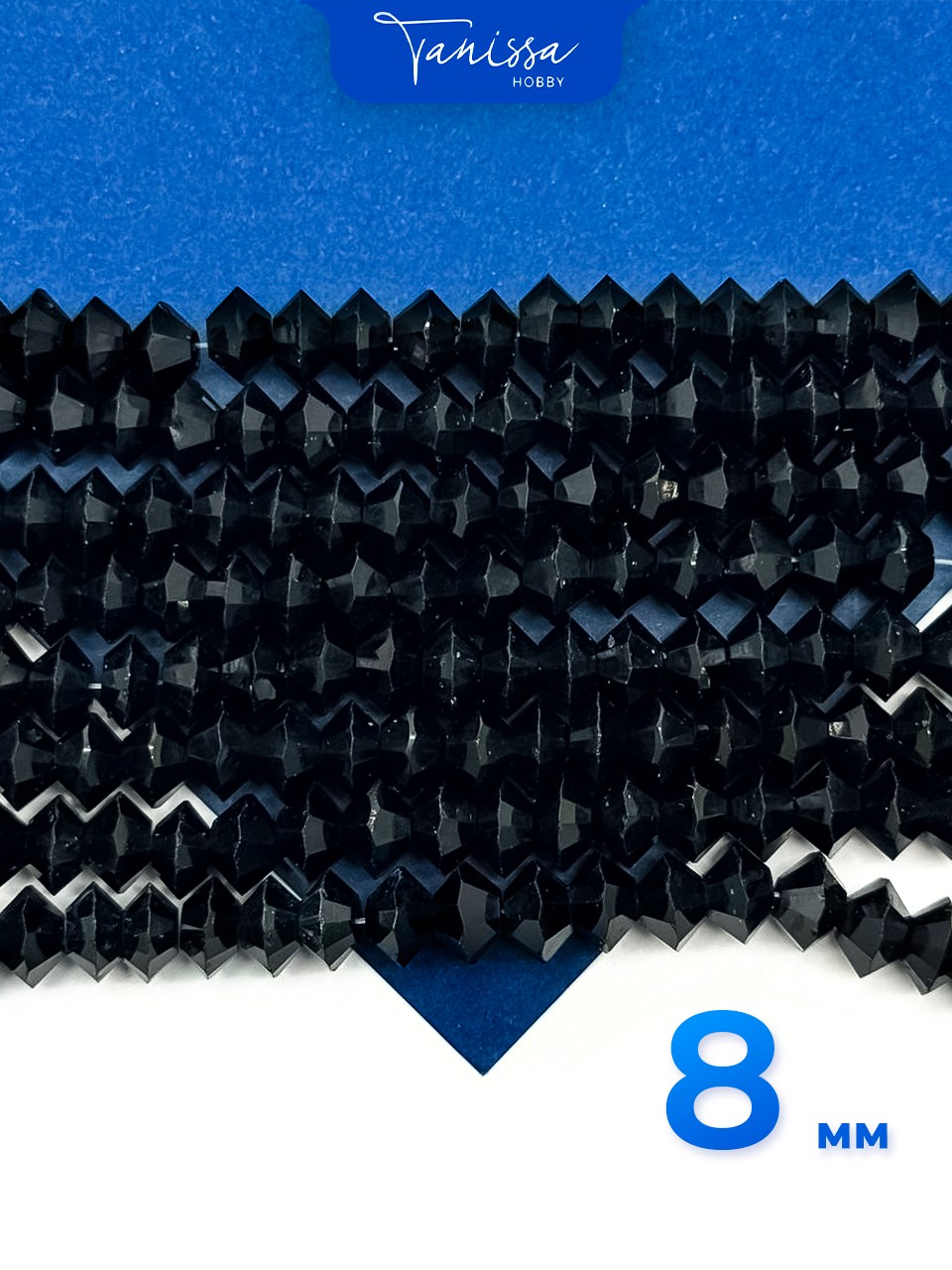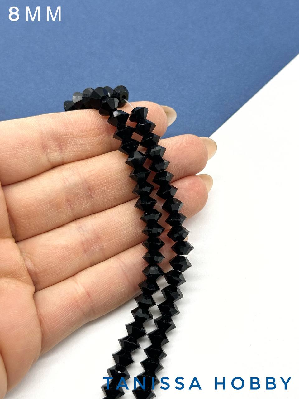 Хрусталь Биконус, плоский, черный, 8мм, нить, Х360