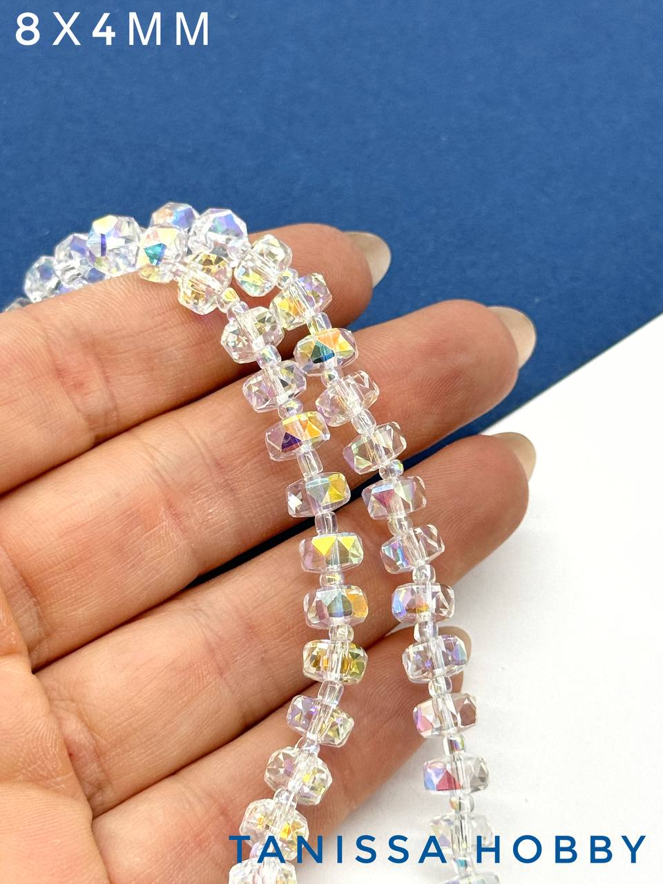 Хрусталь Рондели, шайба, прозрачный 2АВ, 8х4мм, 38 штук, 1/2 нити, Х391