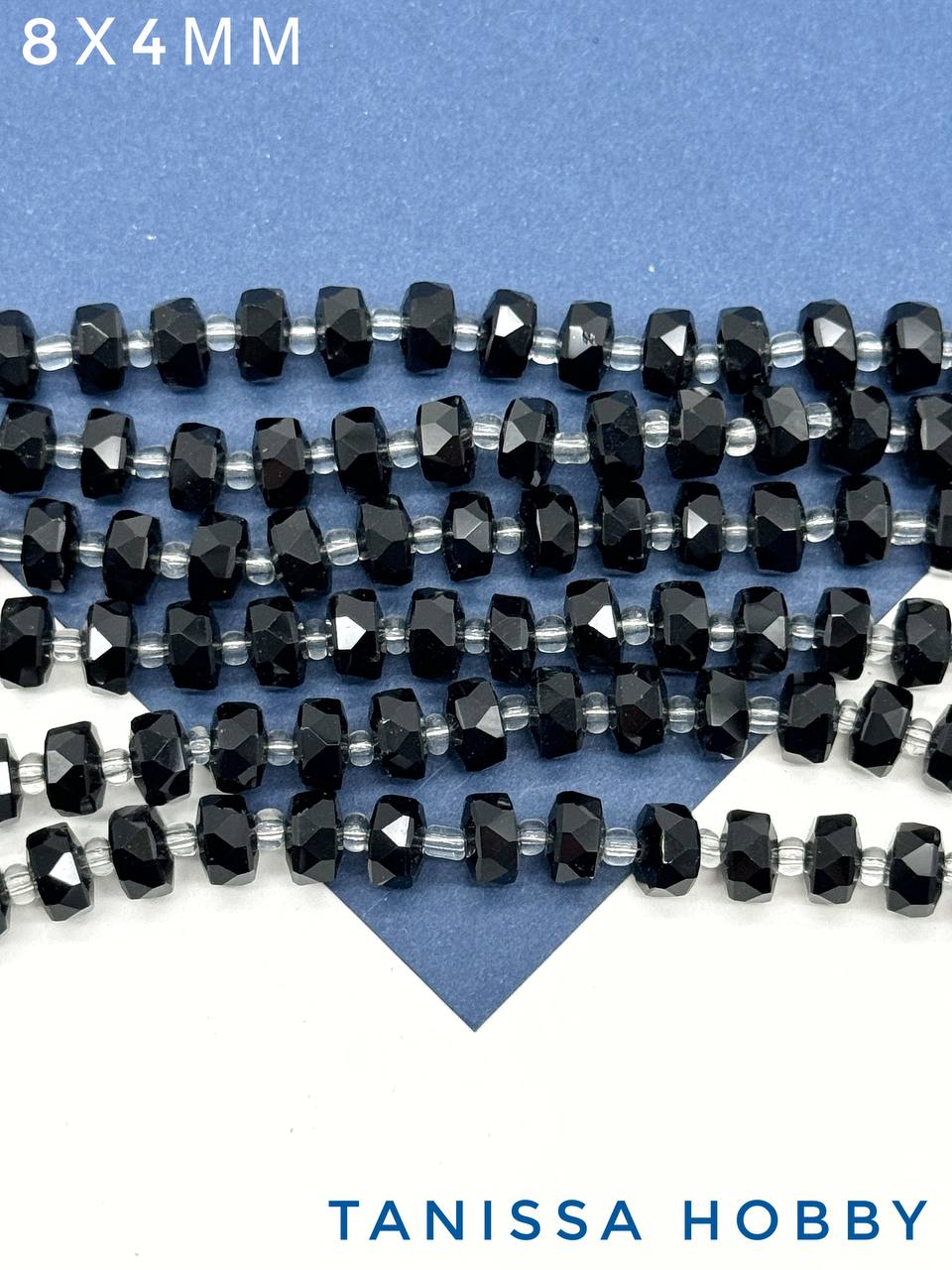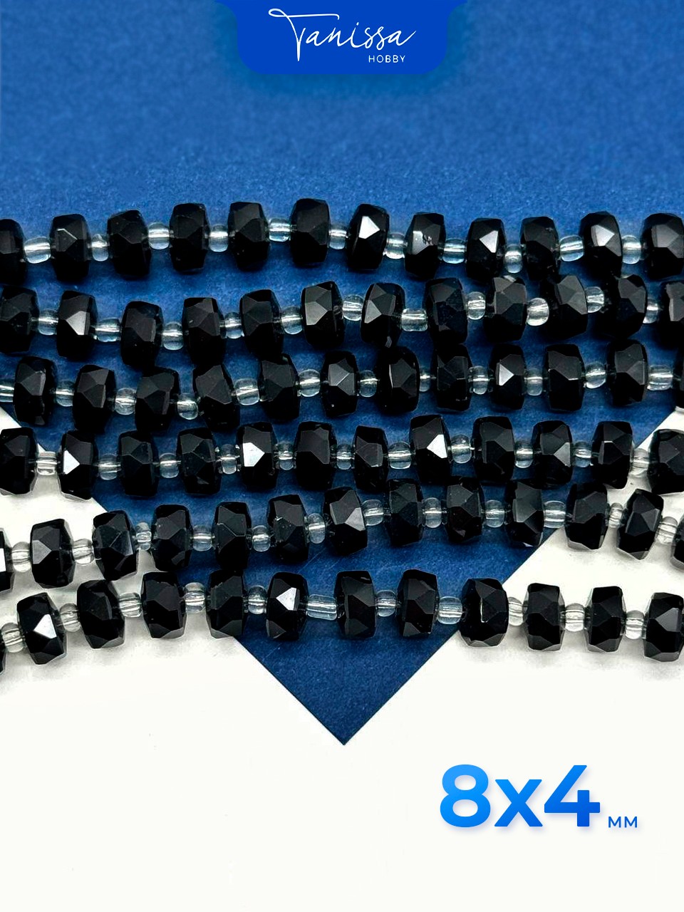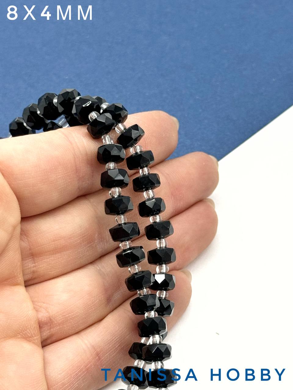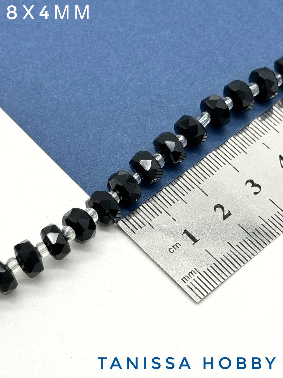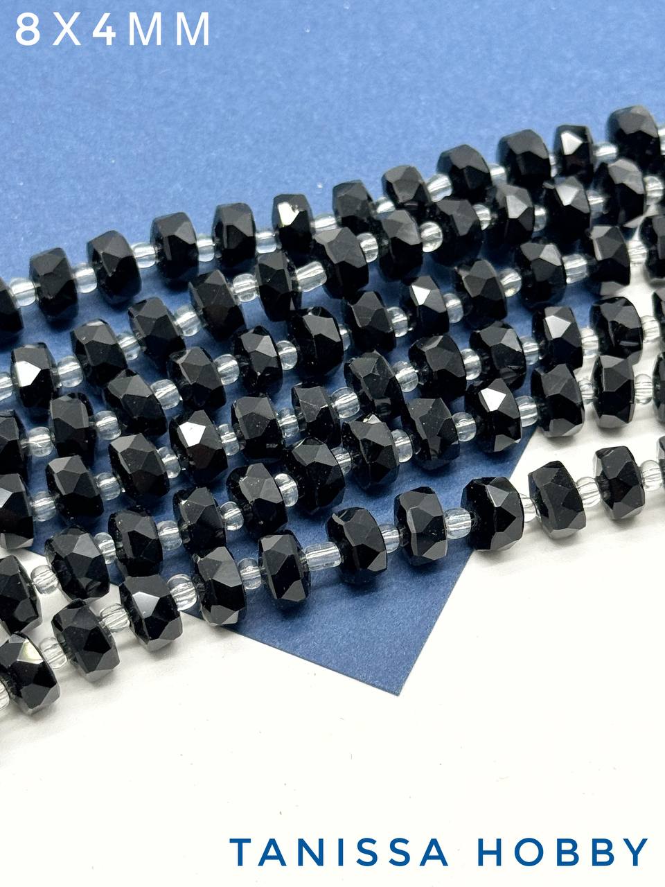 Хрусталь Рондели, шайба, черный, 8х4мм, 38 штук, 1/2 нити, Х394