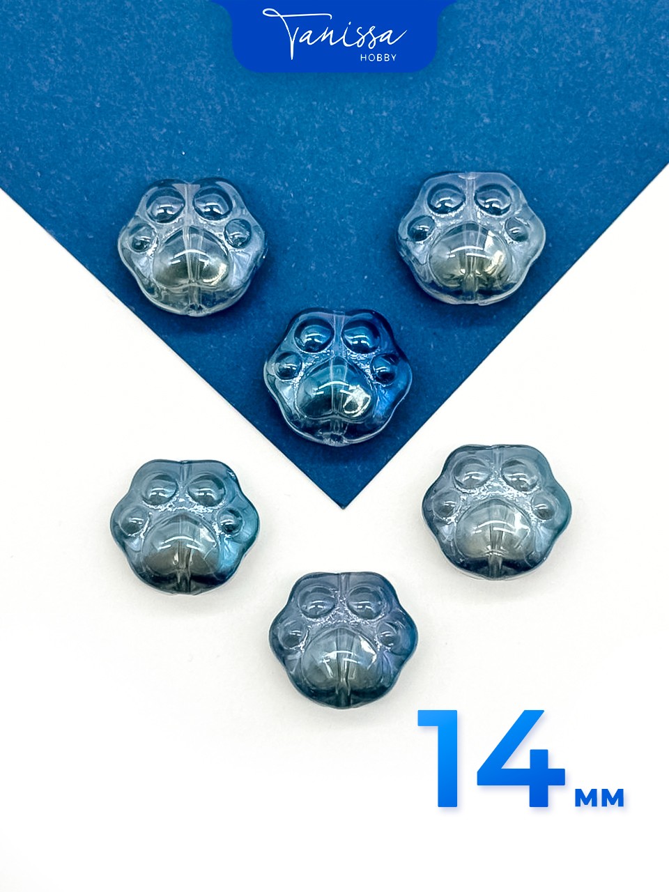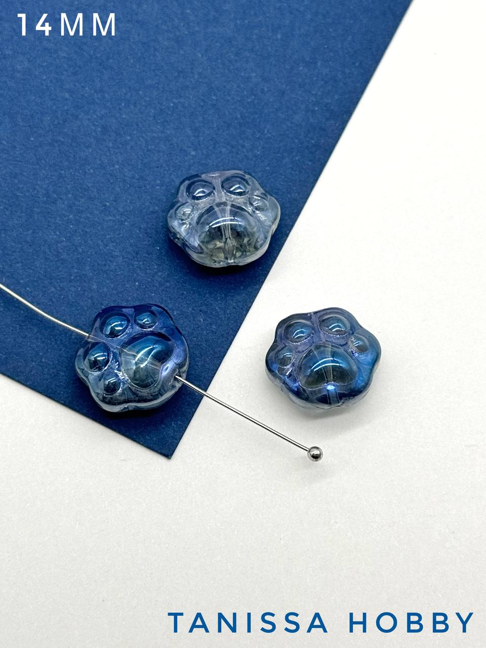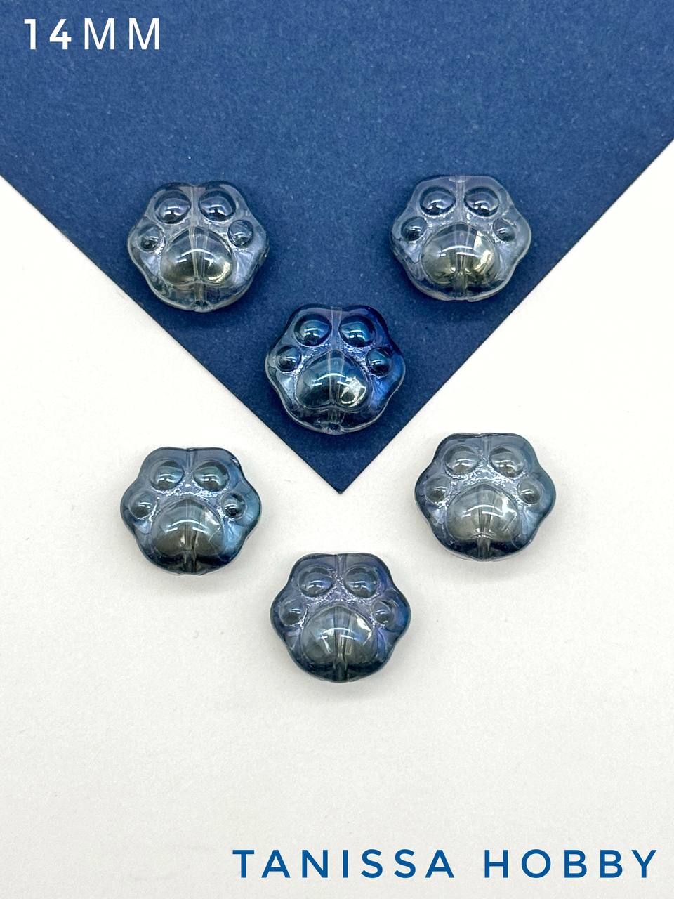 Хрусталь бусина Лапка кота, собаки, синий, 14мм, штука, Х401