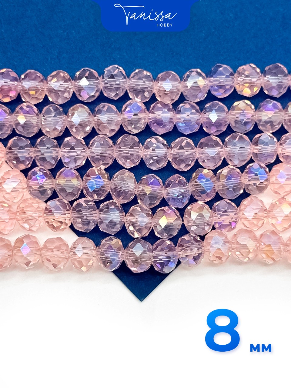 Хрусталь Рондели 8мм, розовый АВ, нить. Х412