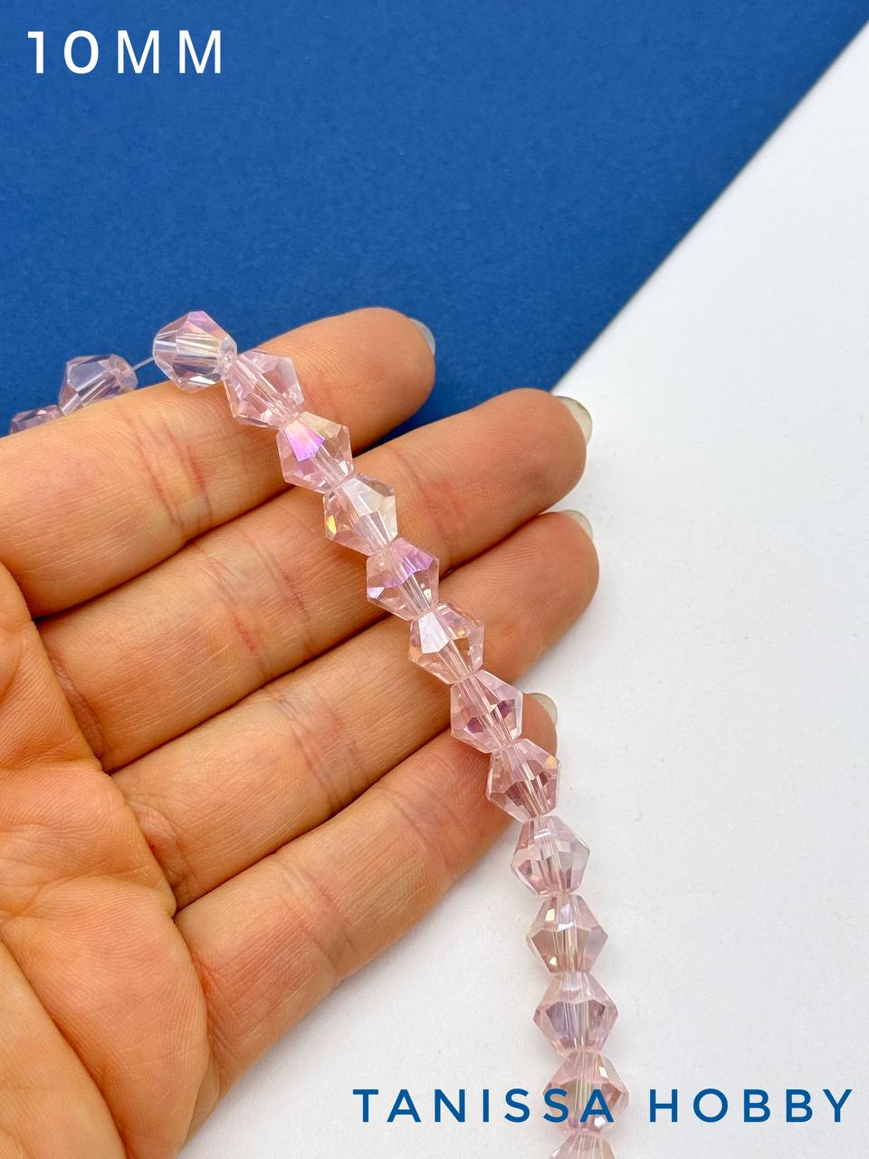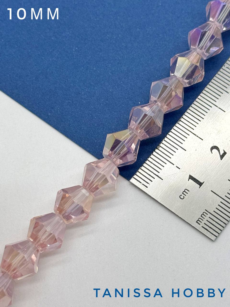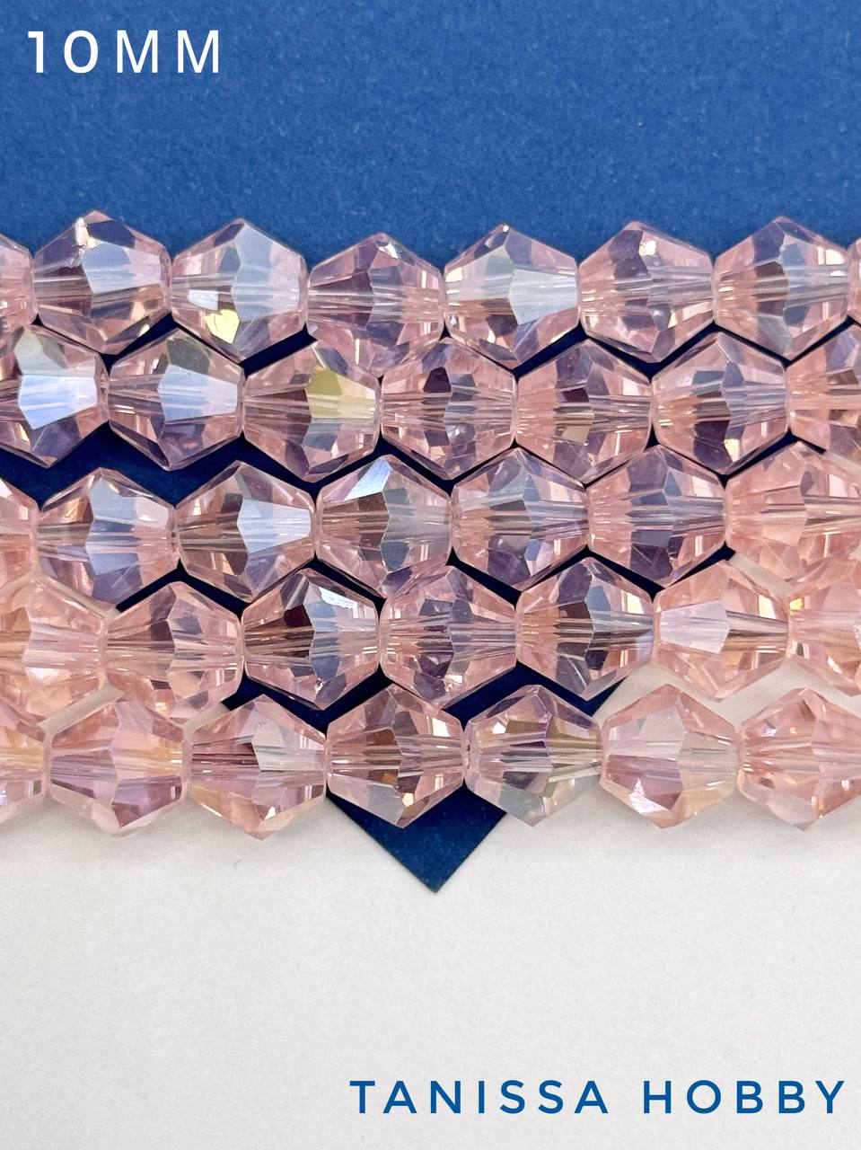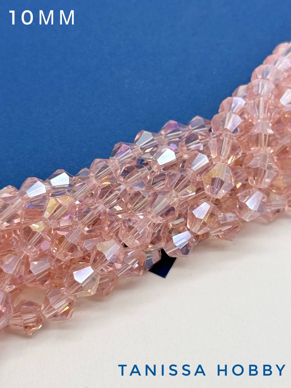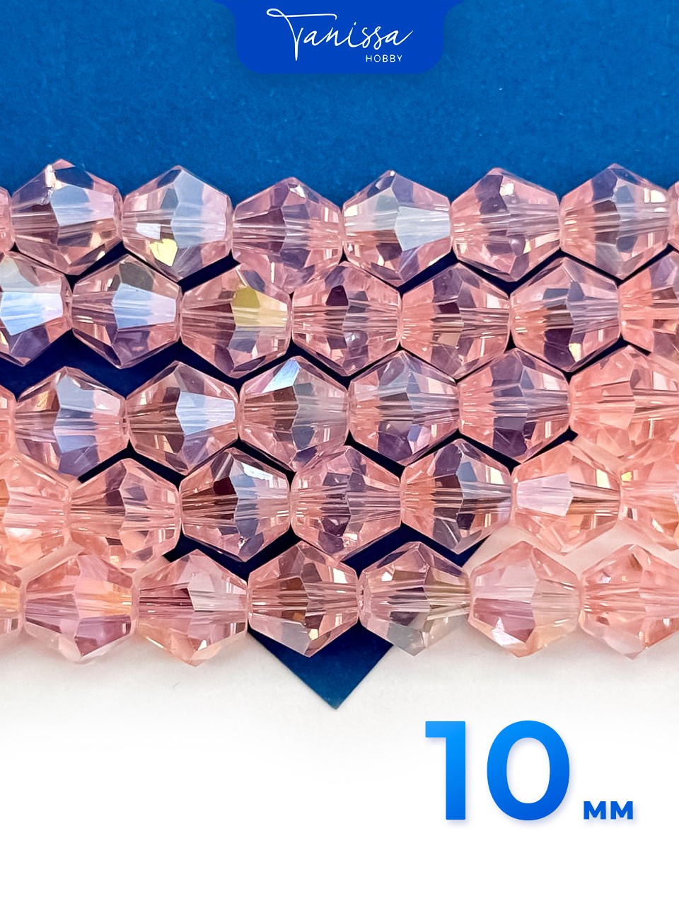Хрусталь Биконусы 10мм, розовый АВ, нить, Х416