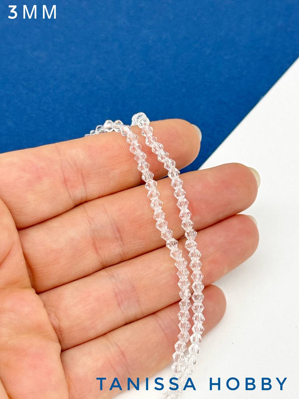 Хрусталь Биконусы 3мм, прозрачный, нить, Х463