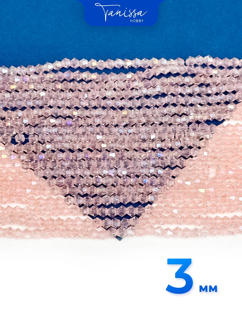Хрусталь Биконусы 3мм, розовый АВ, нить, Х468
