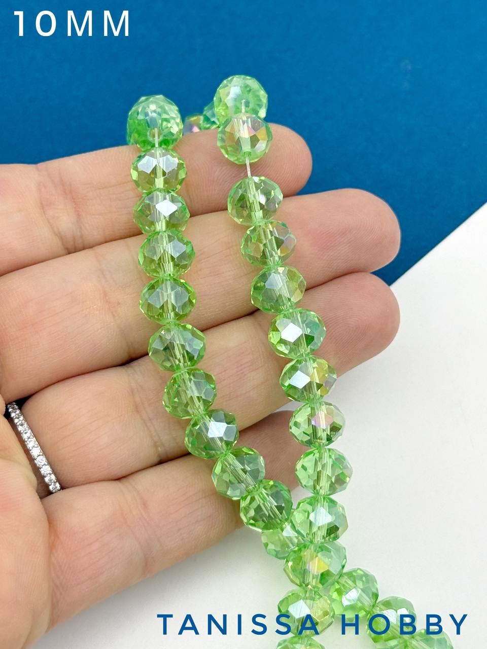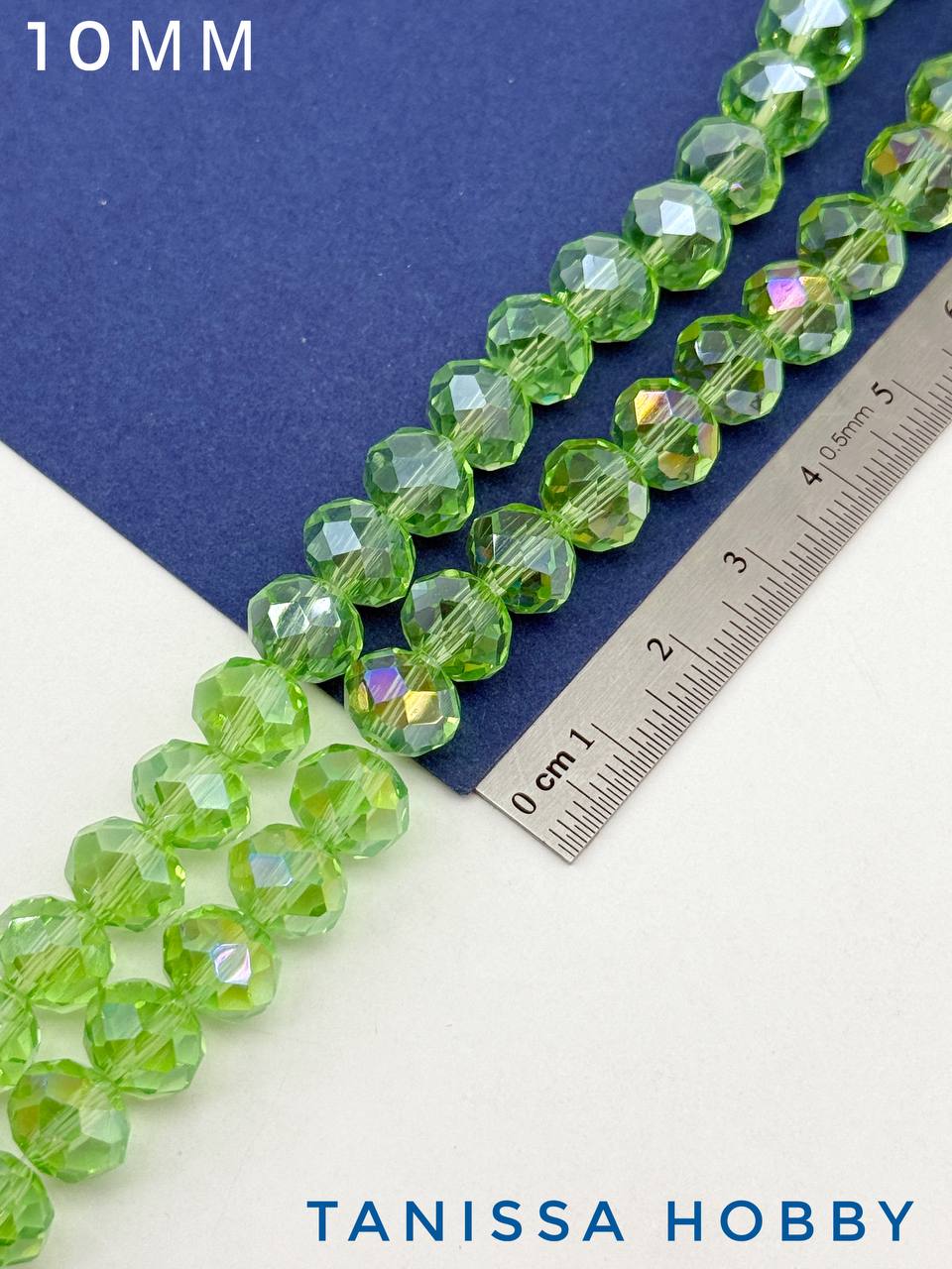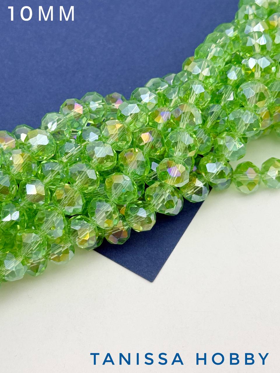 Хрусталь Рондели 10мм, светло зеленый АВ, 1/2 нити, Х049