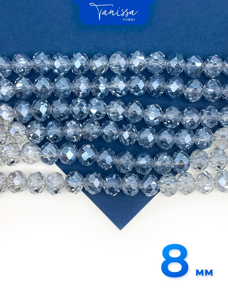 Хрусталь Рондели 8мм, серо-голубой АВ, нить, Х477