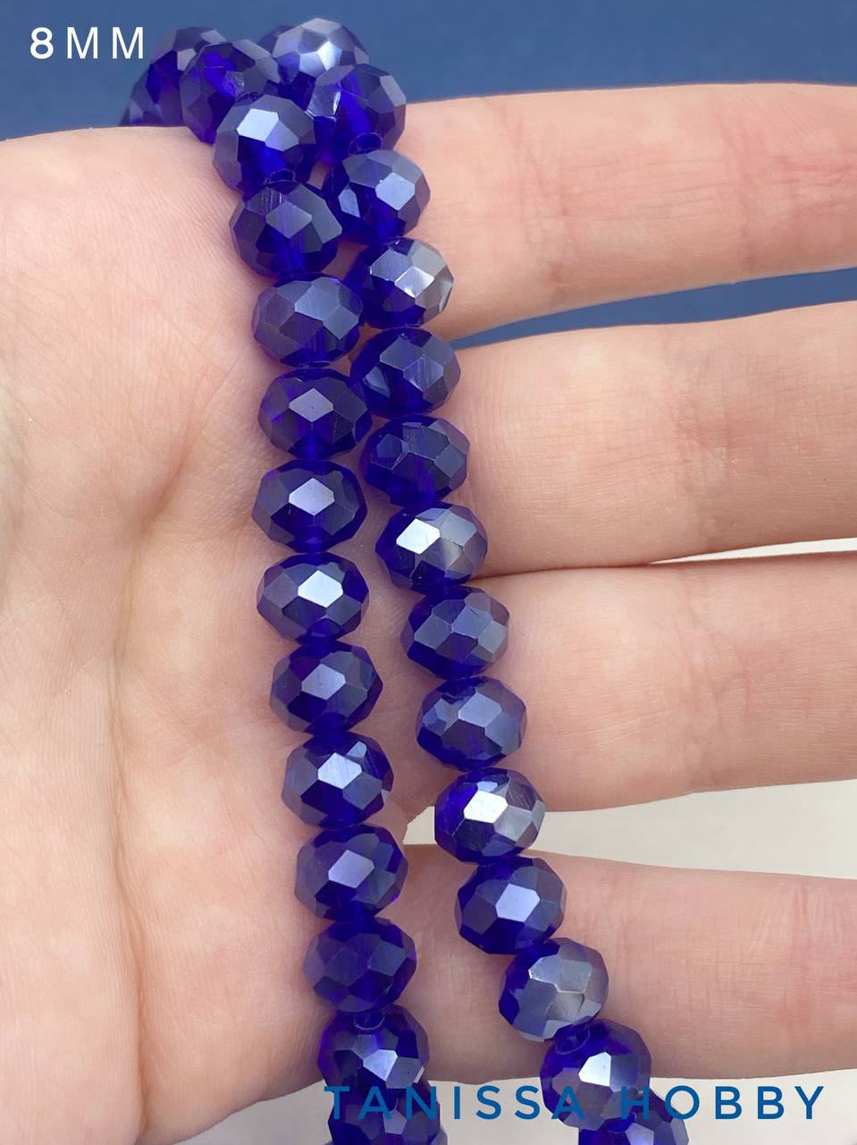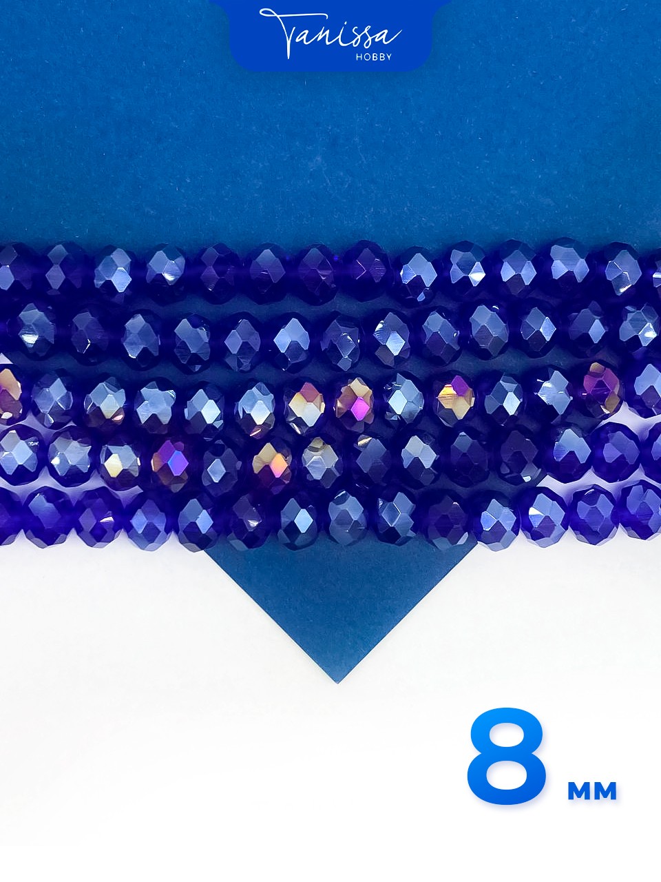 Хрусталь Рондели 8мм, синий, нить, Х492