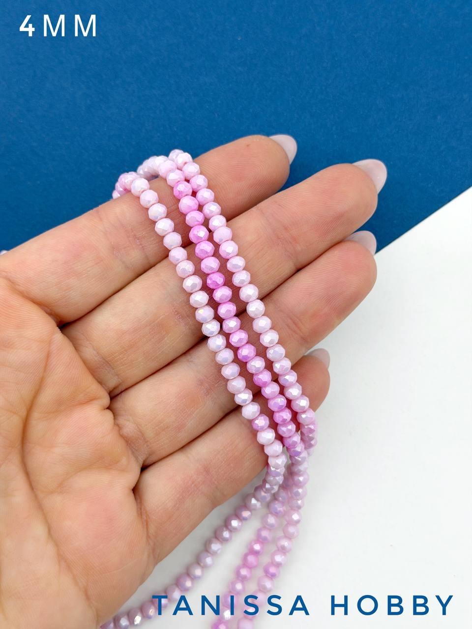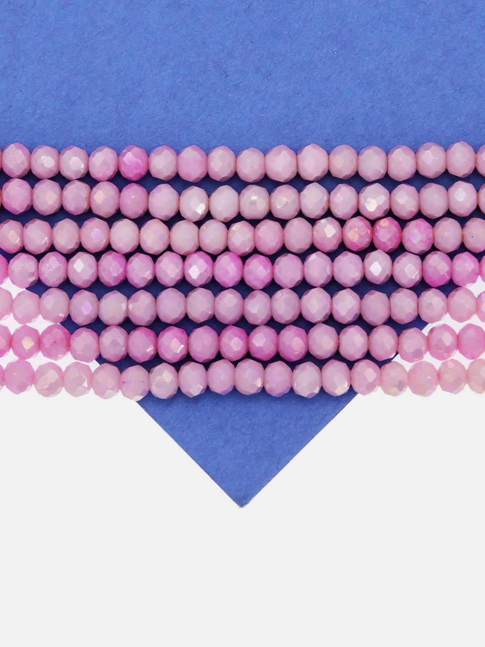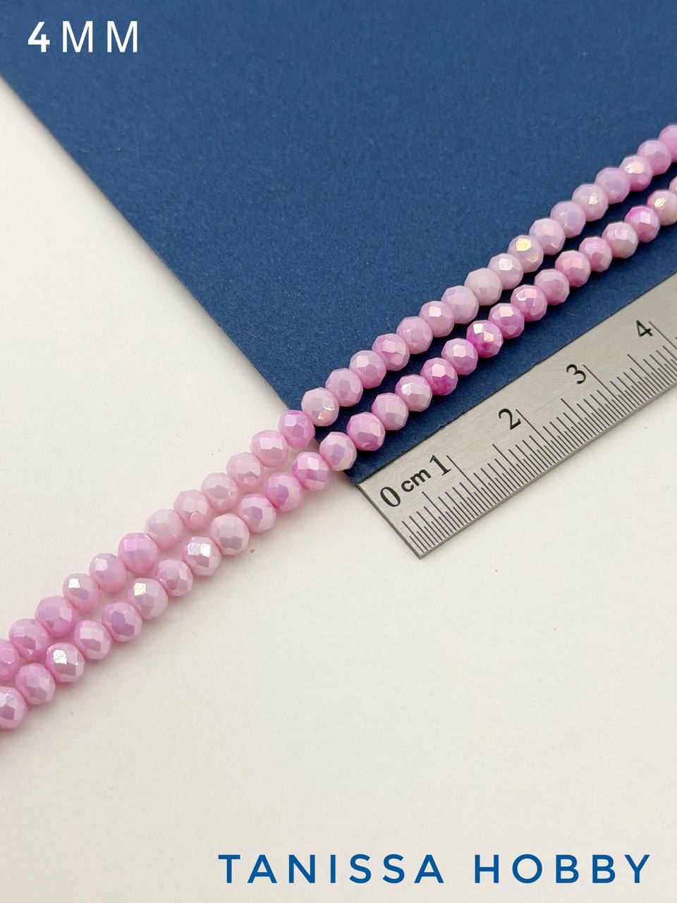 Хрусталь Рондели 4мм, розовый АВ шайн, нить, Х498
