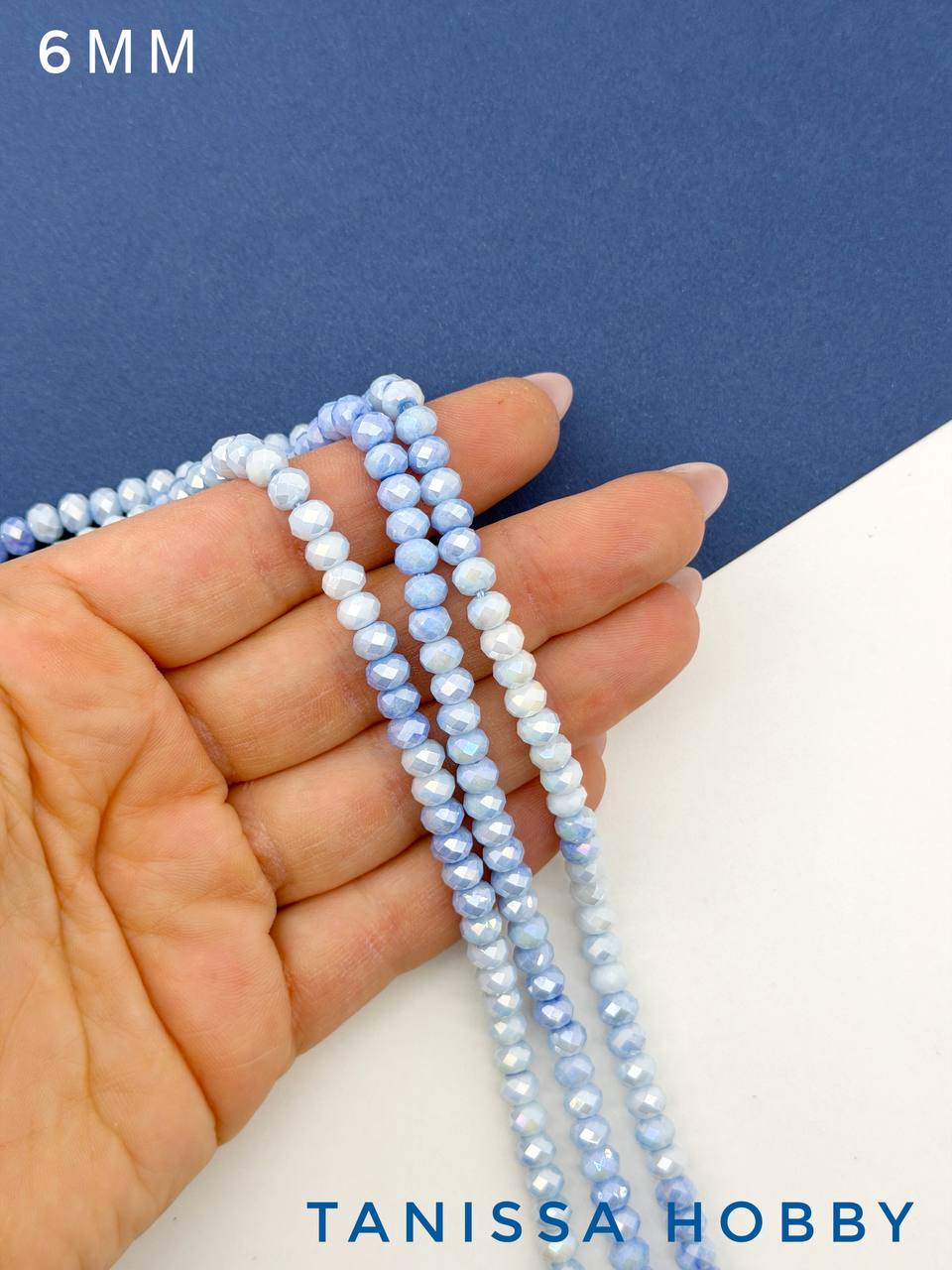 Хрусталь Рондели 6мм, синий градиент АВ шайн, нить, Х504