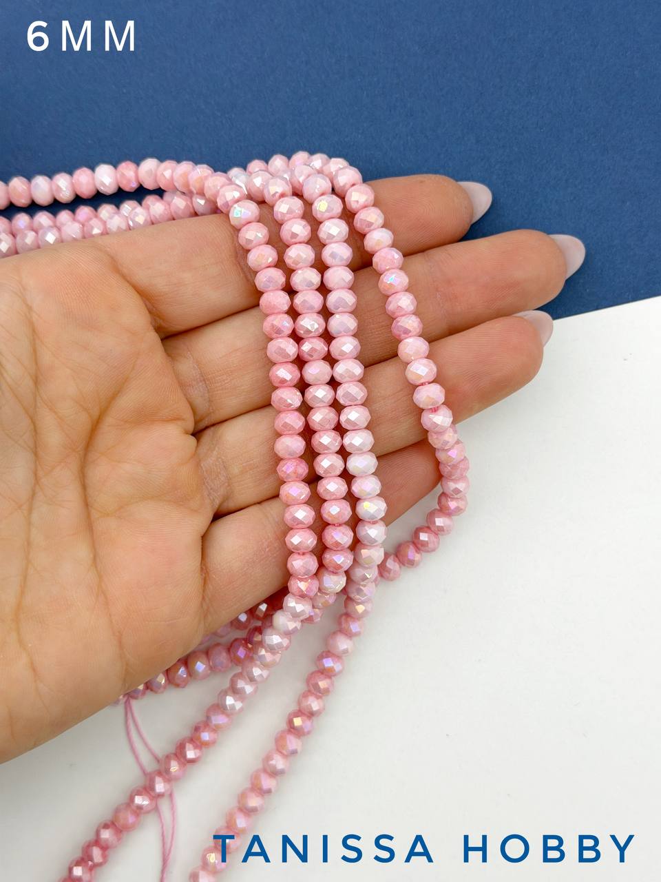 Хрусталь Рондели 6мм, розовый АВ шайн, нить, Х505