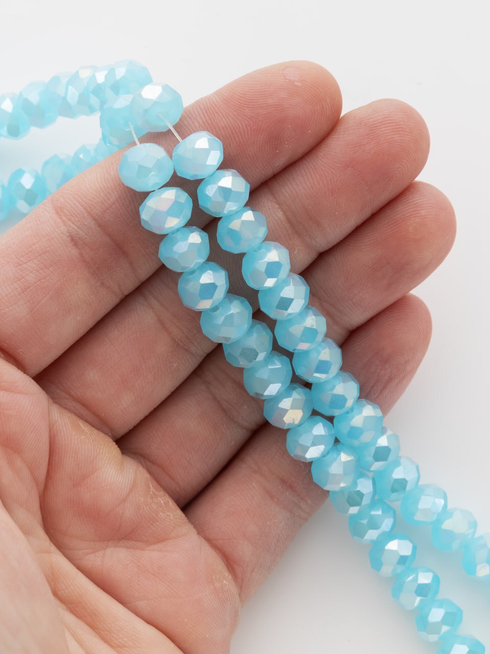 Хрусталь Рондели 8мм, лазурный голубой АВ шайн, нить, Х511