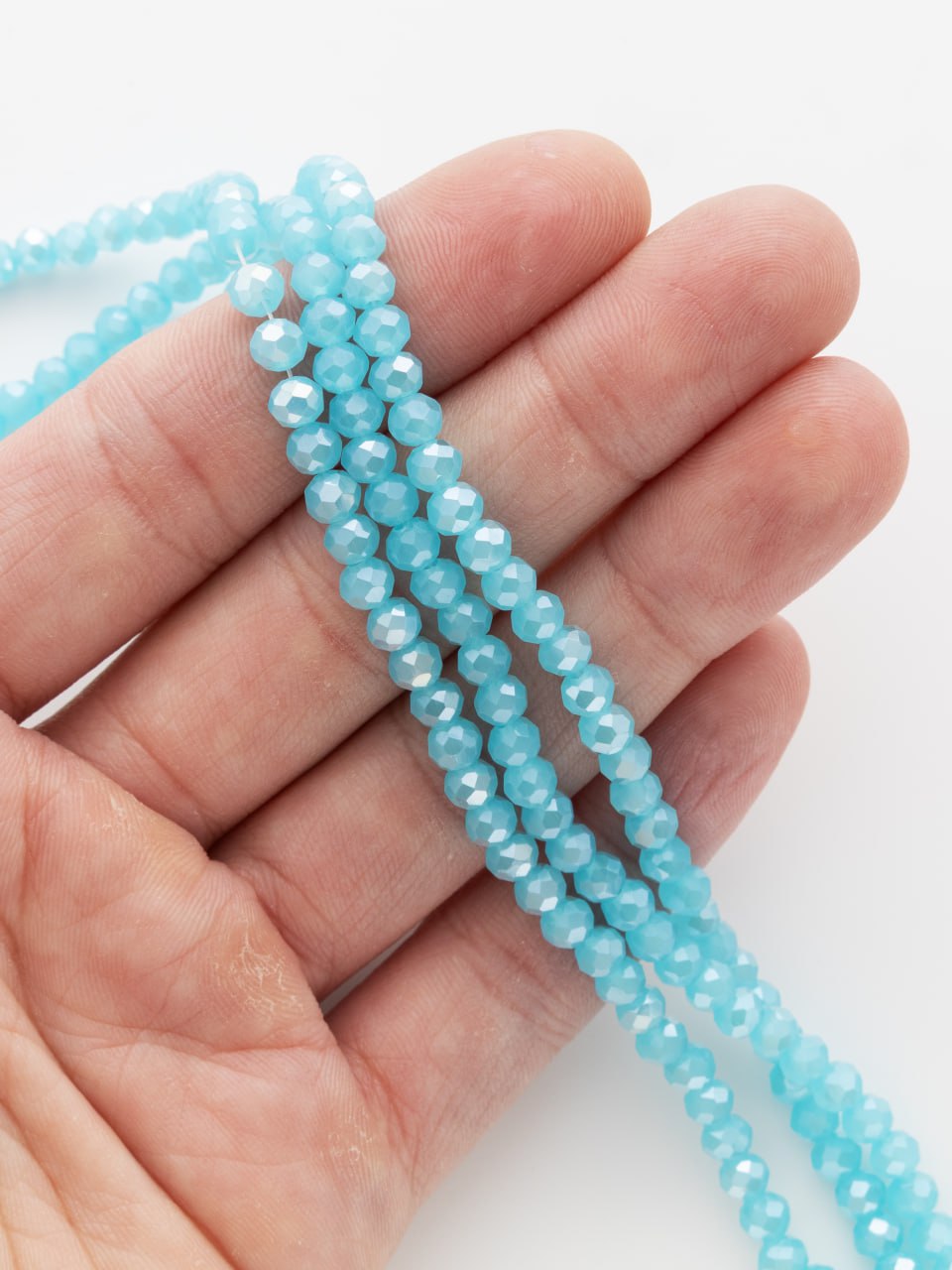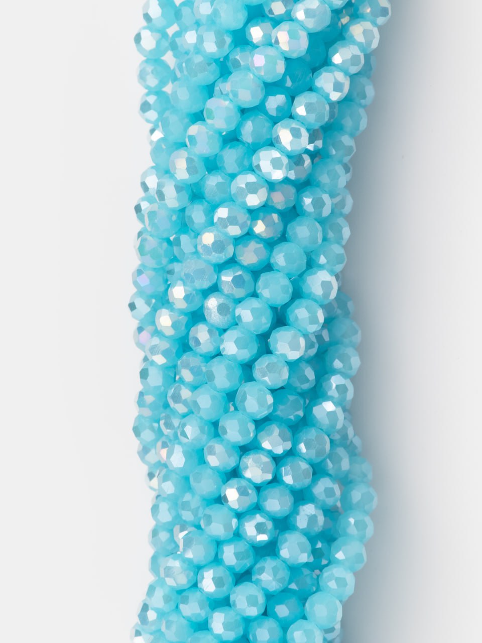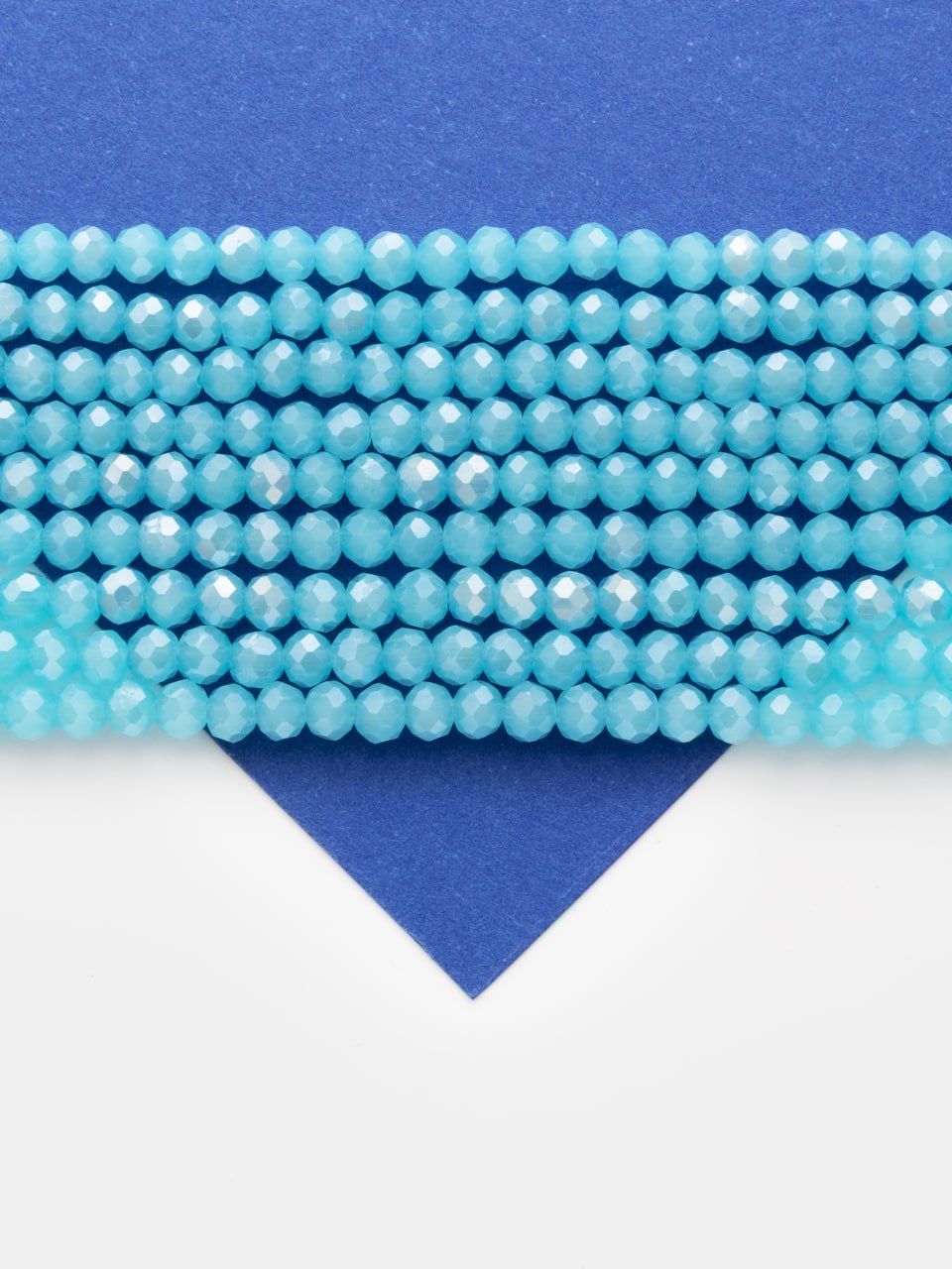 Хрусталь Рондели 4мм, лазурный голубой АВ шайн, нить, Х513