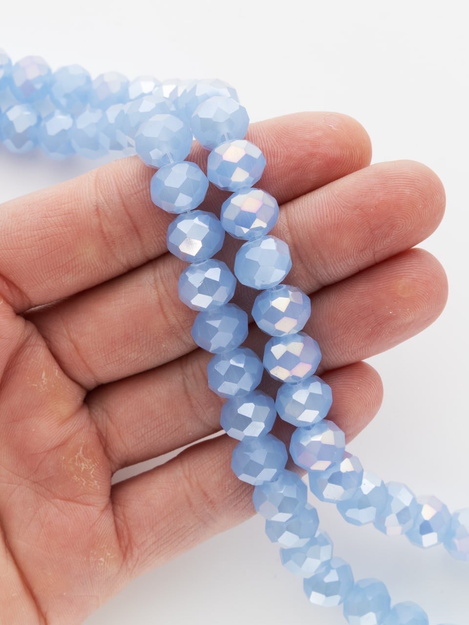 Хрусталь Рондели 10мм, светлый синий АВ шайн, 1/2 нити, Х515