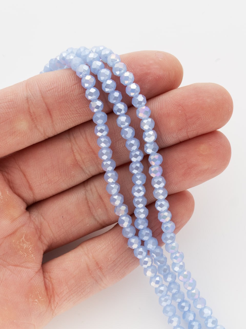 Хрусталь Рондели 4мм, светлый синий АВ шайн, нить, Х518