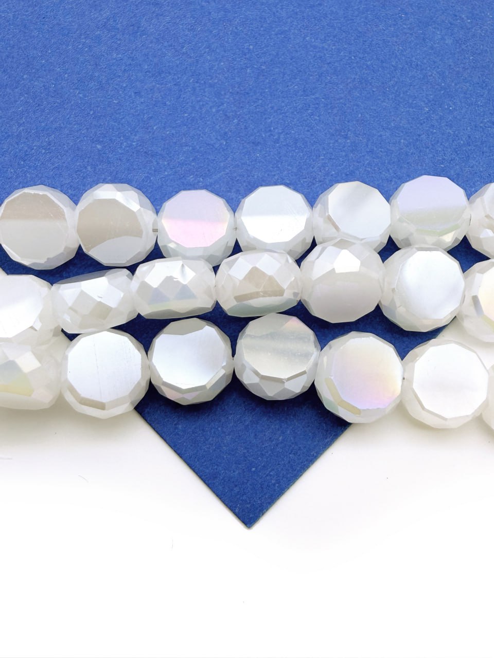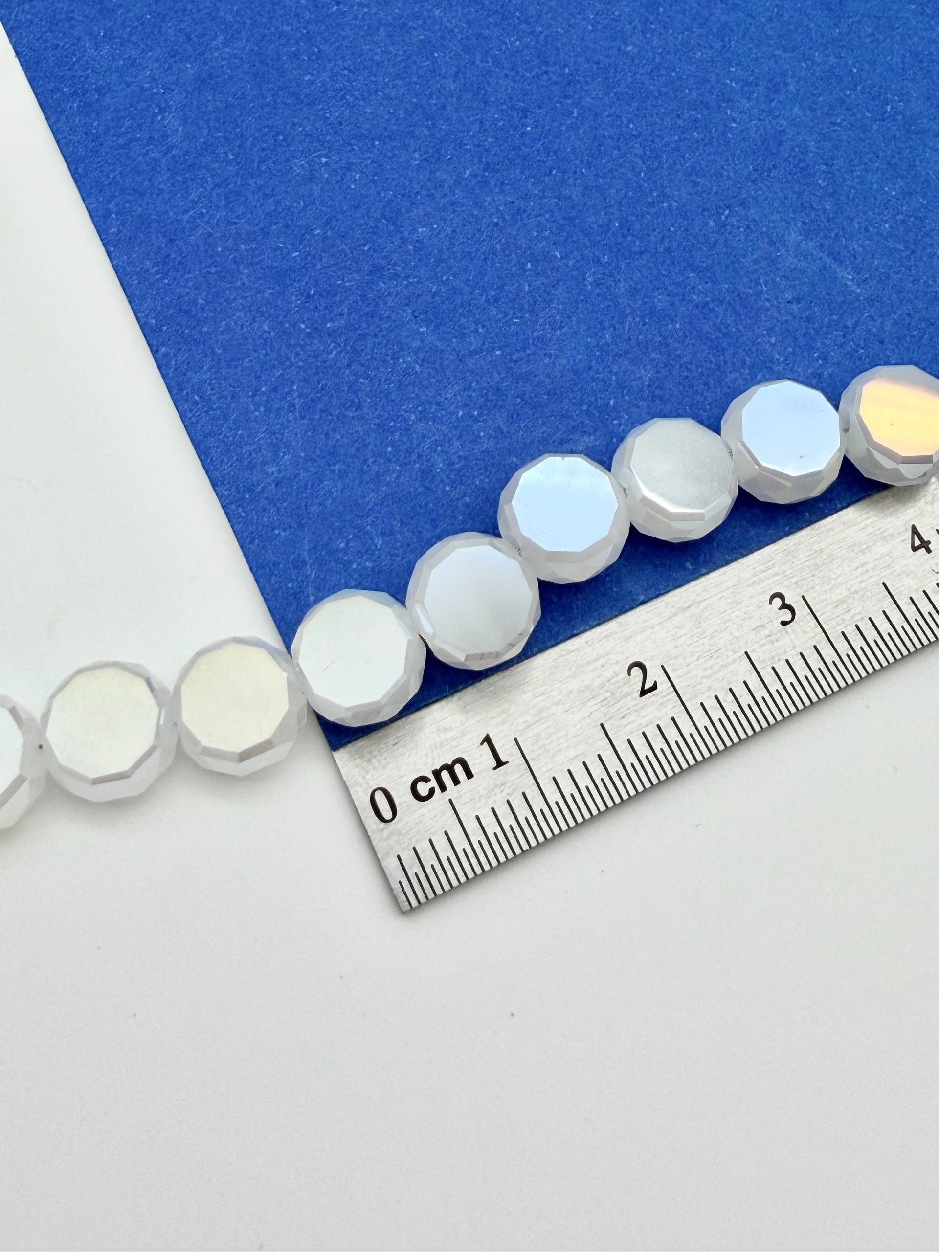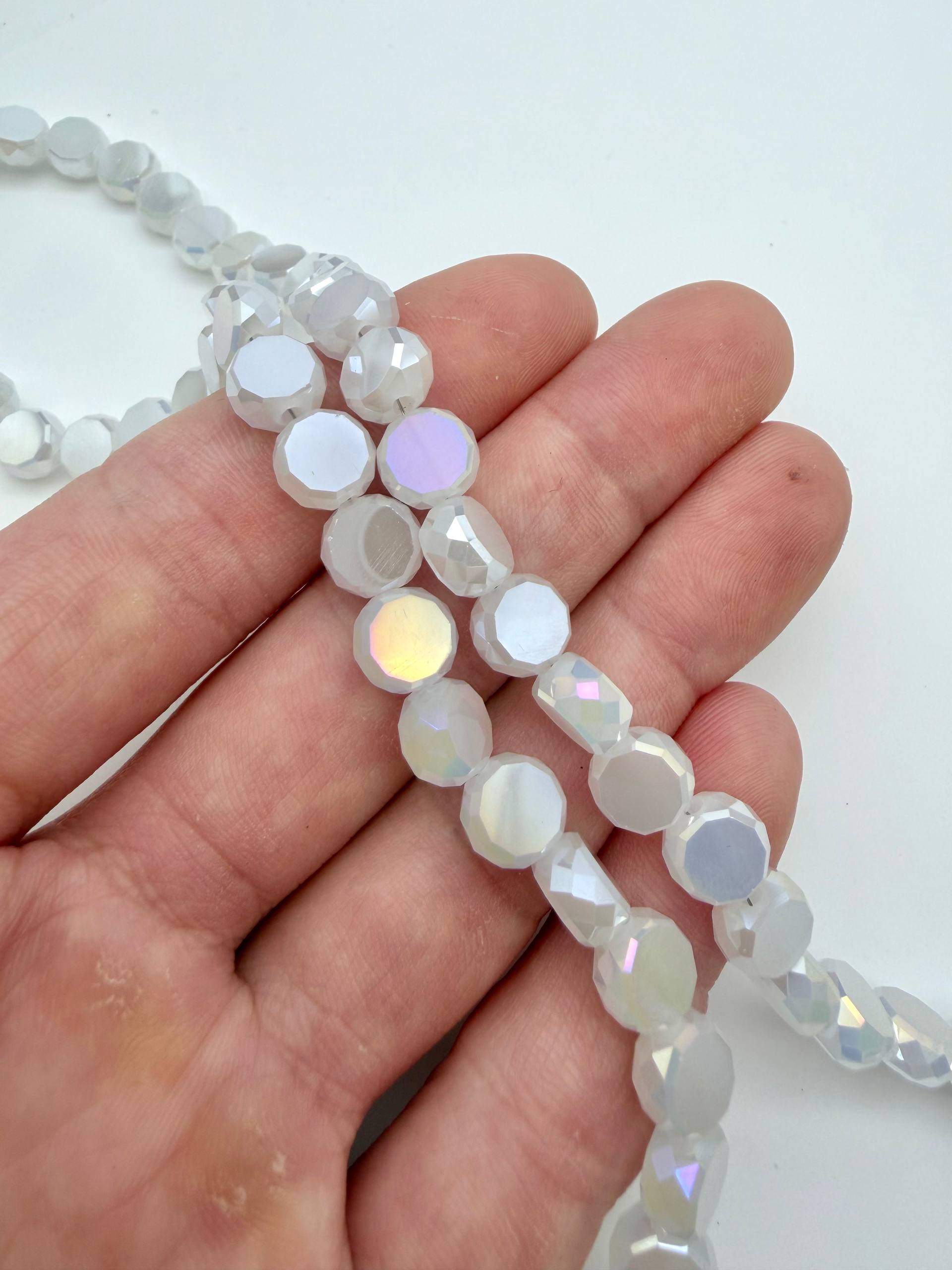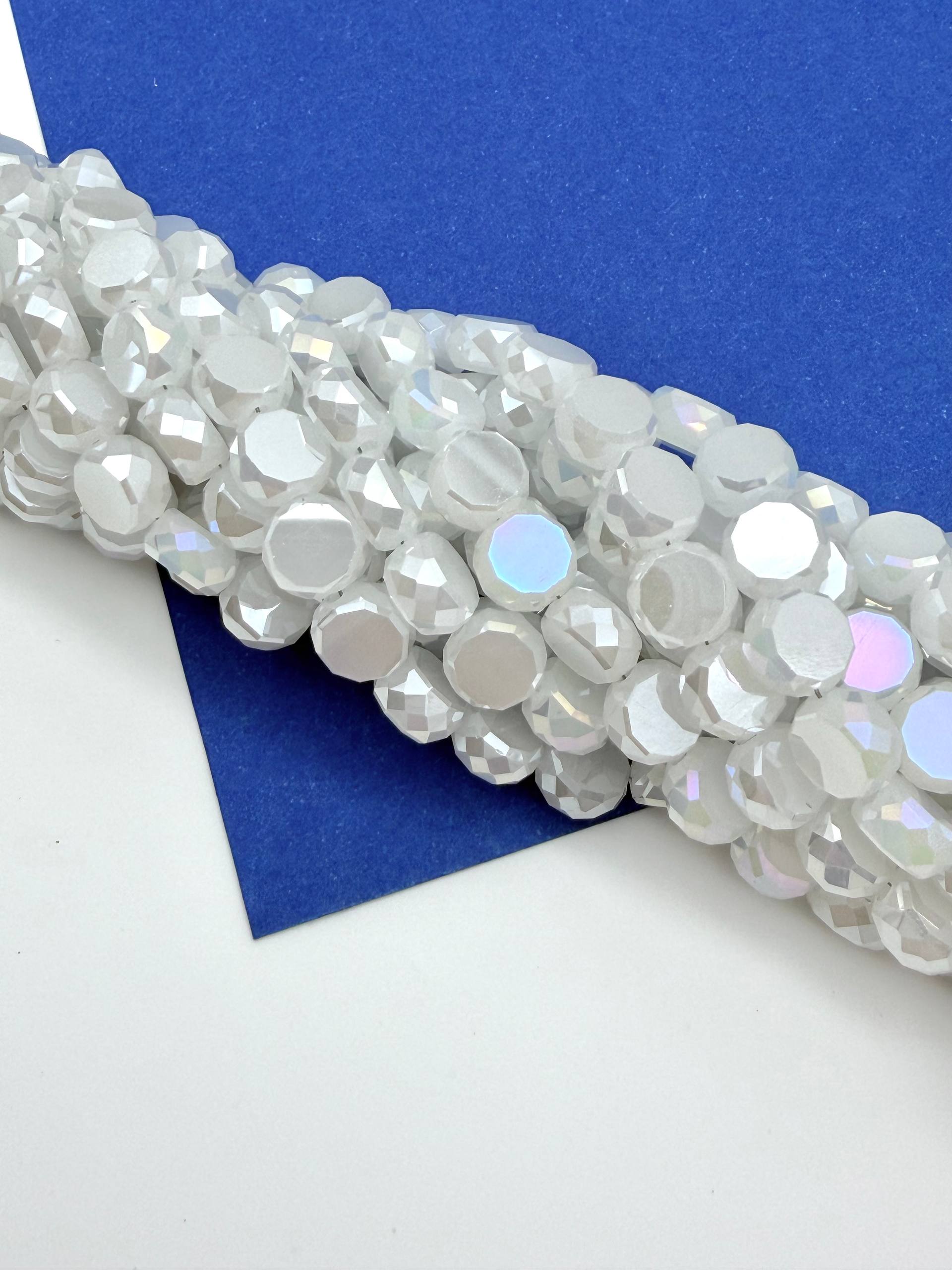 Хрусталь диск, круглый плоский, белый опал АВ, 8мм, нить, Х521