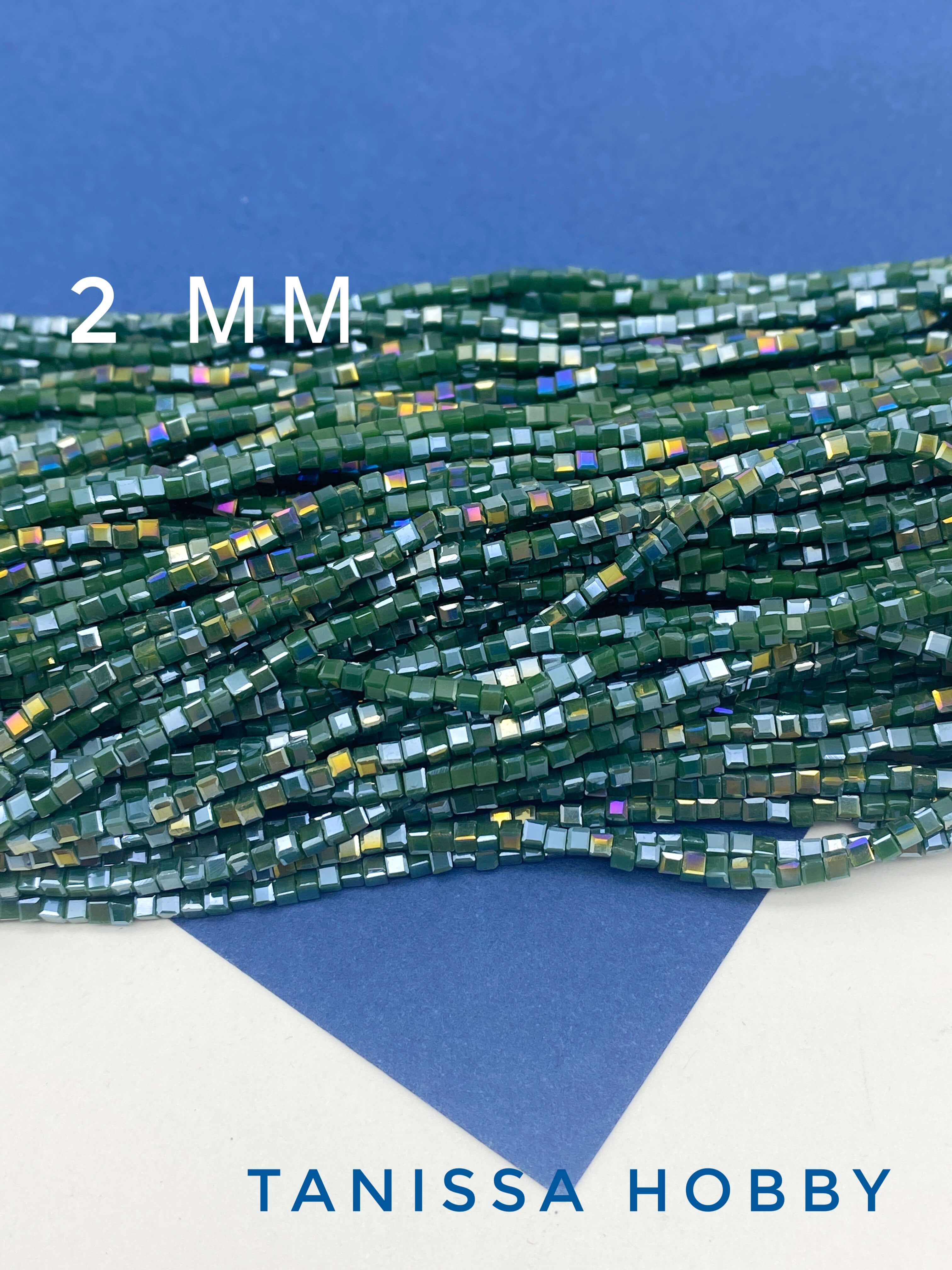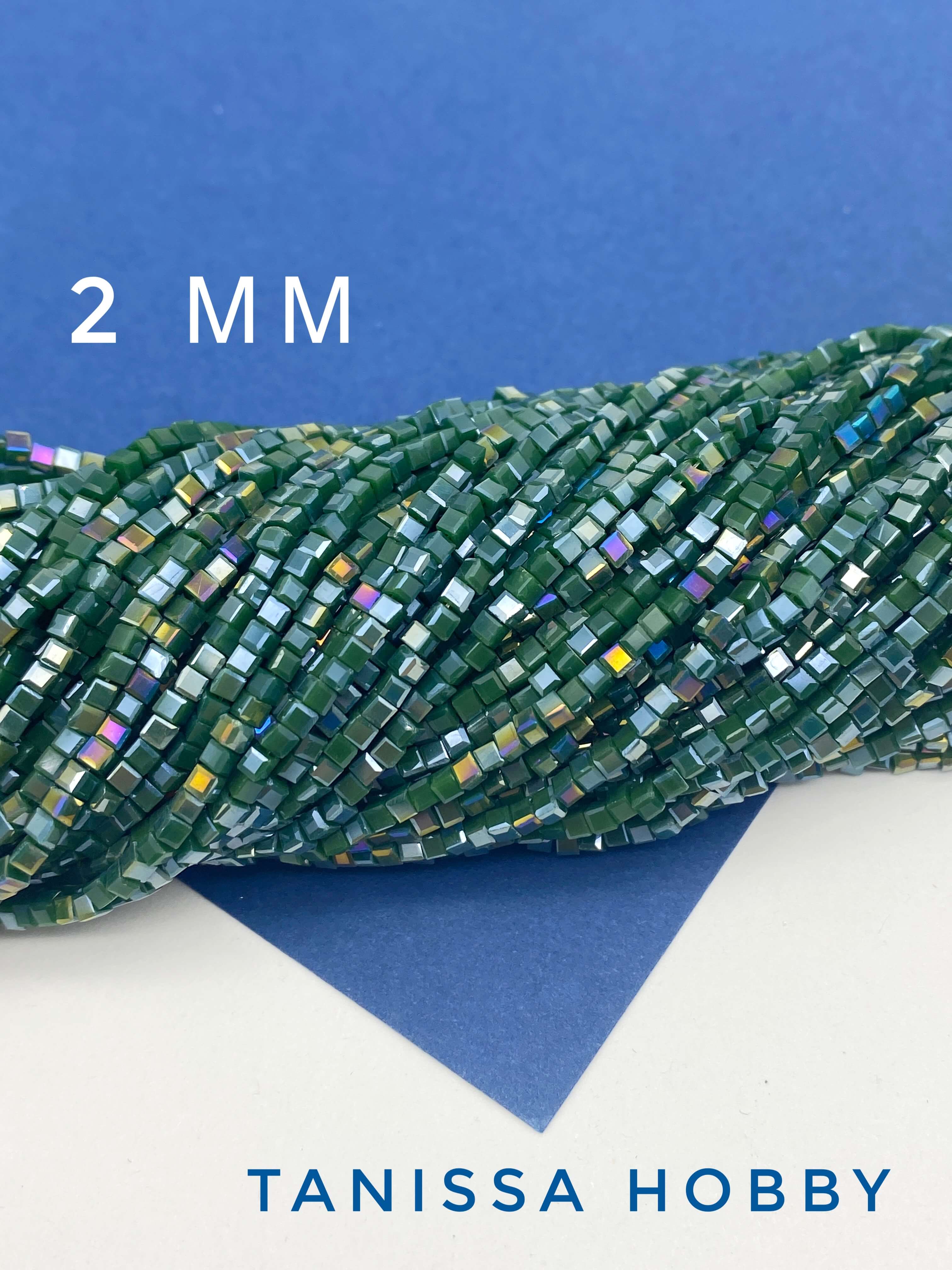 Хрусталь бусины квадратные 2мм, изумрудный АВ, нить, Х200