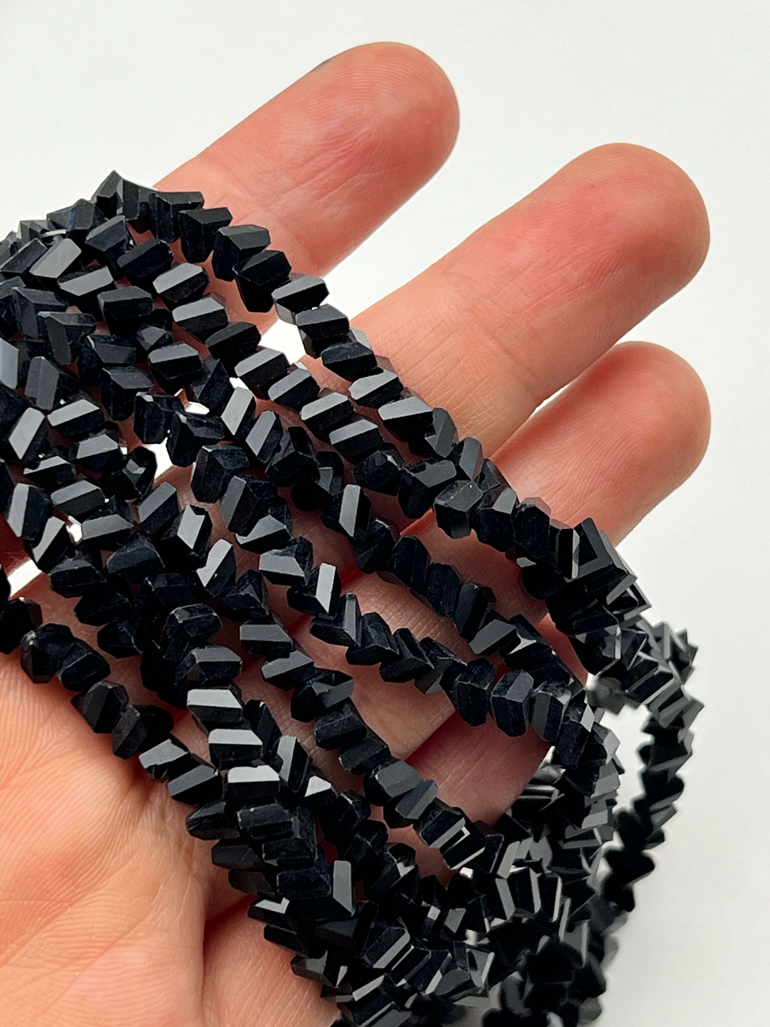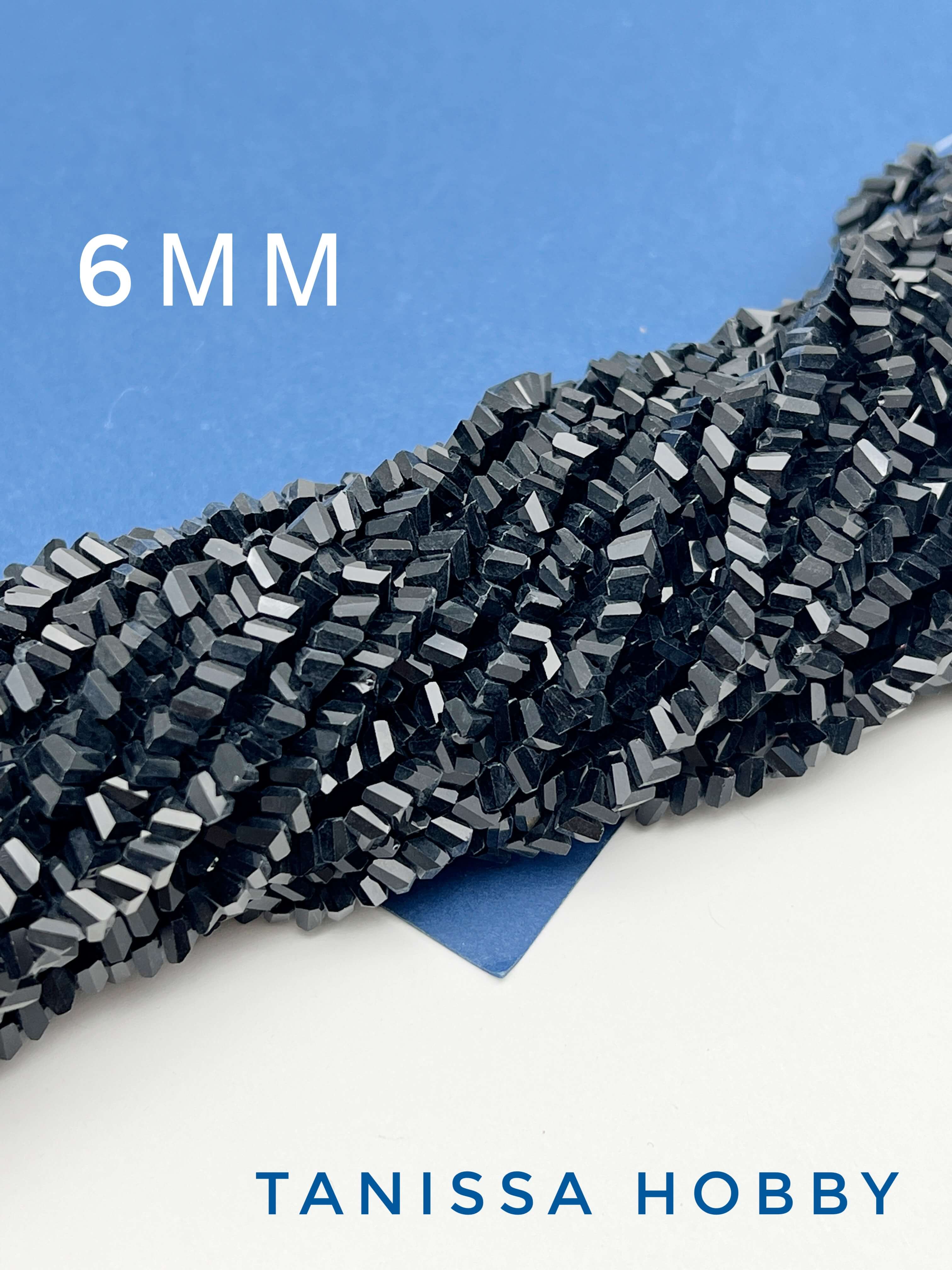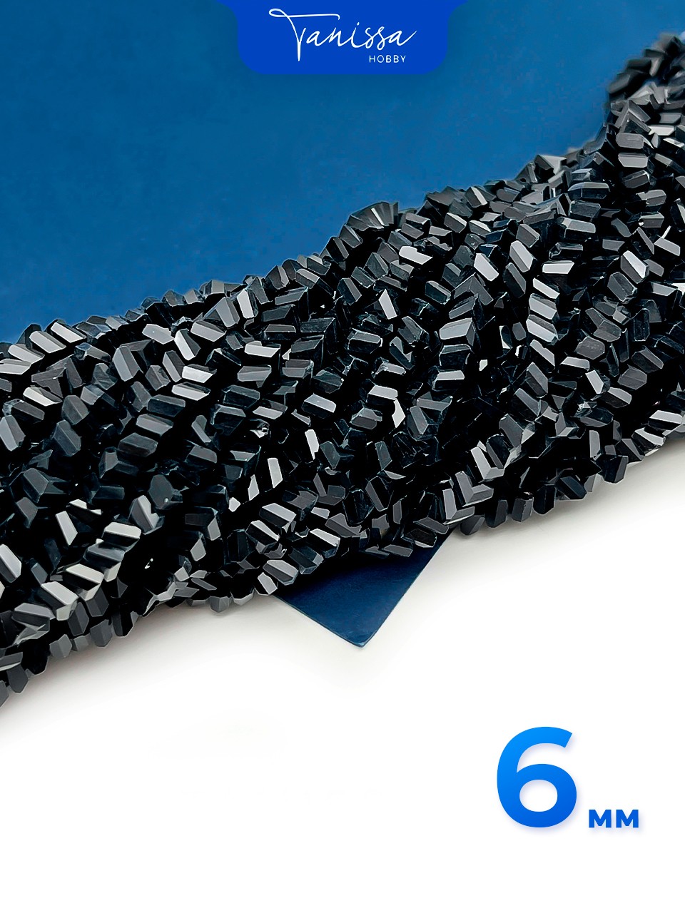 -Хрусталь крошка треугольник 6мм, черный, нить. Х219