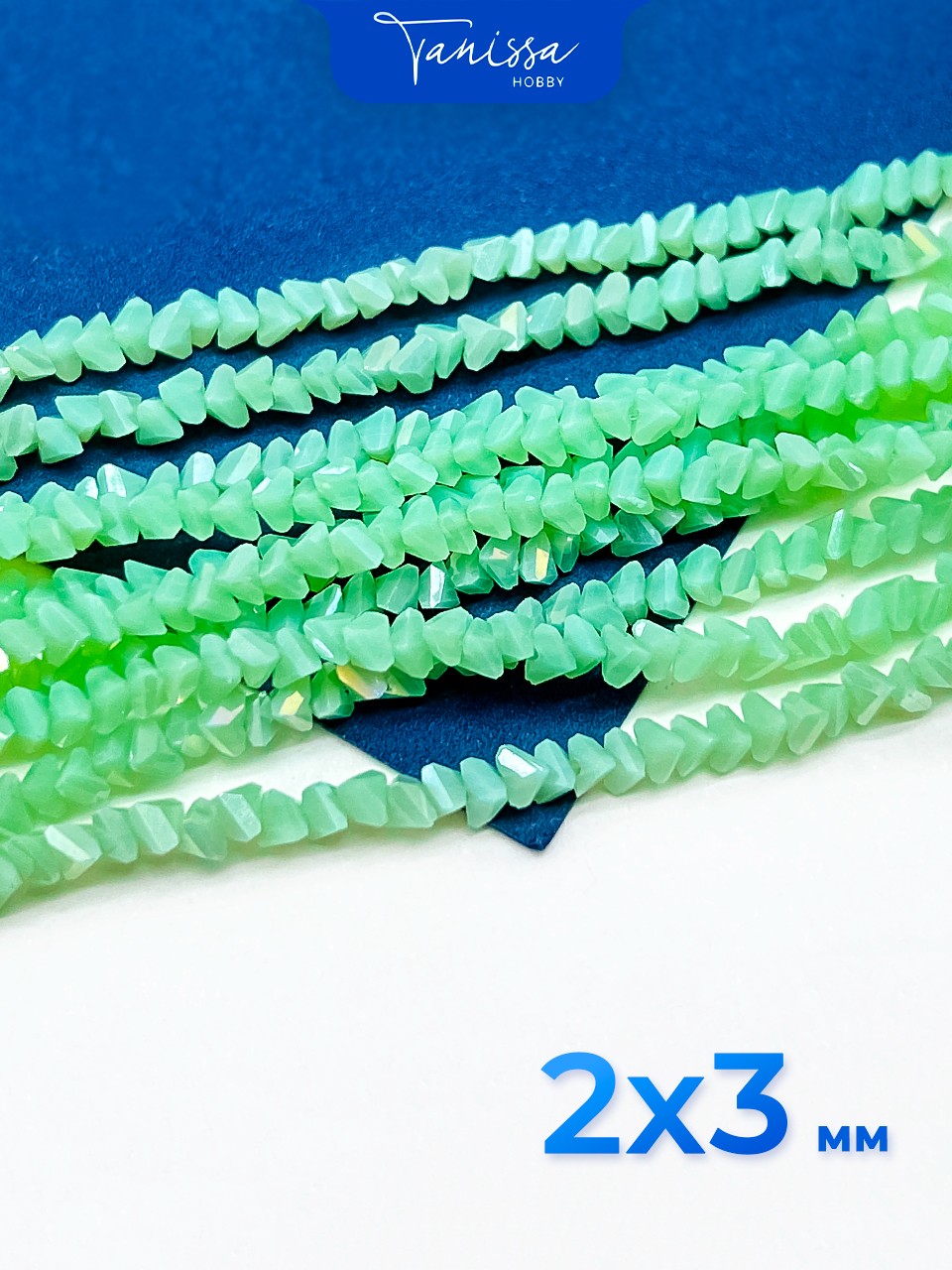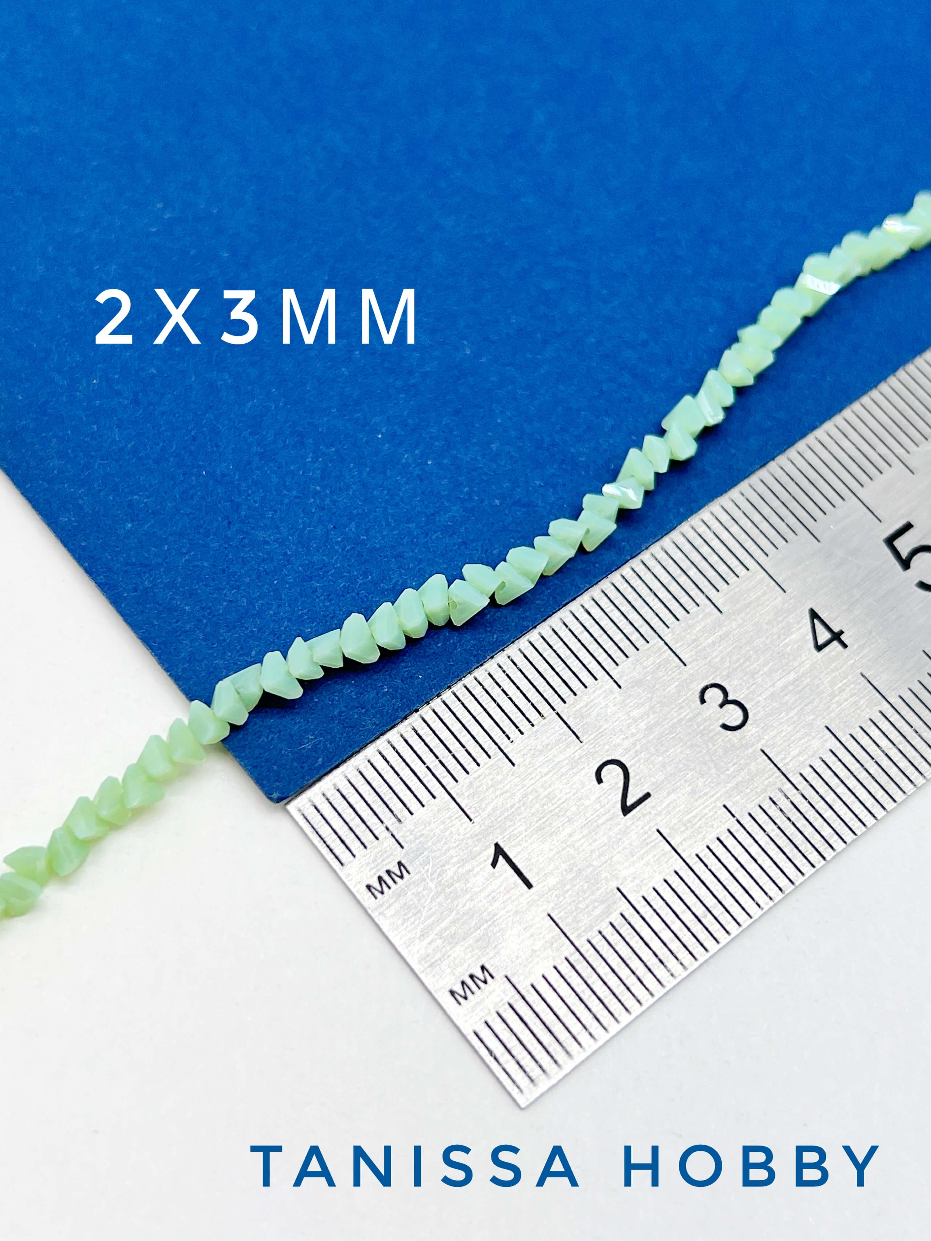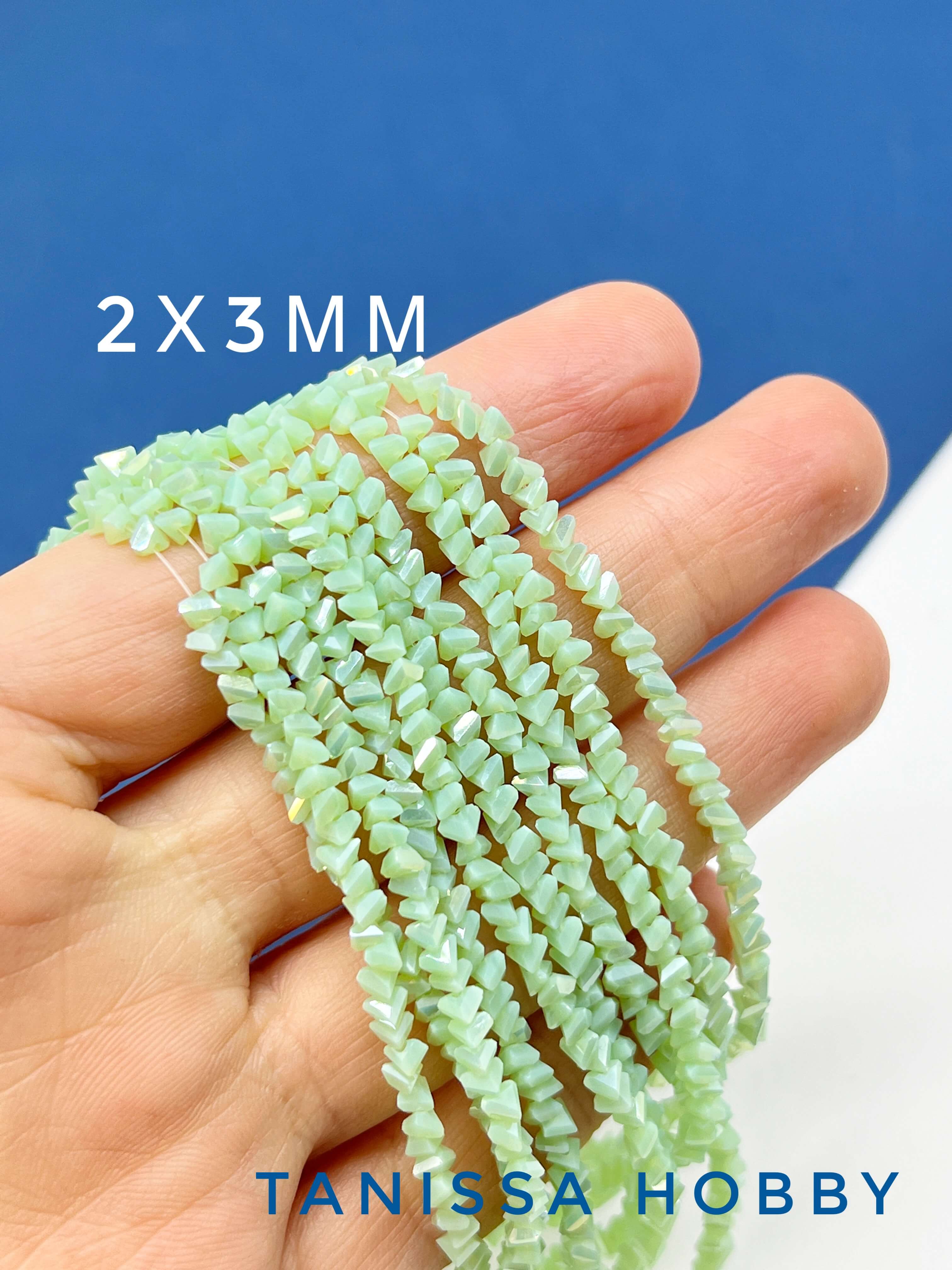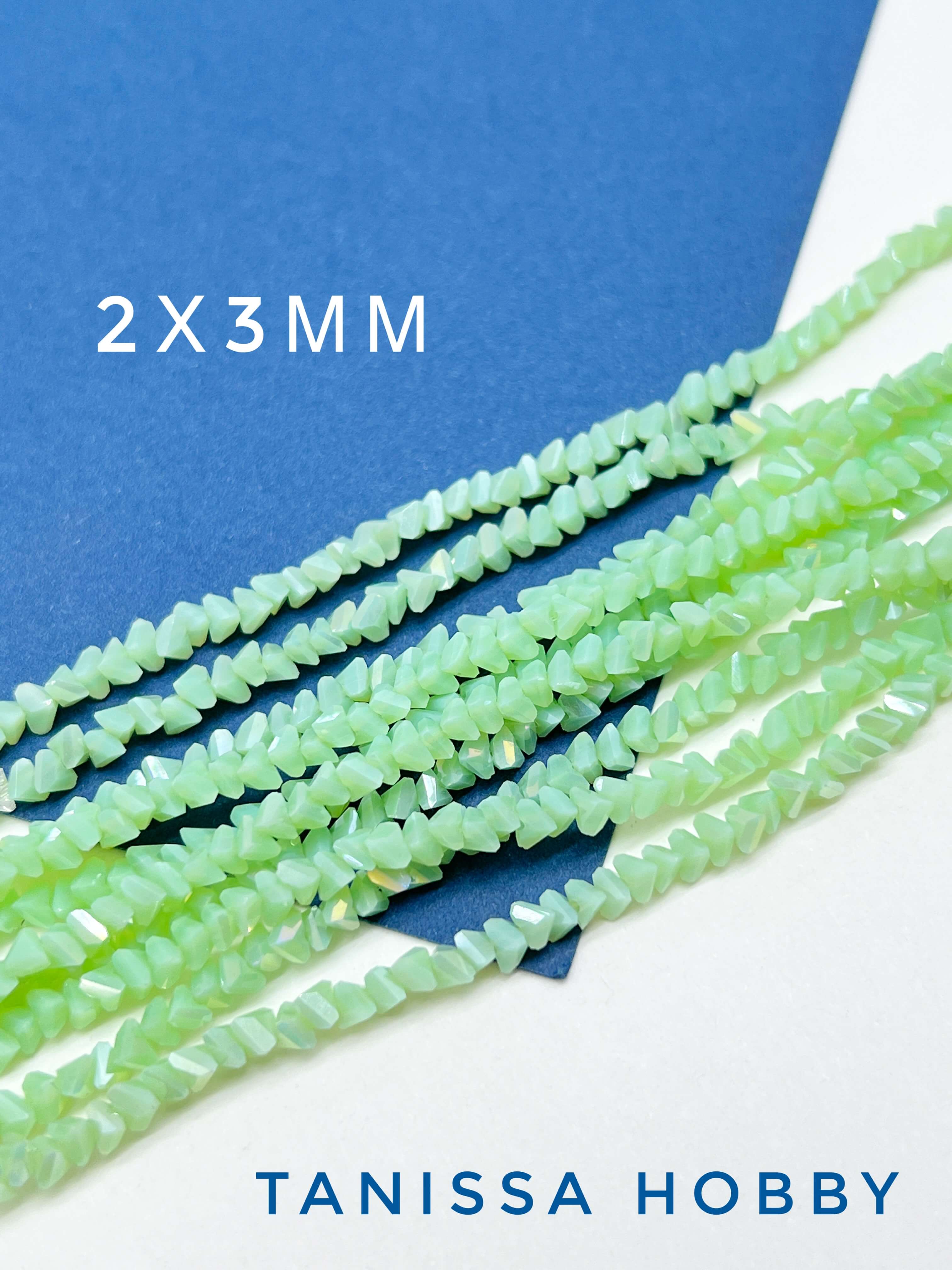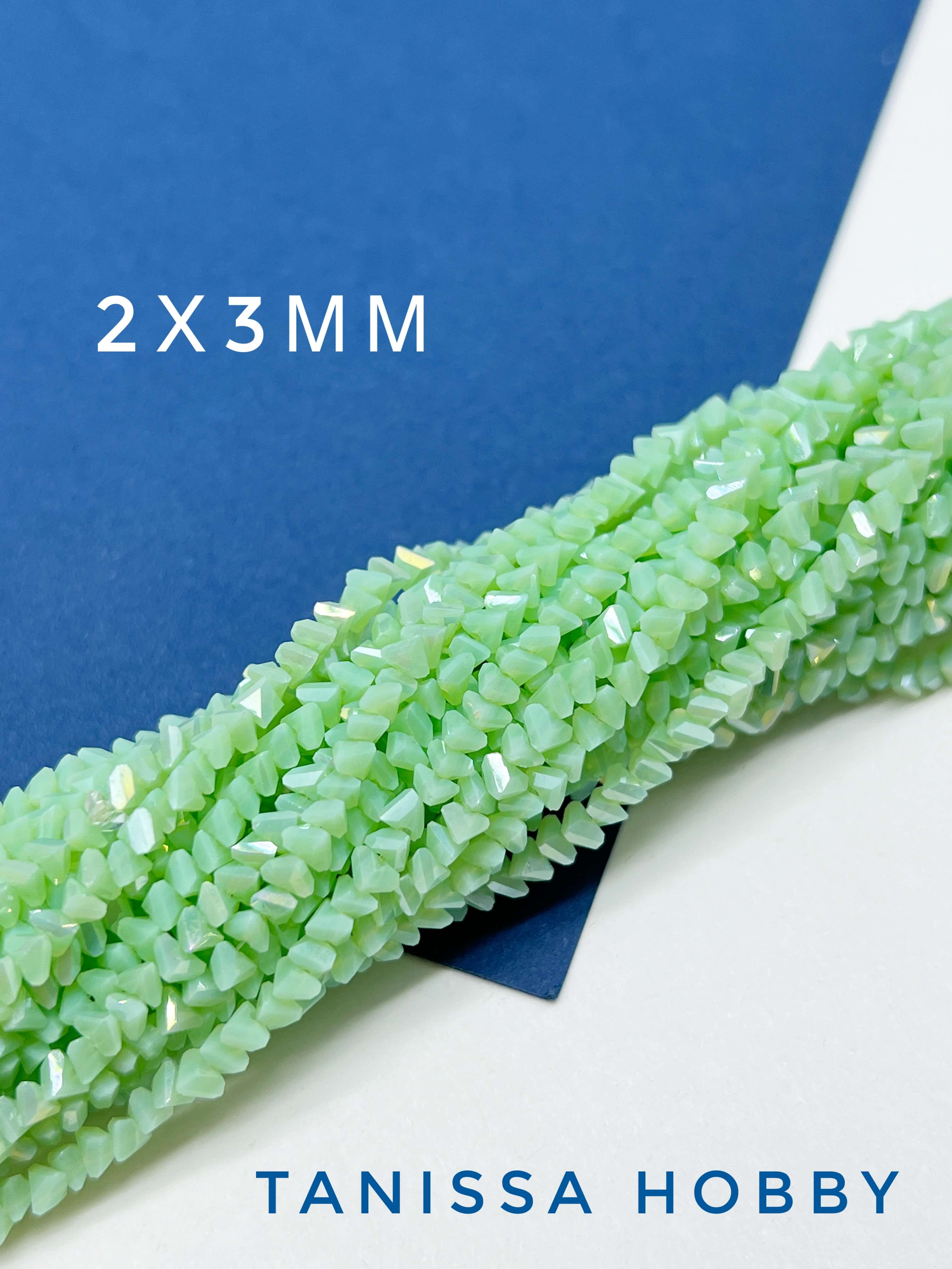 Хрусталь крошка треугольник 3мм, салатовый зеленый опал АВ, нить. Х249