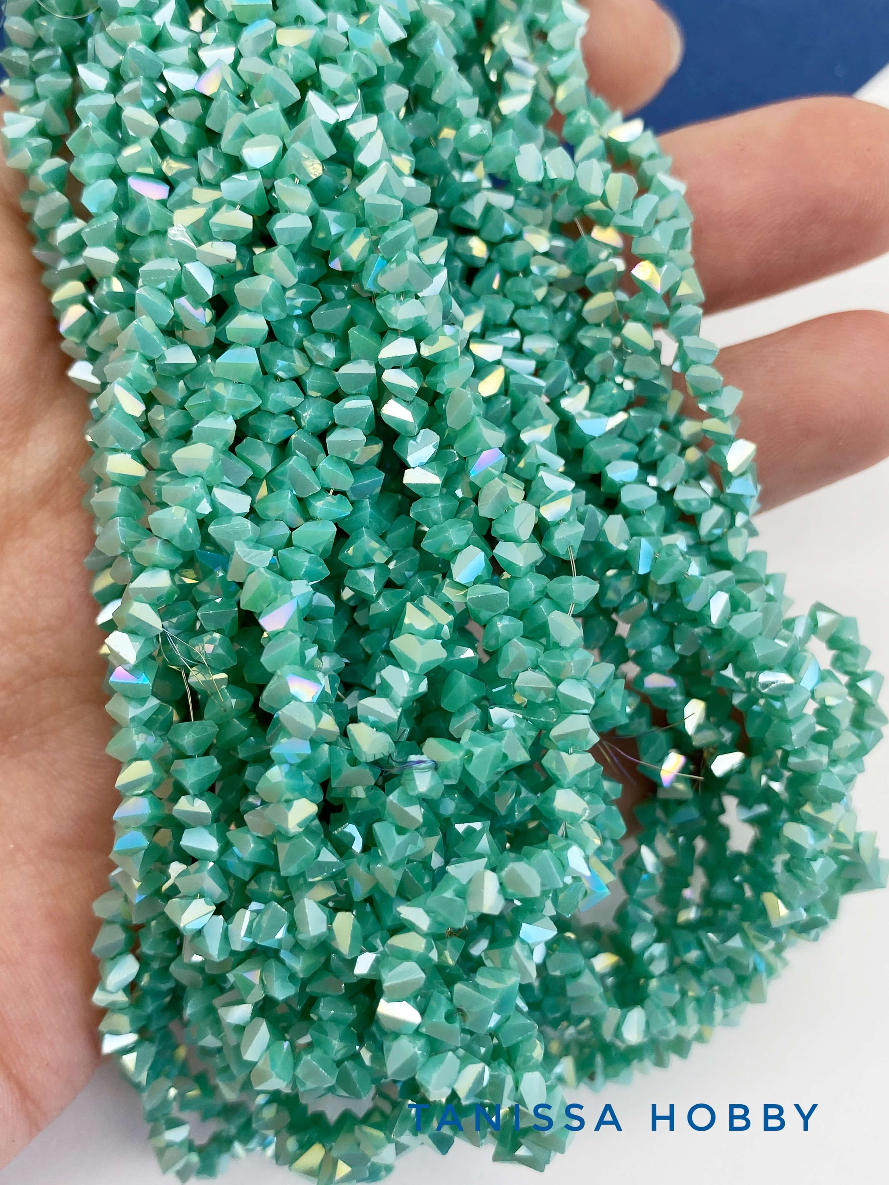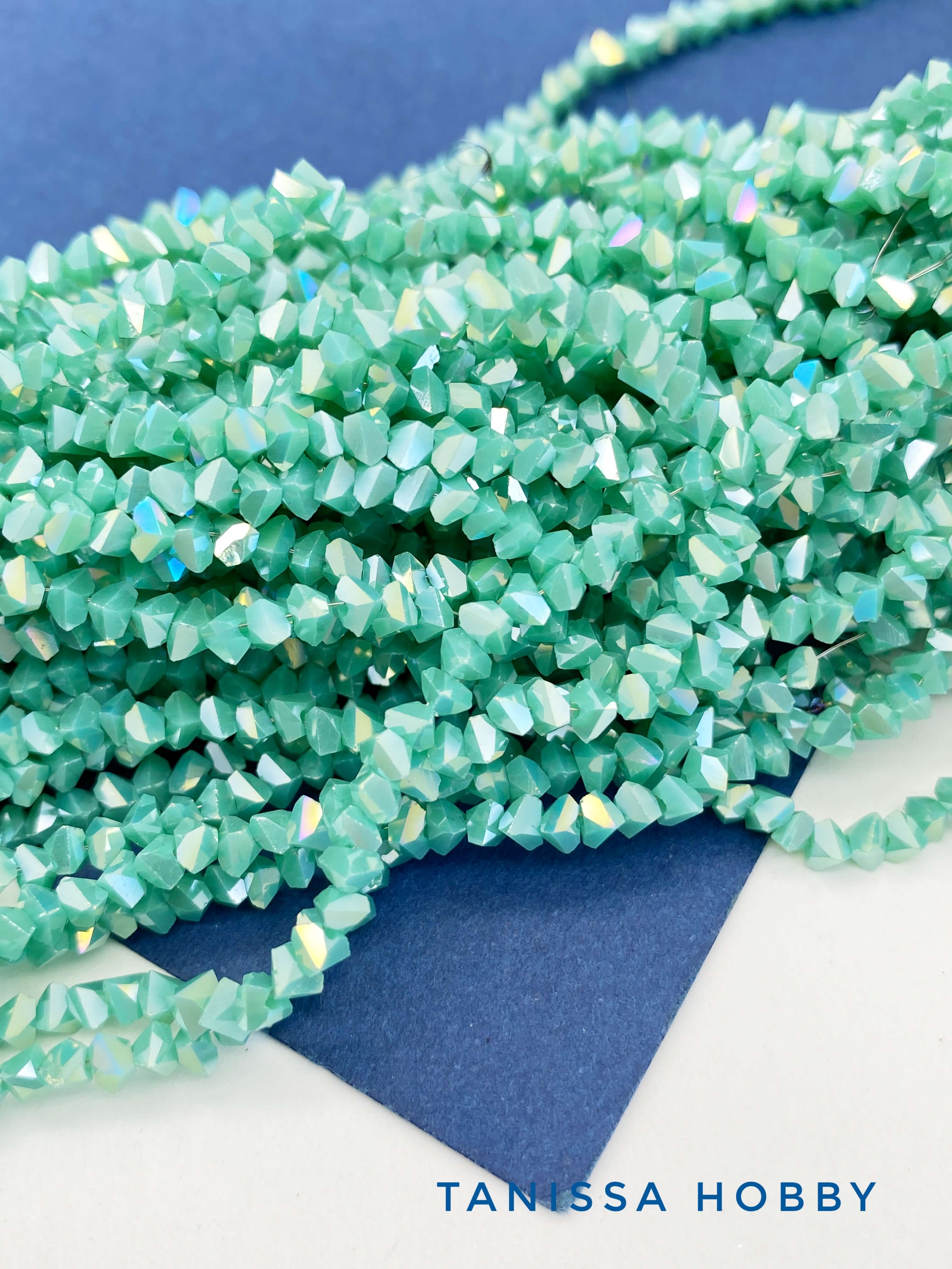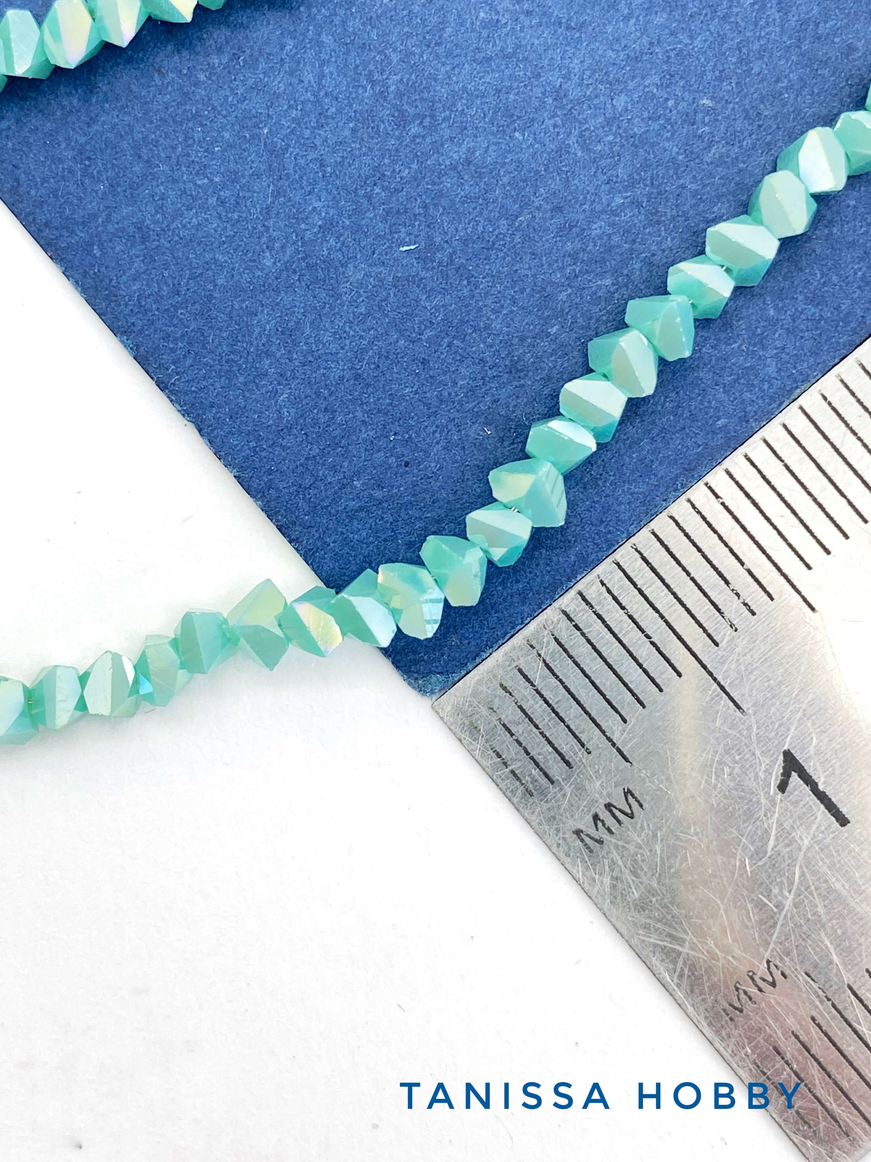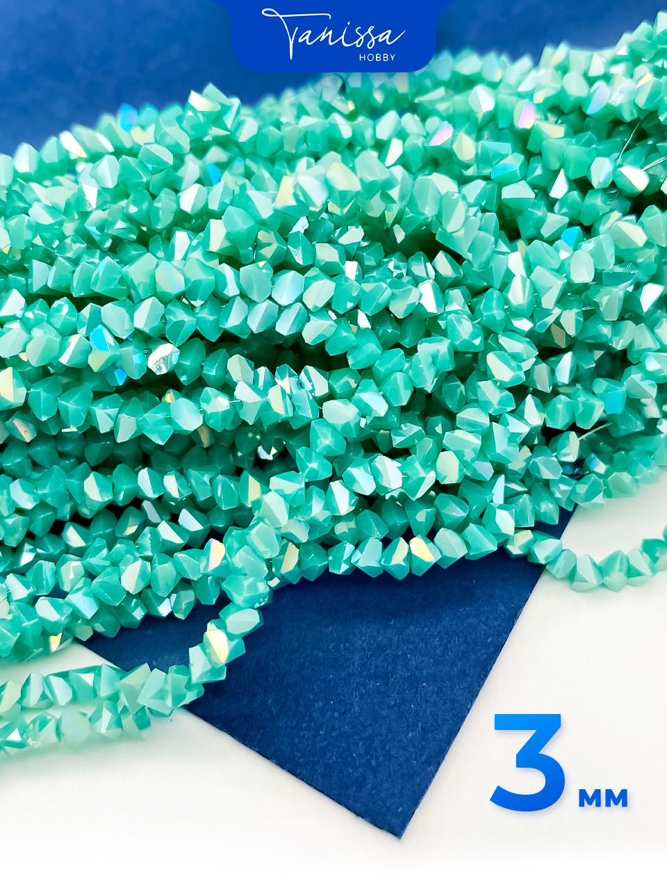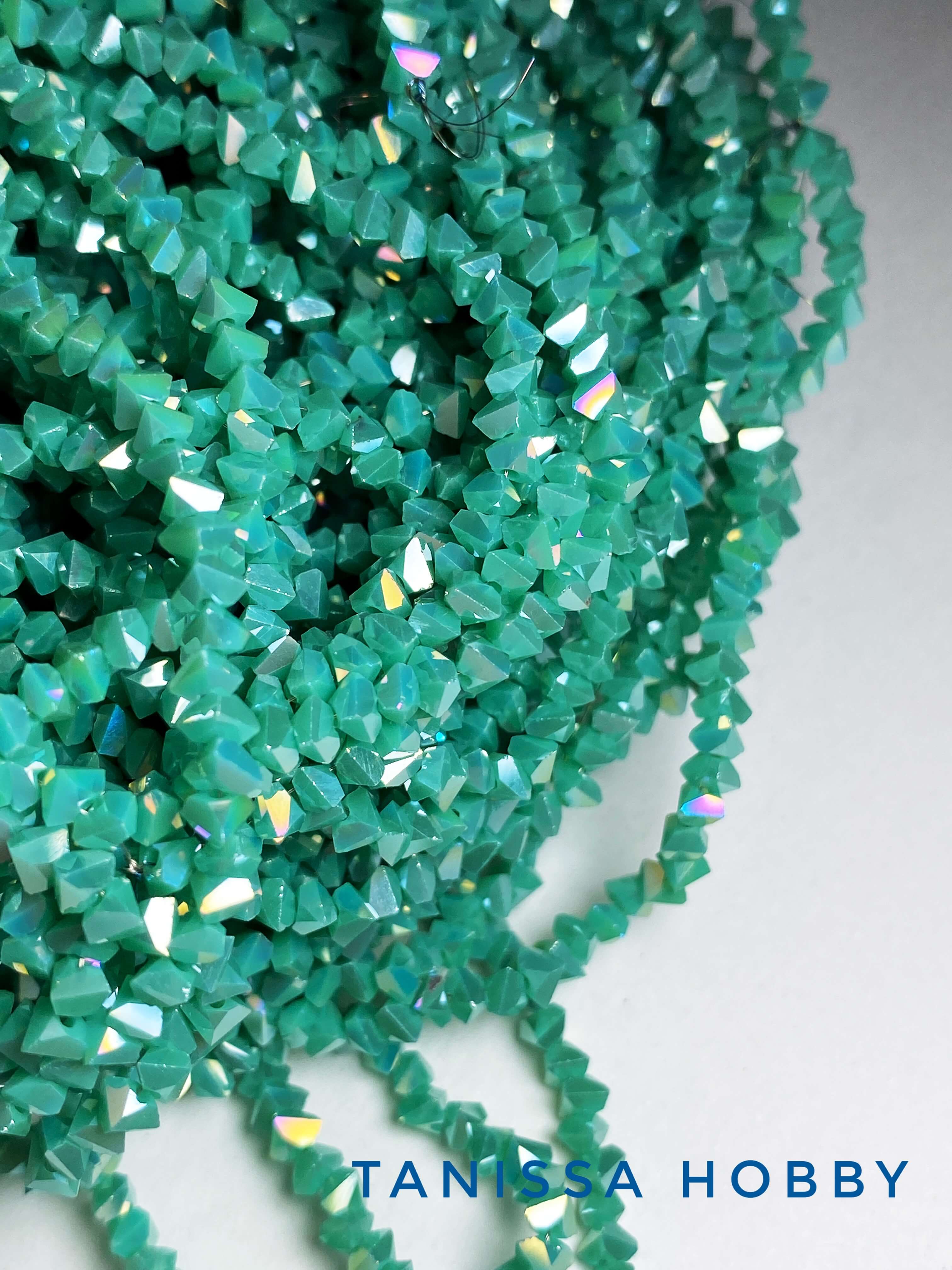 Хрусталь крошка треугольник 3мм, бирюзовый зеленый АВ, нить. Х266